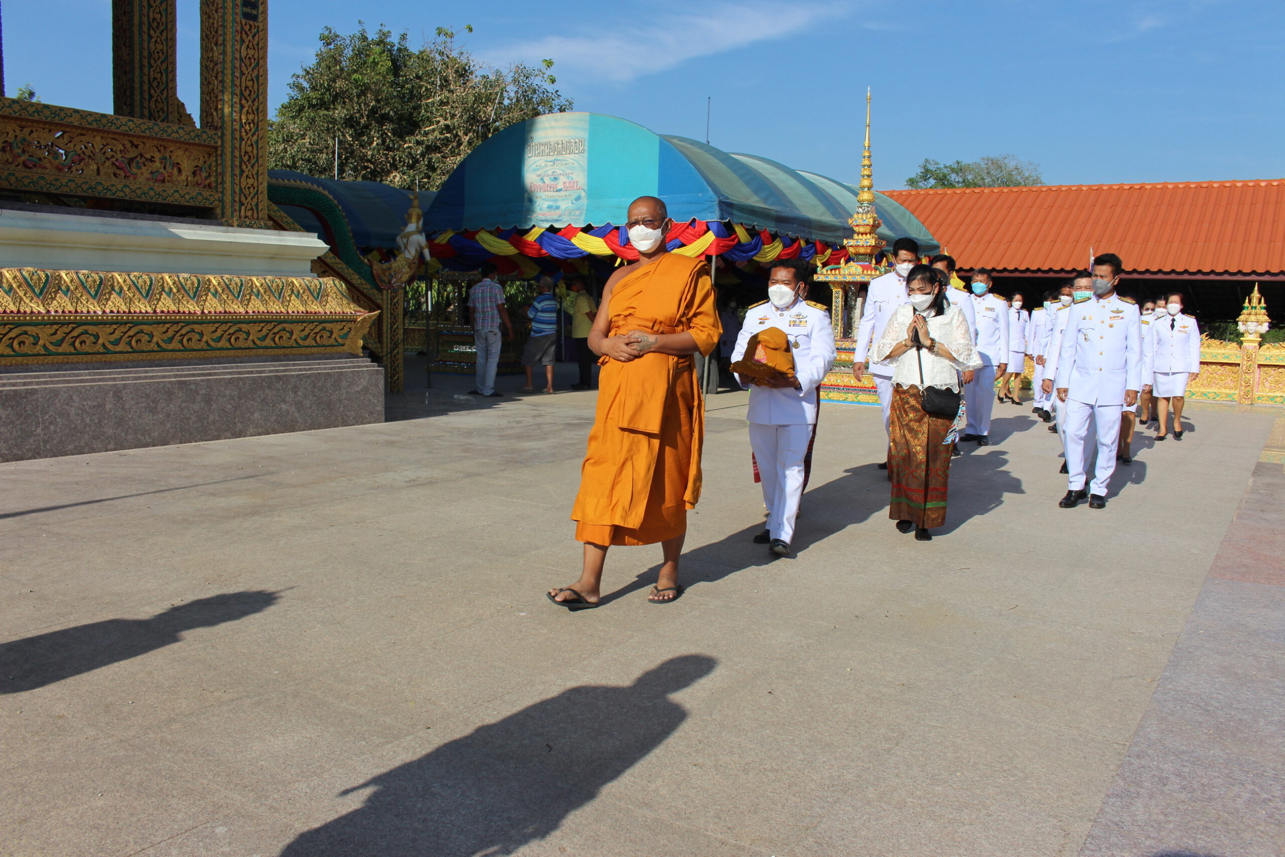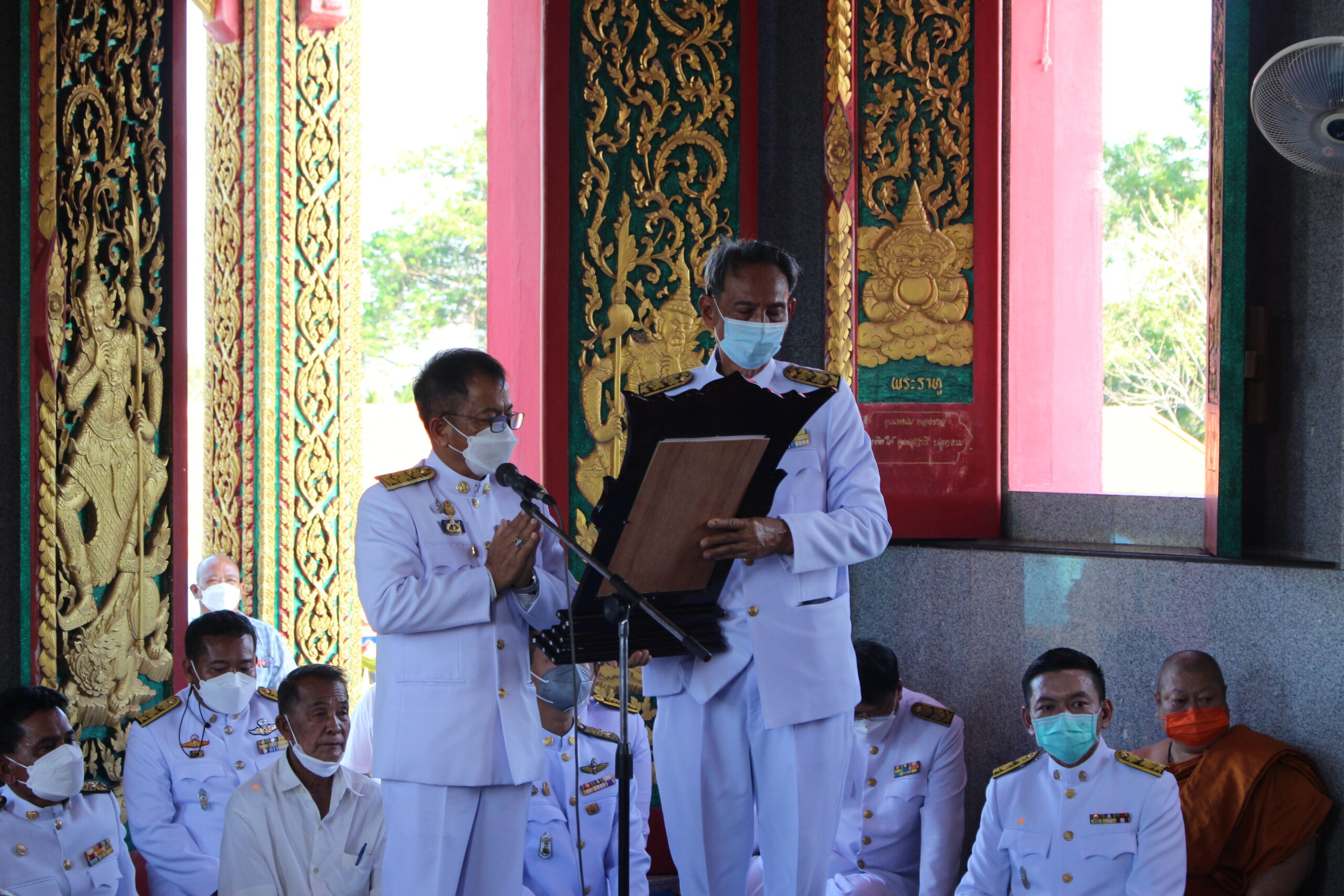 เริ่มพิธีสงฆ์ในอุโบสถโดยมีเจ้าคณะพระสังฆาธิการพร้อมด้วยเจ้าหน้าที่และมีนายสุรพร หมายเจริญ นายอำเภอแสวงหา เป็นผู้อ่านตราตั้งเจ้าคณะอำเภอแสวงหา ต่อจากนั้น พระครูวิมลพัฒนาภรณ์ แต่งตั้งพระฐานานุกรม 3 รูป และแต่งตั้งเลขานุการเจ้าคณะอำเภอตามลำดับ พระฐานานุกรมทั้ง 3 รูปและเลขานุการเจ้าคณะอำเภอแสวงหาเข้ารับตราตั้งและพัดยศประจำตำแหน่ง พระสงฆ์เจริญชัยมงคลคาถา 1 จบ ต่อจากนั้นพระครูวิมลพัฒนาภรณ์ ถวายสักการะพระเถระผู้ใหญ่ ศิษย์ยานุศิษย์ ถวายเครื่องไทยธรรมแด่พระสงฆ์ เป็นอันเสร็จพิธีในครั้งนี้
