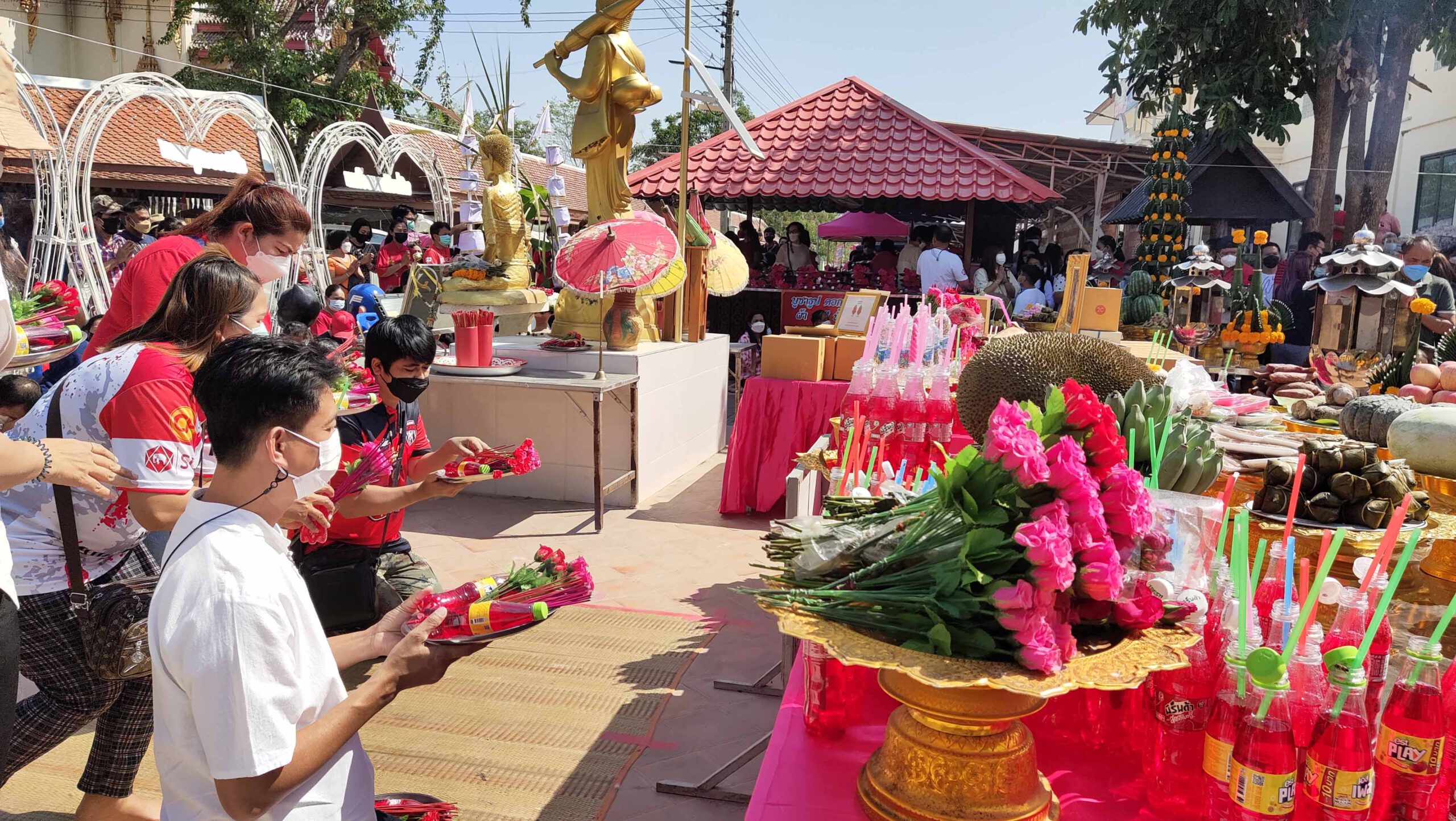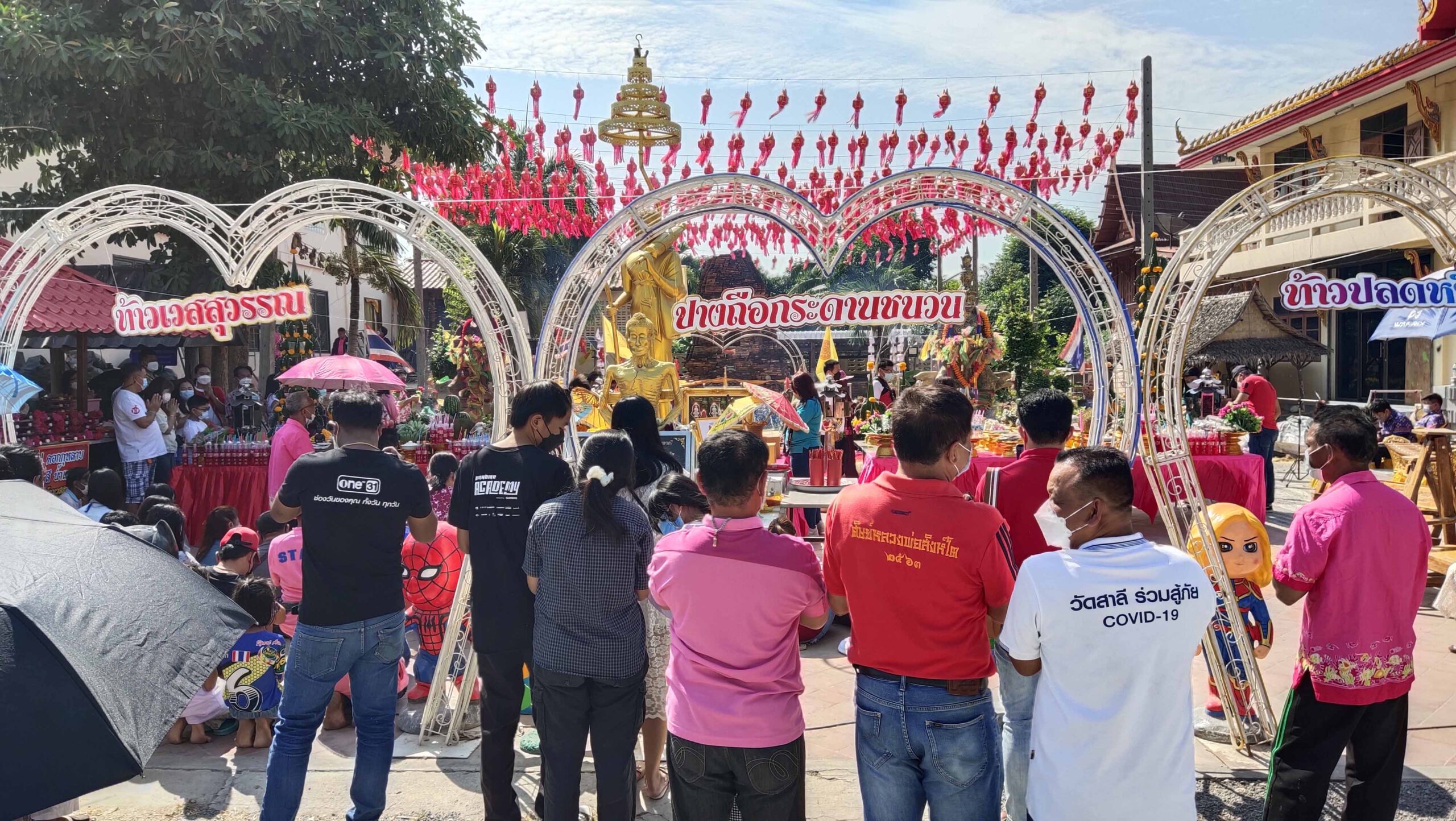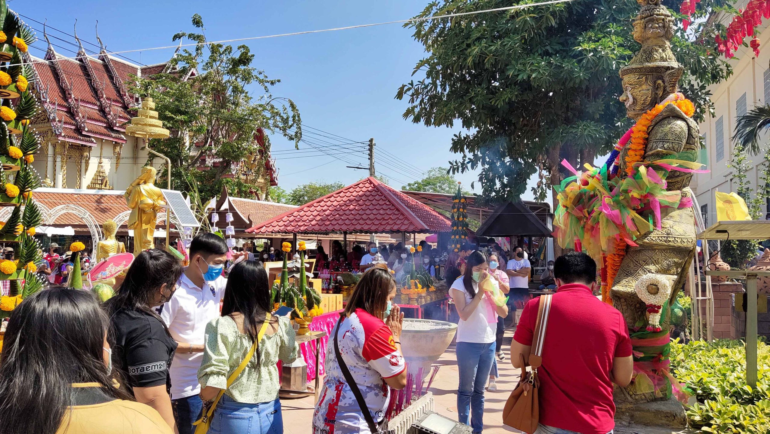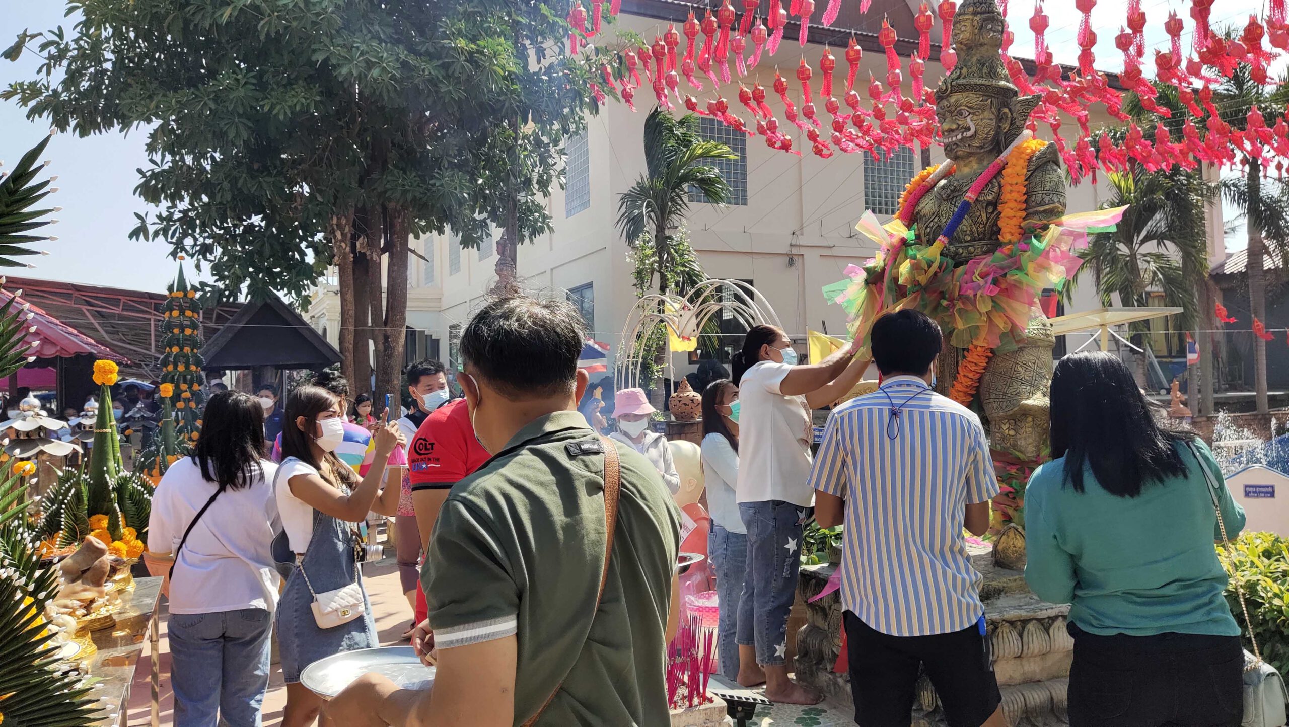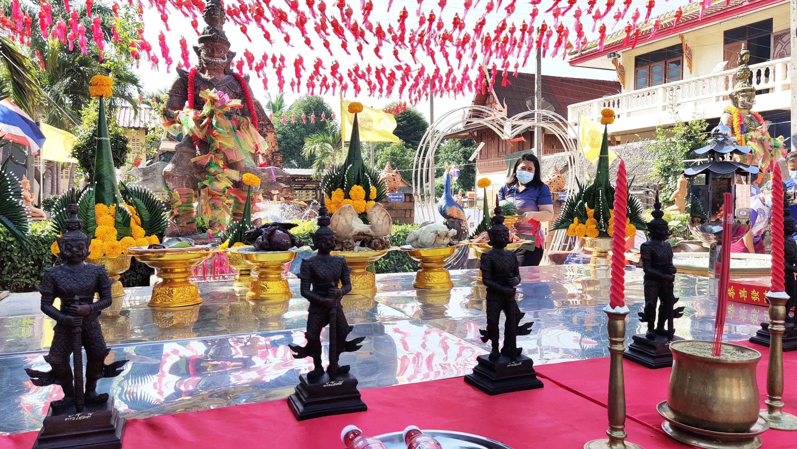 นอกจากนี้ก็ได้กราบไหว้ขอพรสิ่งศักดิ์สิทธิ์ภายในวัดซึ่งมีทั้ง หลวงพ่อโต พระพุทธรูปศักดิ์สิทธิ์ ที่ประดิษฐานอยู่ภายในโบสถ์ทรงจตุรมุข และหลวงพ่อสีชมพู พระพุทธรูปศักดิ์สิทธิ์ ด้านความรัก ความเมตตา และโชคลาภ เพื่อความเป็นสิริมงคลกับชีวิตและครอบครัว ทางวัดมี อสม.ตั้งจุดคัดกรอง ตามมาตรการของสาธารณสุข ตรวจวัดอุณหภูมิ สวมแมสหน้ากาอนามัย ล้างมือด้วยเจลแอลกอฮอล์ เพื่อป้องกันโควิด19 อย่างเคร่งครัด