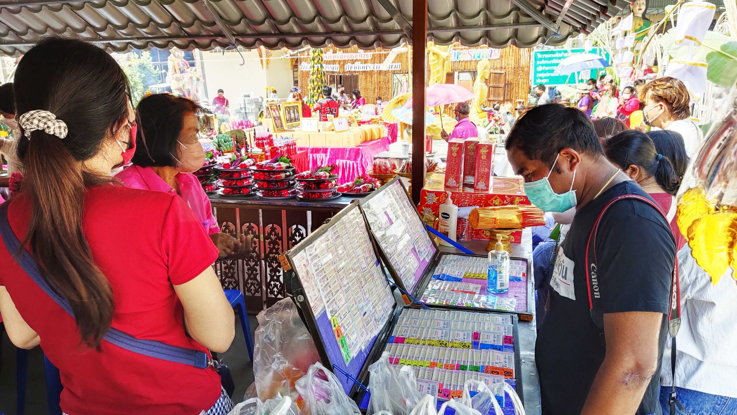 นักเสี่ยงโชคที่มากราบขอพรพากันเขย่าเซียมซีเสี่ยงทาย ลุ้นเลขเด็ด เลขก้านธูป งานนี้ผู้ที่มาร่วมพิธีพลาดไม่ได้คือเลขหางประทัด ที่จุดถวายในพิธีบวงสรวงท้าวเวสสุวรรณ เลขที่ได้คือ 244,632,642,07,47,29 เลขเซียมซี 14,99,76 และเลขก้านธูป 232,675,674,781,484,372,641,592