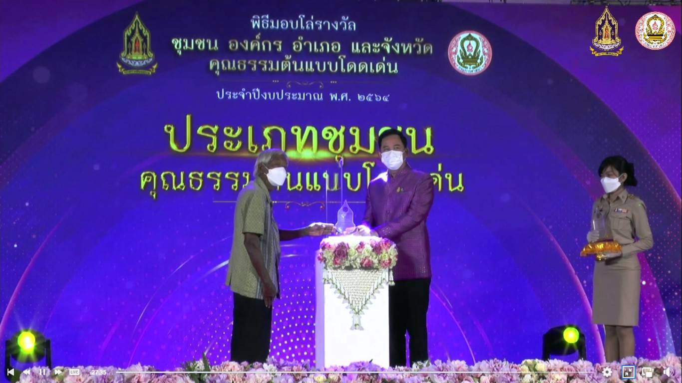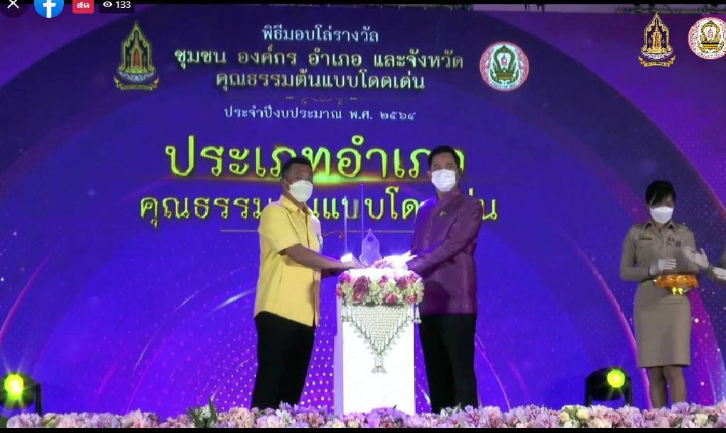 (28 ก.พ.2565) ที่ อาคารหอศิลป์แห่งชาติ กรุงเทพมหานคร นายอิทธิพล คุณปลื้ม รัฐมนตรีว่าการกระทรวงวัฒนธรรม เป็นประธานในพิธีมอบโล่รางวัลคุณธรรมต้นแบบโดดเด่นแห่งชาติ ประจำปีงบประมาณ พ.ศ.2564 ในการนี้จังหวัดตรังได้รับรางวัลคุณธรรมต้นแบบโดดเด่นจำนวน 4 รางวัล ประกอบด้วย