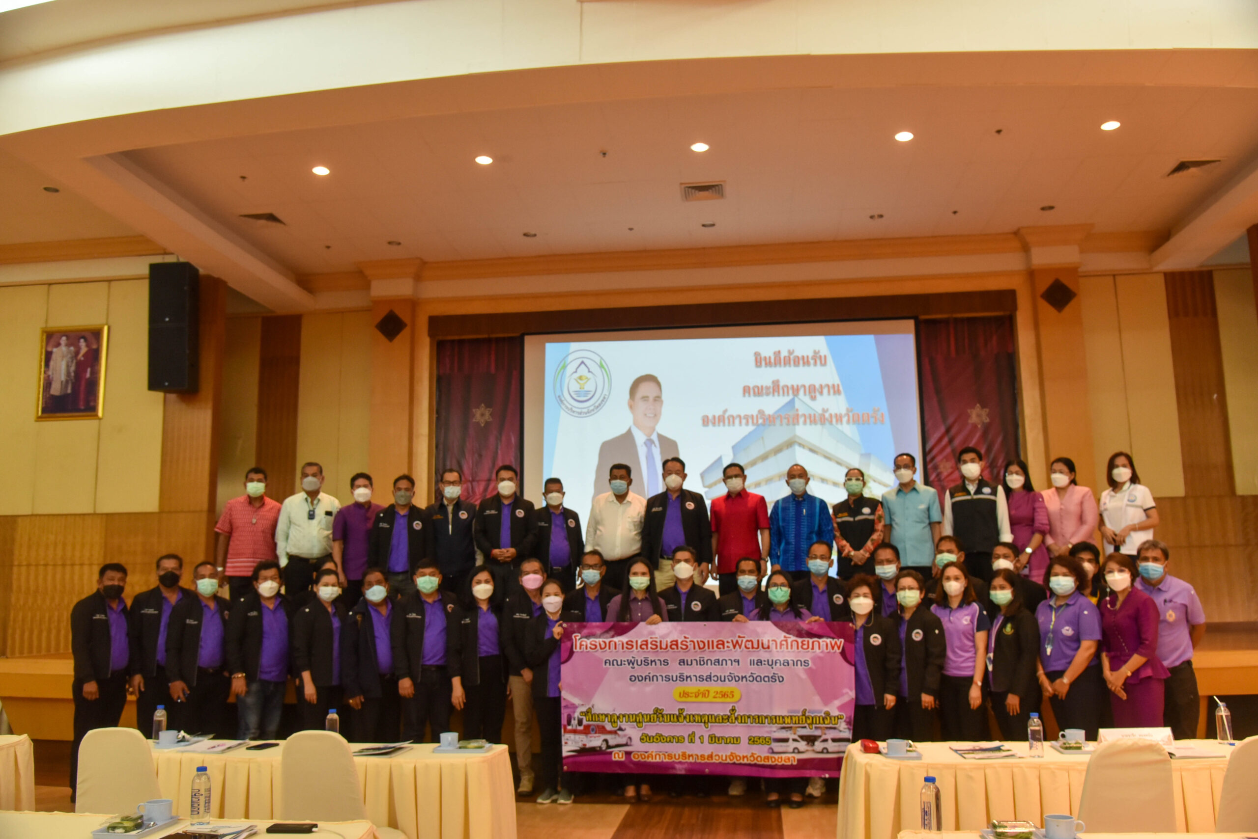 นายบุ่นเล้ง โล่สถาพรพิพิธ นายก อบจ.ตรัง เป็นประธานในพิธีเปิดการประชุมโครงการเสริมสร้างและพัฒนาศักยภาพสมาชิกสภา อบจ.ตรัง คณะผู้บริหารและบุคลากร อบจ.ตรัง ประจำปี 2565 ณ ห้องประชุมสภา อบจ.ตรัง โดยมีคณะผู้บริหาร ประธานสภา อบจ.ตรัง พร้อมสมาชิกสภา อบจ.ตรังและเจ้าหน้าที่ที่เกี่ยวข้องเข้าร่วม มีนายอนันต์ อัครสุวรรณกุล นักวิชาการสาธารณสุขเชี่ยวชาญ และเจ้าหน้าที่สำนักงานสาธารณสุขจังหวัดตรัง บรรยายพิเศษ เรื่อง “บทบาทและความสำคัญของศูนย์รับแจ้งเหตุและสั่งการการแพทย์ฉุกเฉิน”เพื่อให้ผู้เข้าร่วมโครงการมีความรู้ความเข้าใจการดำเนินการและบริหารจัดการระบบการแพทย์ฉุกเฉินขององค์การบริหารส่วนจังหวัด นำประสบการณ์จากการศึกษาดูงานมาเป็นแนวทางในการบริหารจัดการศูนย์รับแจ้งเหตุและสั่งการแพทย์ฉุกเฉินองค์การบริหารส่วนจังหวัดตรังและให้ผู้เข้าร่วมโครงการได้มีการแลกเปลี่ยนเรียนรู้ประสบการณ์ระหว่างหน่วยงาน หลังจากนั้นคณะ อบจ.ตรัง ได้เดินทางเข้าศึกษาดูงานศูนย์รับแจ้งเหตุและสั่งการการแพทย์ฉุกเฉิน อบจ.สงขลา