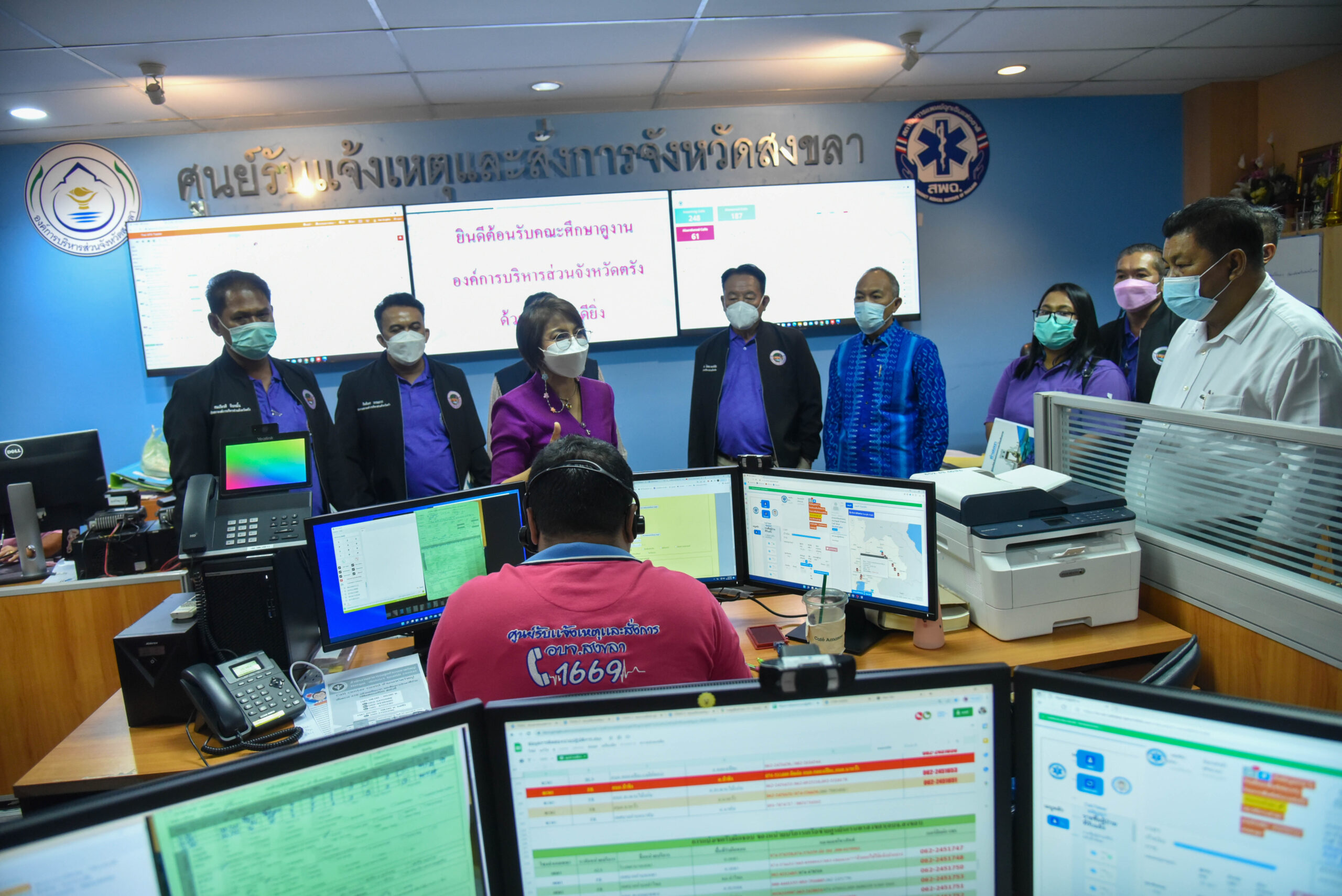 โดยมีนายไพเจน มากสุวรรณ์ นายก อบจ.สงขลา พร้อมคณะผู้บริหาร ให้การต้อนรับ และให้ข้อมูล แนวทางในการบริหารจัดการศูนย์รับแจ้งเหตุและสั่งการการแพทย์ฉุกเฉิน อบจ.สงขลา ซึ่งเป็นประโยชน์ในการเตรียมการดำเนินงานของ อบจ.ตรัง เป็นอย่างมาก อบจ.สงขลา ได้ร่วมกับสถาบัน การแพทย์ฉุกเฉินแห่งชาติ (สพฉ.) และภาคีเครือข่ายเปิดศูนย์ รับแจ้งเหตุและสั่งการจังหวัดสงขลา 1669 ศูนย์ควบ คุมระบบโทรทัศน์วงจรปิดอบจ.สงขลา ศูนย์รับแจ้งเหตุฉุกเฉิน 191ตำรวจภูธรจังหวัดสงขลา เพื่อบูรณาการการทำงานร่วม กันในการช่วยเหลือผู้ป่วยฉุกเฉินและผู้ประสบเหตุด่วนเหตุร้ายในจังหวัดสงขลาอย่างเต็มรูปแบบ
