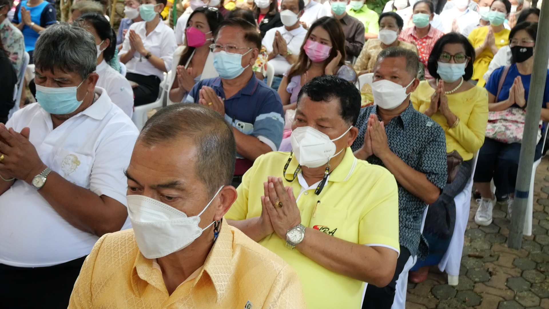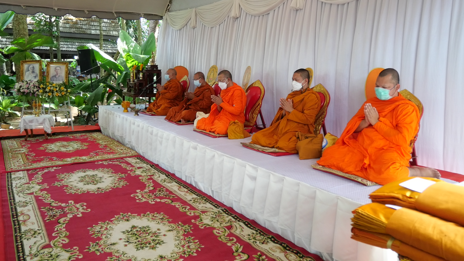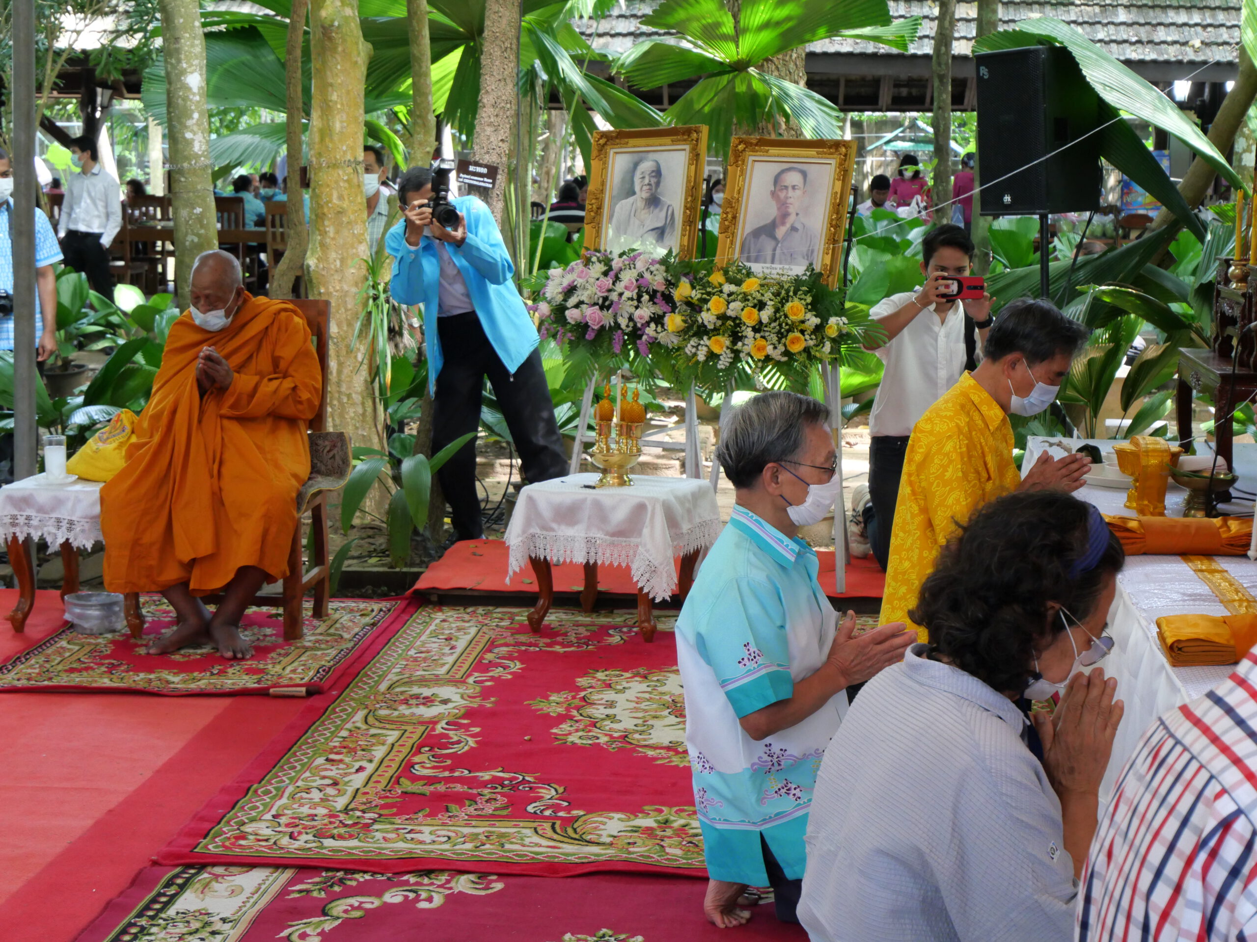 ทั้งนี้ได้มีการนำอาหาร เช่น หมูย่าง ขนมจีน ข้าวหมกไก่ ชา กาแฟ มาเลี้ยง ผู้ที่ครอบครัวหลีกภัยได้มอบพัดลมซึ่งมีผู้บริจาคไว้ตั้งแต่ในงานศพคุณแม่ถ้วน เพื่อนำไปใช้ประโยชน์ ทั้งนี้ภายในงานเจ้าภาพได้จัดอาหารกับผู้ที่เดินทางดินทางมาร่วมพิธี ทั้งนี้ผู้ที่เดินทางมาต้องมาการวัดอุณหภูมิและการตรวจ ATK เข้าเข้าร่วมพิธี ซึ่งเป็นไปตามมาตรการของกระทรวงสาธารณสุข เพื่อป้องกันการแพร่ระบาดของโควิด -19