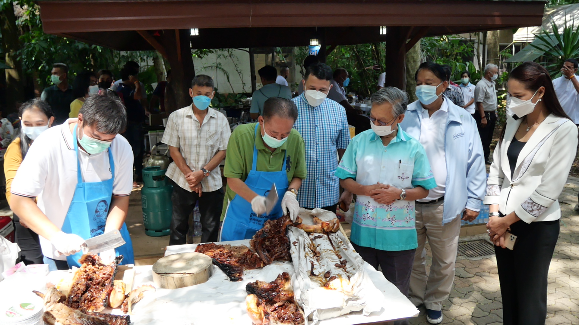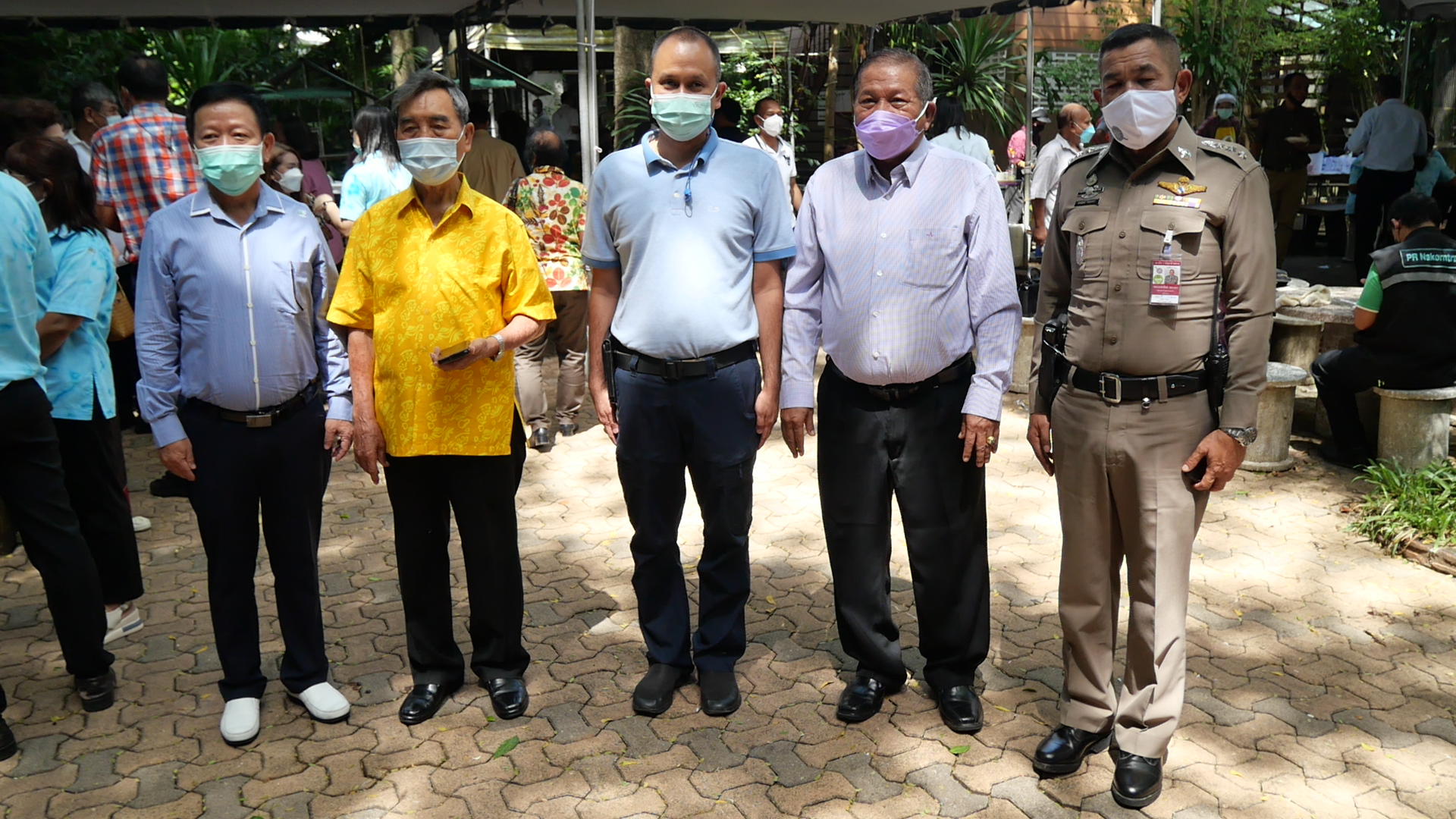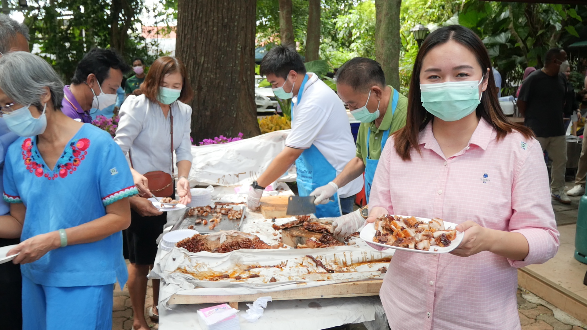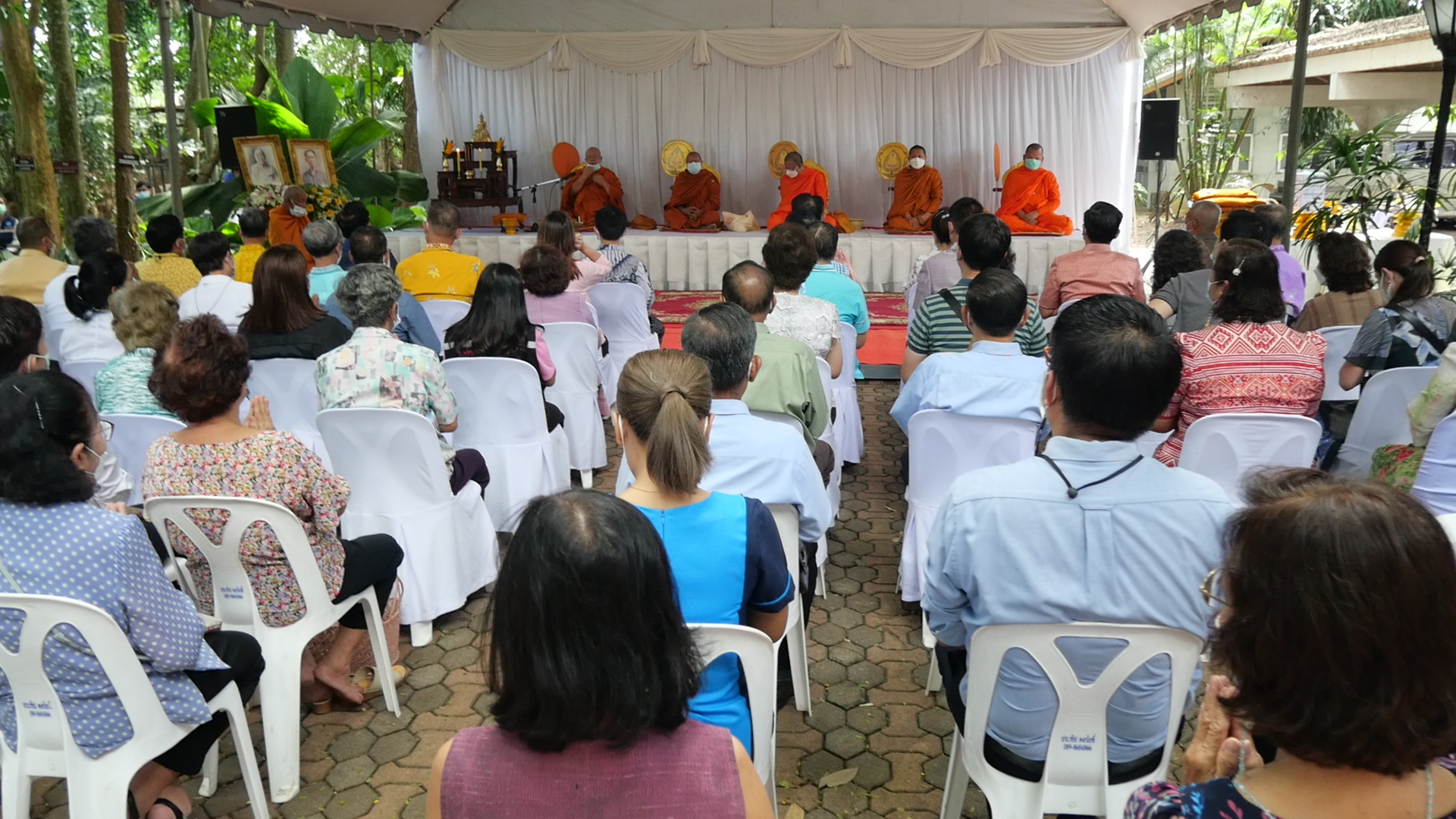 ทั้งนี้ได้มีการนำอาหาร เช่น หมูย่าง ขนมจีน ข้าวหมกไก่ ชา กาแฟ มาเลี้ยง ผู้ที่ครอบครัวหลีกภัยได้มอบพัดลมซึ่งมีผู้บริจาคไว้ตั้งแต่ในงานศพคุณแม่ถ้วน เพื่อนำไปใช้ประโยชน์ ทั้งนี้ภายในงานเจ้าภาพได้จัดอาหารกับผู้ที่เดินทางดินทางมาร่วมพิธี ทั้งนี้ผู้ที่เดินทางมาต้องมาการวัดอุณหภูมิและการตรวจ ATK เข้าเข้าร่วมพิธี ซึ่งเป็นไปตามมาตรการของกระทรวงสาธารณสุข เพื่อป้องกันการแพร่ระบาดของโควิด -19
