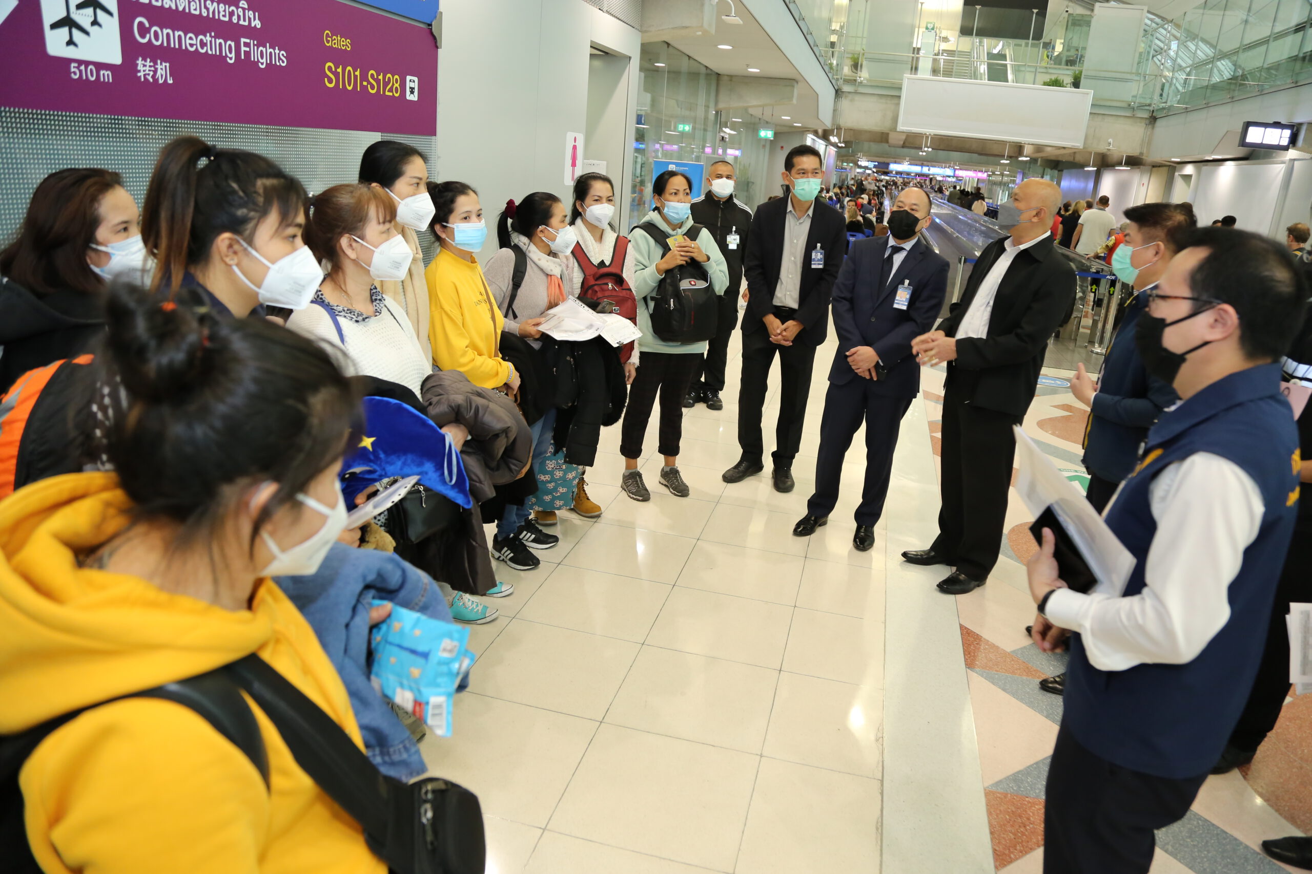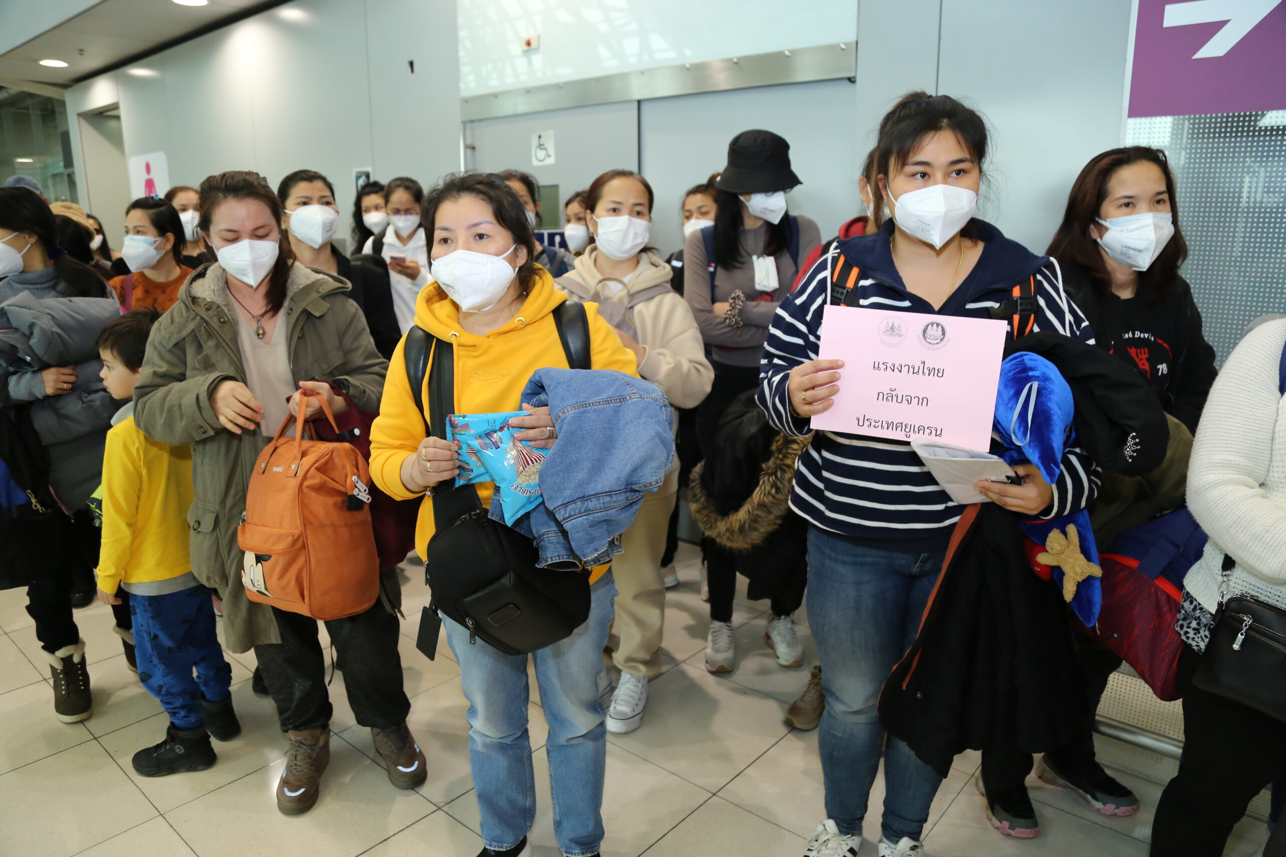 *****เมื่อเวลา 13.00 น.วันที่ 3 มี.ค.2565 นาย จาตุรนต์ ไชยะคำ รองอธิบดีกรมการกงสุล พล.ท.ณรงค์ พฤกษารุ่งเรือง ผู้บัญชาการเหตุการณ์ ศูนย์ปฏิบัติการท่าอากาศยาน สนามบินสุวรรณภูมิ นายกิตติพงศ์ กิตติขจร ผู้อำนวยการท่าอากาศยานสุวรรณภูมิ บริษัท ท่าอากาศยานไทย จำกัด(มหาชน) (ทอท.) ให้การต้อนรับคนไทย ชุดที่ 3 กลับถึงประเทศไทย จากสถานการณ์ความขัดแย้งระหว่าง ‘รัสเซีย-ยูเครน’ ซึ่งส่งผลกระทบต่อความ ปลอดภัยของคนไทยที่อาศัยอยู่ในประเทศยูเครน โดยทางสถานเอกอัครราชทูตไทย ณ กรุงวอร์ชอ โปแลนด์ ได้ให้การช่วยเหลืออพยพคนไทยในยูเครน เดินทางจากประเทศโปแลนด์ เพื่อเดินทางกลับประเทศไทย โดยเปลี่ยนเครื่องที่ ดูไบร์ และเดินทางกลับประเทศไทย สายการบินเอมิเรตส์ เที่ยวบินที่ EK 384 ถึงประเทศไทยเวลา 12.05 น. โดยมีคนไทยที่อพยพจากยูเครน 40 คน ผ่านขั้นตอนการตรวจหาเชื้อไวรัสโควิด 19 ตามขั้นตอนของกระทรวงสาธารณสุขอย่างเคร่งครัด ขึ้นรถบัสจำนวน 2 คัน ไปกักตัวที่ สถาบันบำราศนราดูร โดยรวมคนไทยที่อพยพบกลับประเทศไทยจำนวน 3 ชุด จำนวน 136 คน และยังมีคนไทย จำนวน 43 คนได้เดินทางจากศูนย์ปฎิบัติการช่วยเหลือคนไทยในยูเครน เมืองลวีฟ เข้าประเทศโปแลนด์ และเข้าพักอยู่ที่ กรุงวอร์ซอเพื่อเตรียมเดินทางกลับประเทศไทย ในวันที่ 4 มี.ค.2565