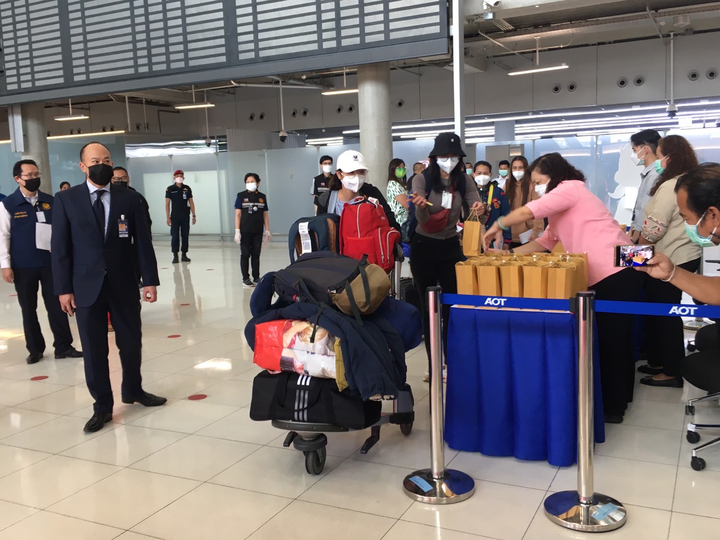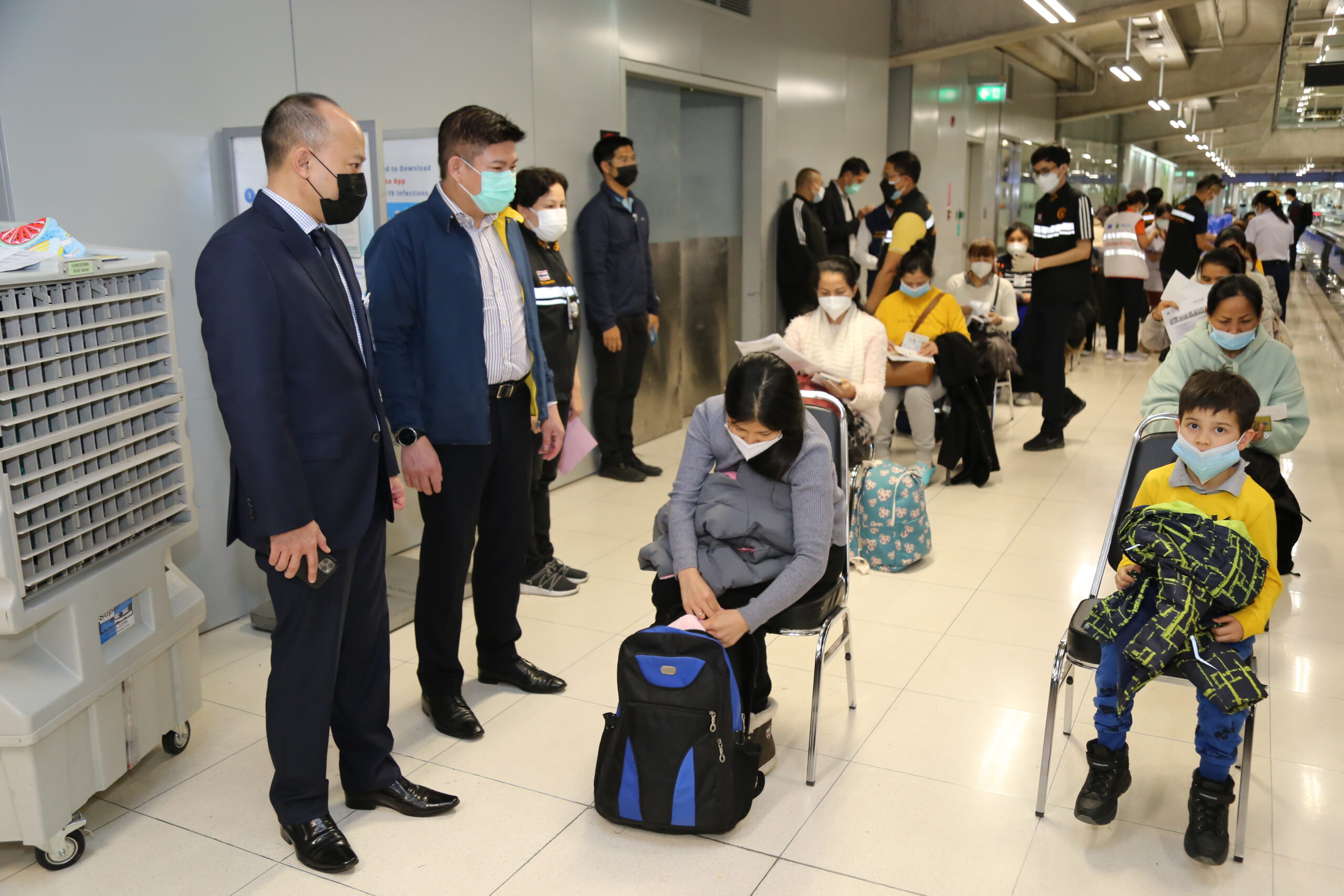 *****นายกิตติพงศ์ กิตติขจร ผู้อำนวยการท่าอากาศยานสุวรรณภูมิ กล่าวว่า สำหรับในไฟลต์นี้ EK 384 เป็นไฟลต์ที่ 3 ที่มีการพาคนไทยจากยูเคนกลับสู่ประเทศไทยของเรา การกฎิบัติในวันนี้เป็นไปด้วยความเรียบร้อย จำนวนผู้โดยสารที่เดินทางเข้ามาในวันนี้จำนวน 40 คน ซึ่งผ่านการคัดกรองของกระทรวงสาธารณสุขตามขั้นตอนเรียบร้อยทุกคน ซึ่งทั้งหมดจะถูกส่งไปที่สถาบันบำราศนราดูร เพื่อรอฟังผลการตรวจในครั้งนี้ ก็ต้องบอกว่าทุกการปฎิบัติของหน่วยราชการมีการประสานการปฎิบัติกันอย่างดี ส่วนคนไทยในยูเครนที่ยังเหลือตกค้างอยู่ที่ดูไบ ในขณะนี้เท่าที่ได้รับการประสานงานเราจะมีไฟลต์ที่เดินทางเข้ามาอีกครั้งในวันที่ 5 มีนาคม 2565 จะมี 2 เที่ยวบินเป็นเที่ยวบินของสายการบินไทย น่าจะไม่เกิน 20 คน และเที่ยวบินของเอมิเรตน์น่าจะอยู่ที่ 45 คน แต่ตัวเลขอาจจะมีการปรับเพิ่มได้ก็ต้องดูในวันที่จะถึงอีกทีและ การเดินทางกลับมาของแรงงานไทยในยูเคนในครั้งนี้พบว่ามีอุปศักย์บ้างโดยมีแรงานไทยซึ่งเป็นผู้หญิงรายหนึ่งถูกโจรกรรมพาสปอร์ตในระหว่างอพยพ แต่ก็มีเอกสารชั่วคราวทางเจ้าหน้าที่ตรวจคนเข้าเมืองต้องมีการใช้เวลาในการตรวจสอบเล็กน้อยในการตรวจสอบเอกสารแต่ทุกอยางก็เรียบร้อย ซึ่งตนเห็นว่าเวลาผ่านไปนานก็เลยขอเดินเข้าไปสอบถามเจ้าหน้าที่ว่าติดขัดตรงไหนแต่ก็เรียบร้อยดีผ่านออกมาได้ปกติ