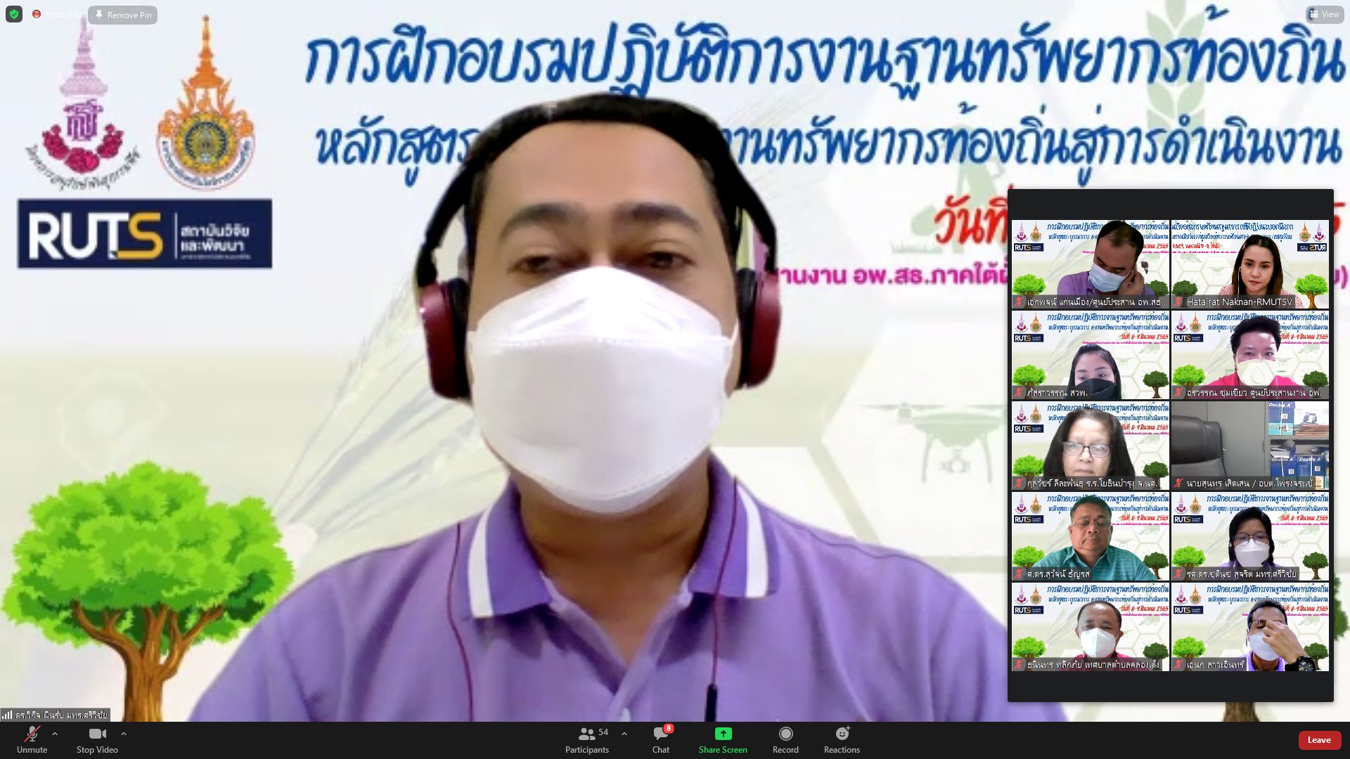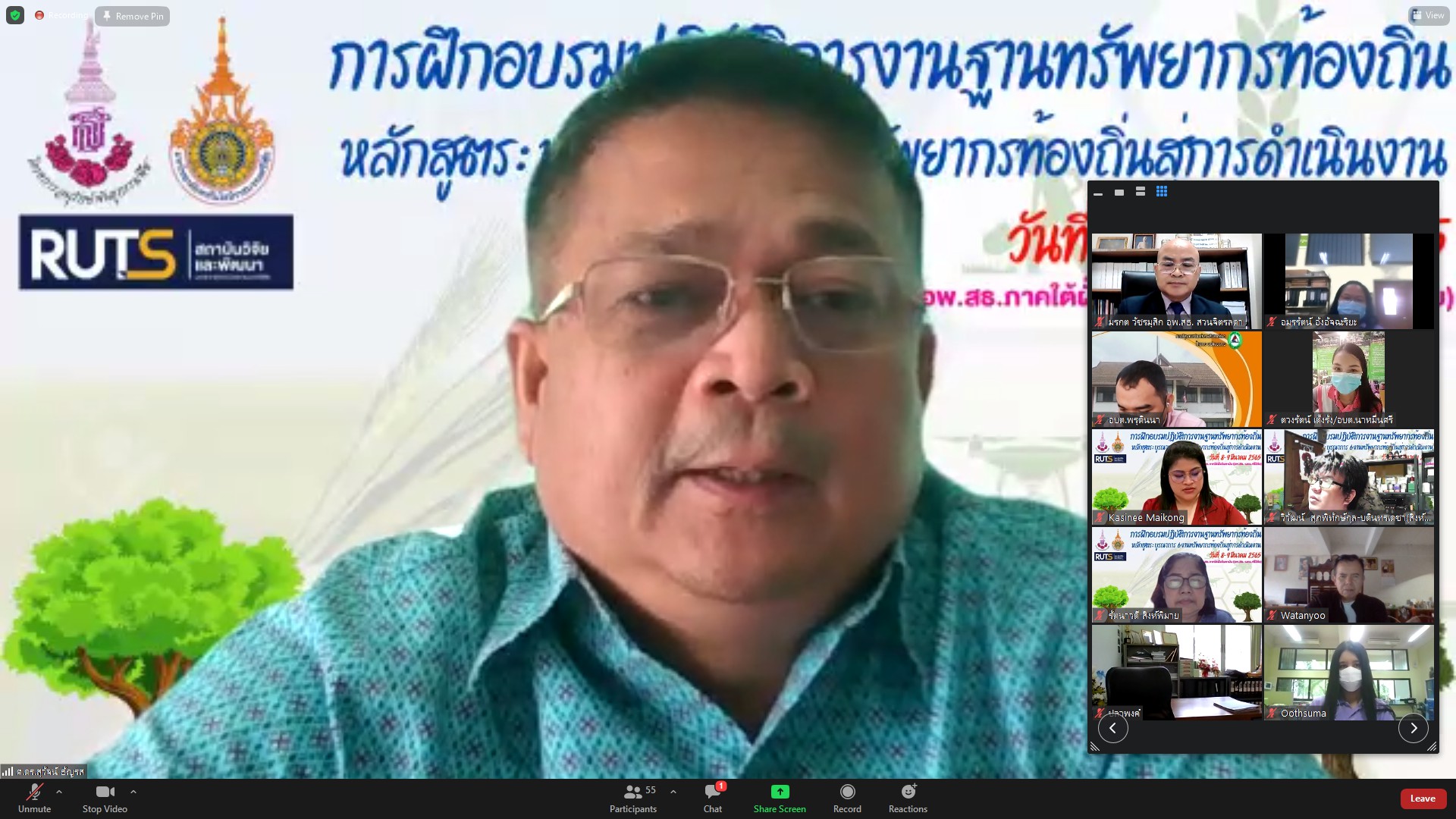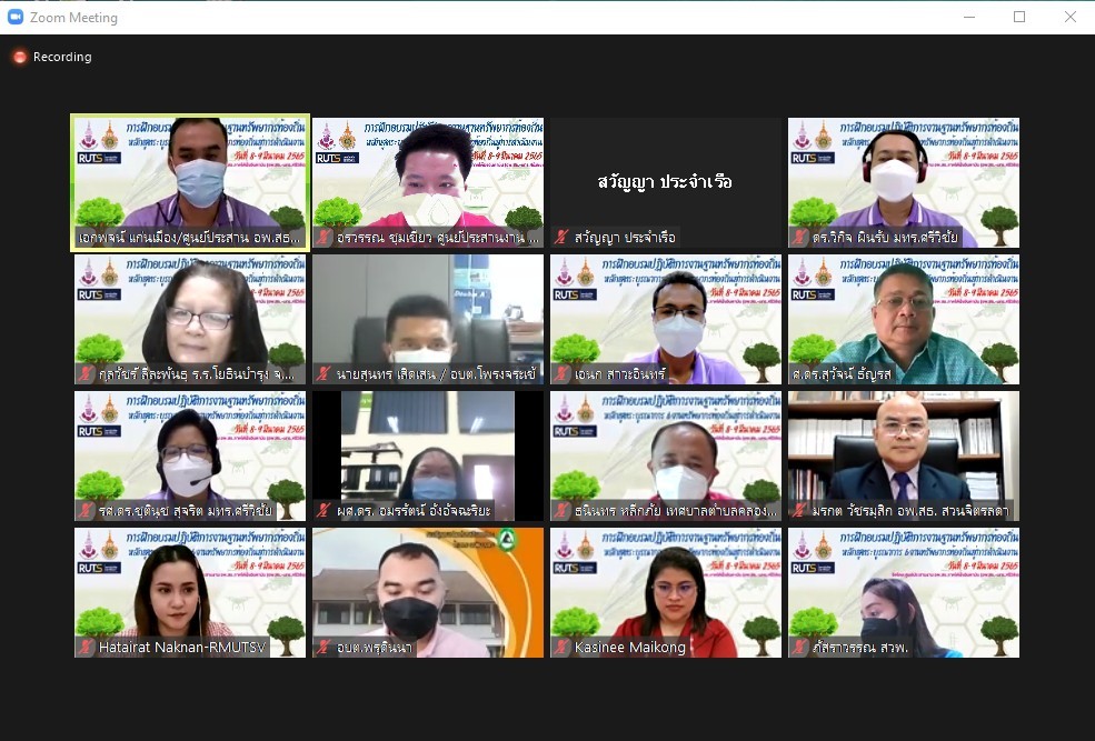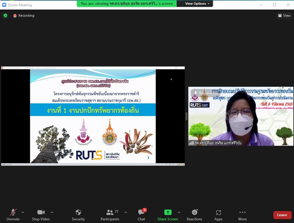 ศาสตราจารย์ ดร.สุวัจน์ ธัญรส อธิการบดี มหาวิทยาลัยเทคโนโลยีราชมงคลศรีวิชัย ประธานในพิธีเปิด “การฝึกอบรมปฏิบัติการงานฐานทรัพยากรท้องถิ่น หลักสูตร : บูรณาการ 6 งานทรัพยากรท้องถิ่นสู่การดำเนินงาน” ในวันที่ 8-9 มีนาคม 2565 ด้วยสถานการณ์การแพร่ระบาดของโรคCOVID-19 จึงได้จัดกิจกรรมในรูปแบบออนไลน์ ZOOM Cloud Meetings โดยมีผู้สนใจเข้าร่วมกิจกรรมกว่า 100 คน จากหน่วยงาน 51 หน่วยงาน