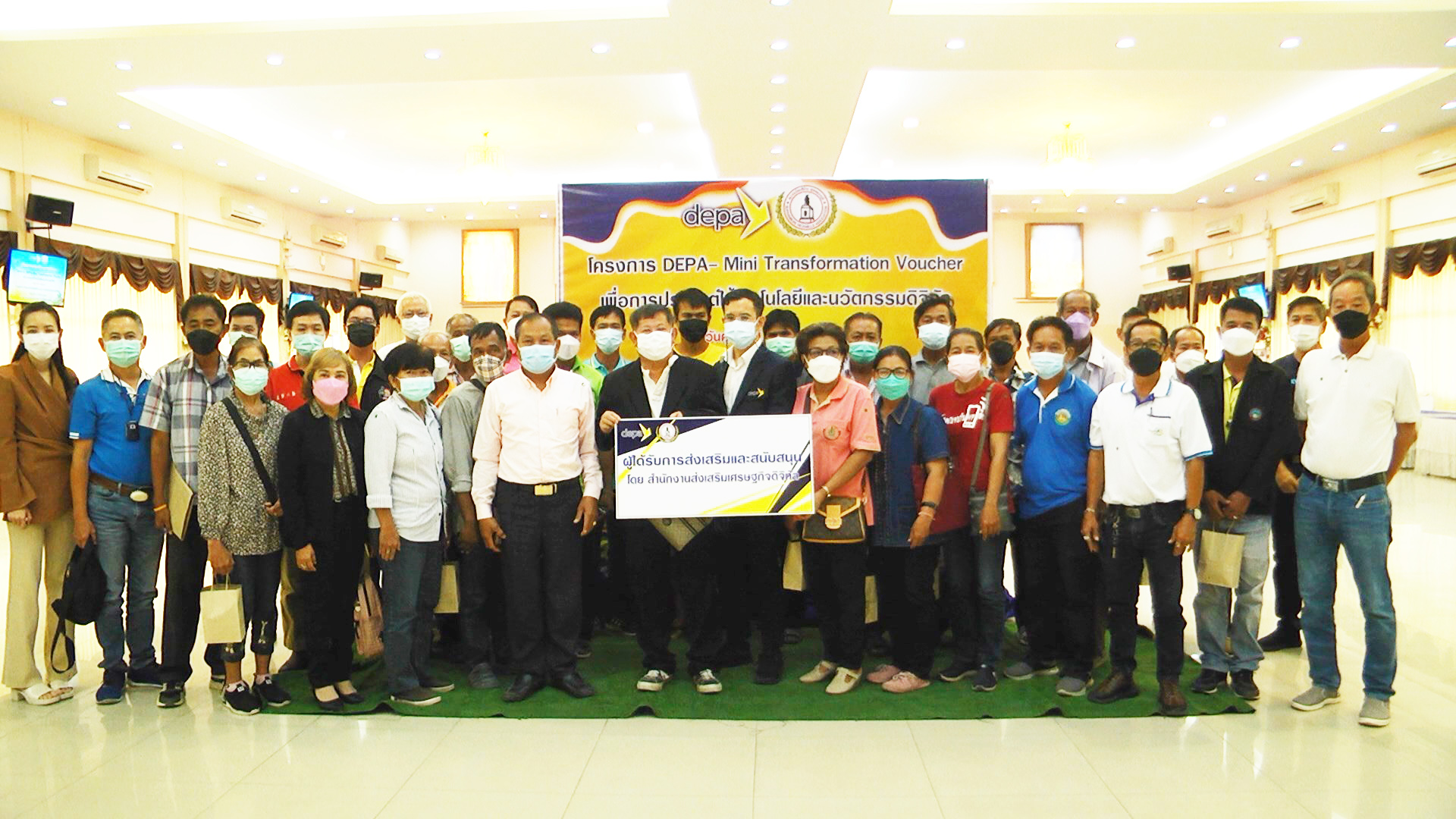 นายมนัสทพงษ์ ห้วยหงษ์ทอง นายกสมาคมโรงสีข้าวจังหวัดสุพรรณบุรี กล่าวว่าสมาคมโรงสีข้าวจังหวัดสุพรรณบุรี ได้รับการส่งเสริมและสนับสนุนจากสำนักงานส่งเสริมเศรษฐกิจดิจิทัล ให้ดำเนินโครงการ “DEPA – Mini Transformation Voucher โดยเป็นหน่วยงานร่วมในการช่วยเหลือเกษตรกรเป็นระยะเวลา 18 เดือน เพื่อส่งเสริมและสนับสนุนให้เกษตรกรได้ประยุกต์ใช้เทคโนโลยีดิจิทัล จำนวน 400 ราย รายละไม่เกิน 10,000 บาทรวมเป็นเงินอุดหนุน 3,979,075 บาท วัตถุประสงค์ เพื่อส่งเสริมการประยุกต์ใช้เทคโนโลยีดิจิตัล ให้เกิดประโยชน์ต่อการจัดการการผลิตแก่เกษตรกร ส่งเสริมให้เกษตรกรมีความความรู้ในการใช้เทคโนโลยีดิจิตัล นำไปสู่การเพิ่มประสิทธิภาพการผลิต เพื่อเป็นจุดเรียนรู้สำหรับการขยายผลไปสู่เกษตรกรทั่วไป จากการสอบถามเกษตรกรที่เข้าร่วมโครงการพบว่าได้ผลผลิตเพิ่มขึ้นถึง 20% ต่อไร่