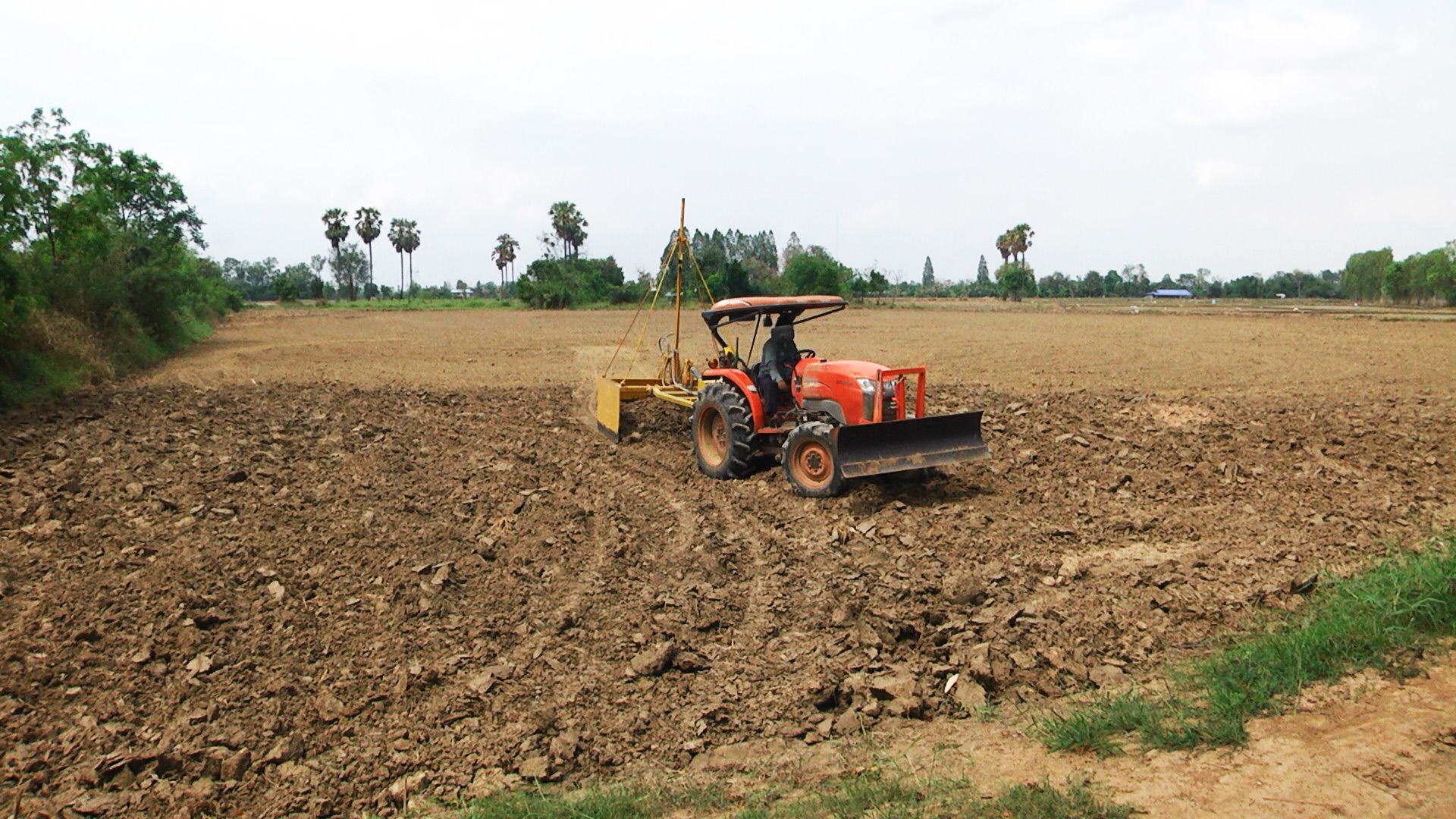 นายสมเกียรติ กล่ำคุ้ม ที่ปรึกษาด้านการส่งเสริมการเกษตร GIZสุพรรณบุรีกล่าวว่าการปรับที่นาด้วยเลเซอร์เป็นนวัตกรรมใหม่ที่ชาวนาไม่ค่อยรู้จัก ส่วนมากชาวนาจะปรับที่นาแบบเปียกโดยใช้กล่องลากดินเลนจากที่ดอนลงสู่ที่ต่ำ ส่วนดินแข็งก็ไม่สามารถลากไปได้ การวัดระดับก็ใช้สายตามองน้ำในนาความราบเลียบสม่ำเสมอก็จะน้อย ส่วนการปรับพื้นนาด้วยเลเซอร์ เป็นการปรับแบบแห้งใช้เลเซอร์เป็นตัวควบคุมการลากดินจากที่ดอนกระจายลงที่ต่ำก็จะมีประสิทธิภาพสูง ราบเลียบสม่ำเสมอทั่วทั้งแปลง สามารถทำให้ลดการใช้น้ำจากเดิมได้ถึง50 % และยังช่วยประหยัดน้ำมัน การควบคุมวัชพืชมีประสิทธิ์ภาพดีขึ้น ต้นข้าวเจริญเติบโตสม่ำเสมอ ผลผลิตเพิ่มขึ้น การสุกแก่ของข้าวพร้อมกันคุณภาพข้าวดีขึ้น ช่วงเก็บเกี่ยวนาแห้งทั้งแปลงรถเกี่ยวลงไปเก็บเกี่ยวได้ง่ายขึ้นเมล็ดข้าวร่วงหล่นน้อยลง