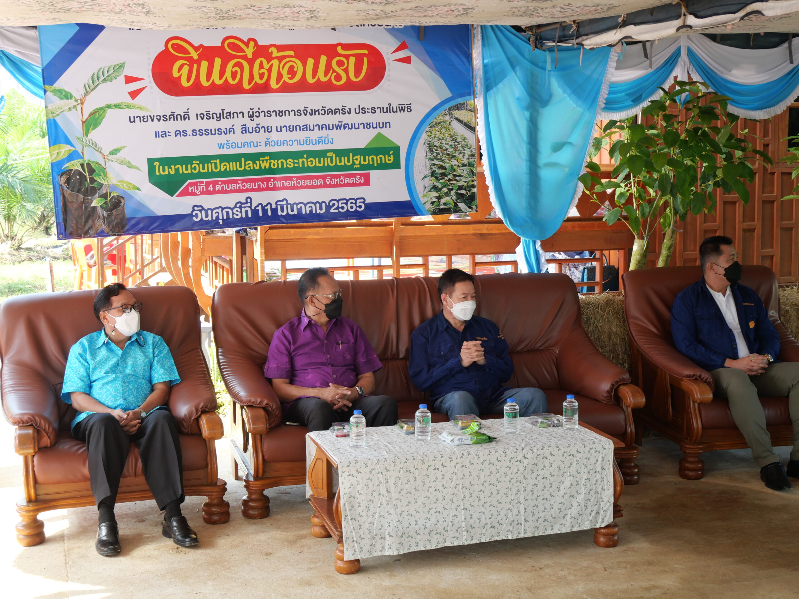 ที่สวนปาล์มน้ำมัน หมู่ที่ 4 ต.ห้วยนาง อ.ห้วยยอด จ.ตรัง นายไพบูลย์ โอมาก รองผู้ว่าราชการจังหวัดตรัง เป็นประธานในในพิธีเปิดแปลงกระท่อม พร้อมทั้งปลูกต้นกระท่อม ซึ่งพื้นที่ดังกล่าวเป็นของนายพสิษฐ์ บุญยอด อายุ 64 ปี อดีตข้าราชการครู และเป็นเกษตรกรชาวสวนยางพาราและปาล์มน้ำมัน โดยมีการปรับเปลี่ยนพื้นที่มาปลูกต้นกระท่อม ใช้พื้นที่เกือบ 30 ไร่