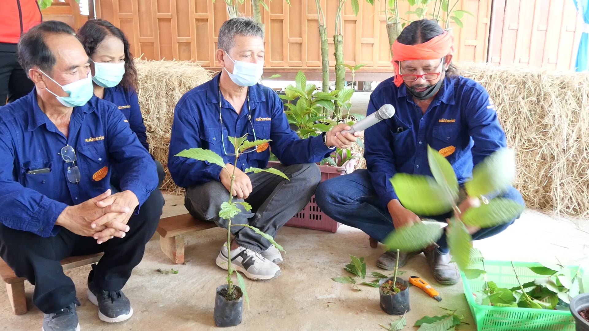 เนื่องจากเขาขอเวลาขอขยายจริง ๆ วันนี้เป็นวันสุดท้ายแล้ว แต่ทีมงานบอกยังอยู่ต่างจังหวัด เขายังมาไม่ได้และเอาไม่ทันก็เลยขอไปอีก 1 เดือน ไปถึงสิ้นเดือนมีนาคมนี้ลดครึ่งราคา และ 100 ต้น แถม 10 ต้น ราคามีตั้งแต่ 70 บาท เหลือ 35 บาท 120 บาท เหลือ 60 บาท 200 บาท เหลือ 100 บาท 300 บาท เหลือ 150 บาท กินใบได้เลยชนิด 300 บาท ก็มี 3 สายพันธุ์ ก้านแดงหางก้าน เขียวใบโพธิ์ และก้านแดง เสียบยอดได้ไม่มาก เน้นเพาะเมล็ด นอกจากนี้วิทยากรได้มีวิทยากรมาสอนด้านการเสียบยอดของต้นกระท่อม จำนวน 2 แบบ คือแบบเสียบยอดต้นเดียวและเสียบยอดรากคู่ ซึ่งการเสียบยอดรากคู่นั้นจะสามารถเก็บเกี่ยวผลผลิตได้เร็วกว่า ถ้าเสียบยอดต้นเดี่ยวจะใช้เวลาถึง 8 เดือน สามารถเก็บเกี่ยวได้ แต่ถ้าเสียบยอดรากคู่ สามารถเก็บเกี่ยวได้ในระยะเวลา 5 เดือน ถือว่าวิธีการเสียบยอดดังกล่าวเป็นคนแรกที่คิดค้นการเสียบยอดต้นกระท่อม ต้นพันธุ์ที่เสียบยอดนั้นต้องมีการคัดเลือกให้ได้ตามขนาดทั้งต้นพันธุ์และต้นที่จะนำมาเสียบยอด การเสียบยอดต้นกระท่อมนั้นจะมีราคาต่อต้นแพงกว่าการเพาะเมล็ด