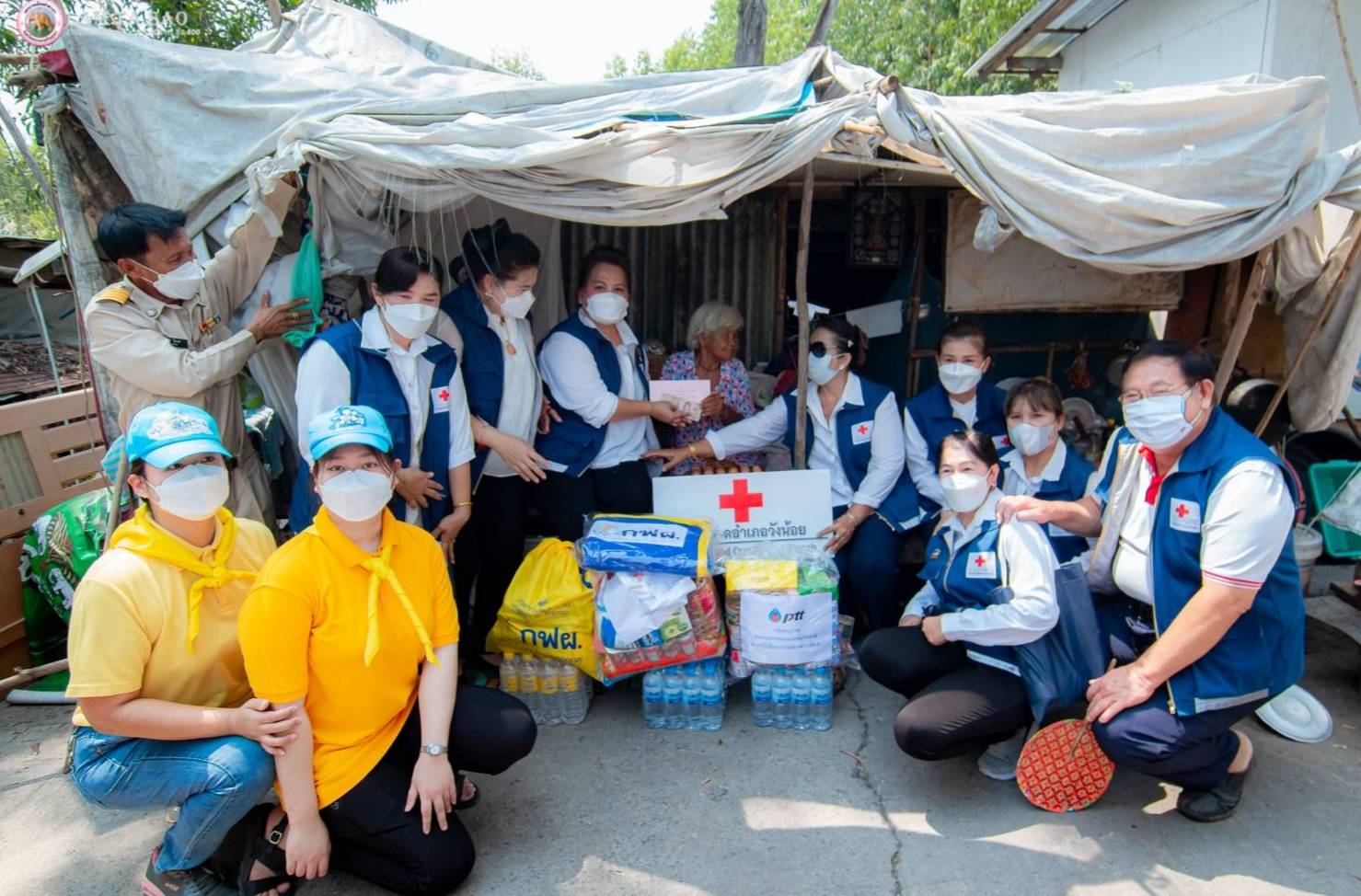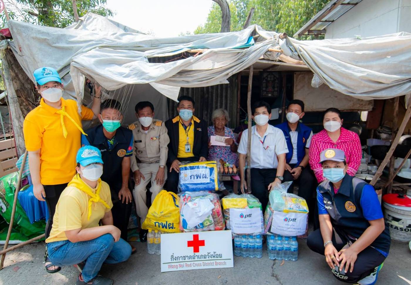 นายอำเภอวังน้อย นายกกิ่งกาชาด ร่วม บริษัท ปตท จำกัดเยียมเยียนให้กำลังใจกลุ่มเปราะบาง