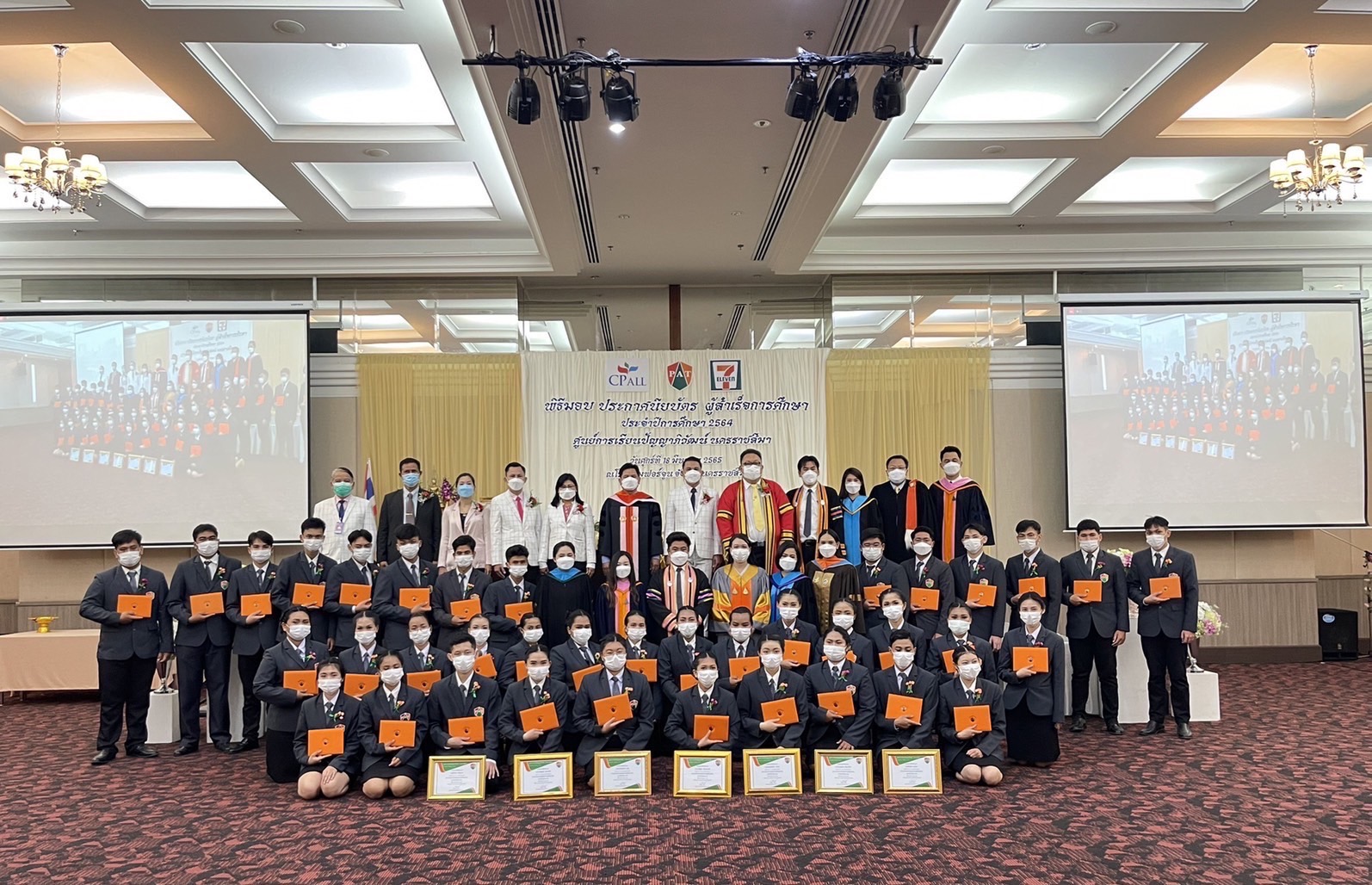 ที่โรงแรมฟอจูน อ.เมือง จ.นครราชสีมา ดร. กิตติพงศ์ โด่งพิมาย ผู้อำนวยการเขตพื้นที่การศึกษาประถมศึกษา นครราชสีมาเขต 1 เป็นประธานในพิธีมอบประกาศนียบัตรแก่ผู้สำเร็จการศึกษาศูนย์การเรียนปัญญาภิวัฒน์ นครราชสีมา ประจำปีการศึกษา2564 โดยมีนายพรเทพ พลับนิ่ม ผู้อำนวยการสำนักบริหารศูนย์การเรียนปัญญาภิวัฒน์ และผู้แทนจากหน่วยงานในเครือบริษัทซีพีออลล์,ผู้บริหารกระทรวงยุติธรรม ผู้บริหารหารอาชีวศึกษาจัวหวัดนครราชสีมา ,ผู้บริหารโรงเรียนเทศบาลนครนครราชสีมาร่วมพิธี นายศิวัฒ บุสำโรง ผู้จัดการศูนย์การเรียนปัญญาภิวัฒน์ นครราชสีมา กล่าวรายงานว่า ศูนย์การเรียนปัญญาภิวัฒน์ นครราชสีมา เป็นสถานศึกษาตามพระราชบัญญัติการศึกษาแห่งชาติ พุทธศักราช2542 ภายใต้การควบคุมดูแลของสำนักงานคณะกรรมการการศึกษาขั้นพื้นฐาน ดำเนินการสอนตามหลักสูตรประกาศนียบัตรสาขาธุรกิจค้าปลีกสมัยใหม่ จัดการเรียนการสอนรูปแบบทวิภาคี โดยเรียนรู้ทั้งภาคทฤษฎีควบคู่กับภาคปฏิบัติ มุ่งเน้นประสบการณ์ตรง พัฒนาผู้เรียนอย่างมีคุณภาพ ผู้เรียนได้รับทุนการศึกษาตลอดหลักสูตรและมีรายได้ระหว่างการฝึกประสบการณ์วิชาชีพในสถานประกอบการ