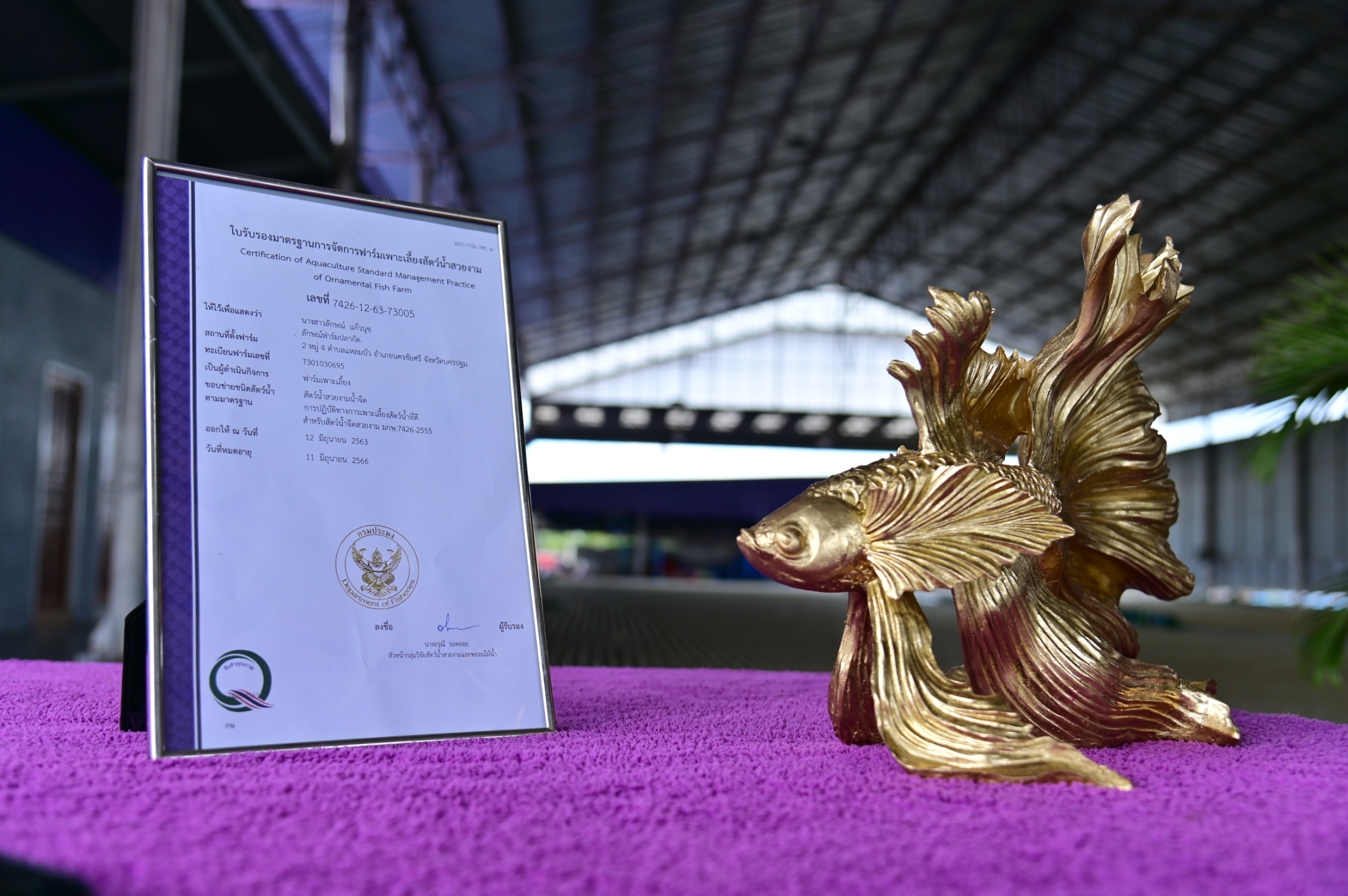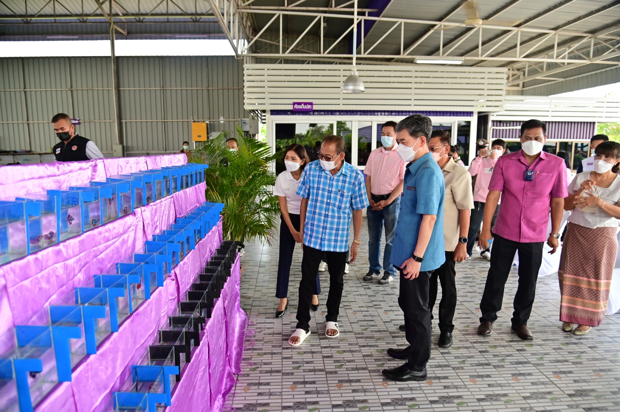วันที่ 22 มีนาคม 2565 นายสุรศักดิ์ เจริญศิริโชติ ผู้ว่าราชการจังหวัดนครปฐม พร้อมด้วย นางวราภรณ์ เจริญศิริโชติ นายกเหล่ากาชาดจังหวัดนครปฐม นายอำเภอนครชัยศรี หัวหน้าส่วนราชการ และเจ้าหน้าที่จากหน่วยงานต่างๆ ร่วมลงพื้นที่ตรวจเยี่ยมเครือข่ายศูนย์อำนวยการขจัดความยากจนและพัฒนาคนทุกช่วงวัยอย่างยั่งยืน ตามหลักปรัชญาเศรษฐกิจพอเพียง ด้านประมง ณ ฟาร์มปลากัด ของนายวัลลภ วุ่นสุด หรือ ลุงหนู ตำบลแหลมบัว อำเภอนครชัยศรี ซึ่งเป็นเกษตรกรดีเด่น ทั้งระดับจังหวัดและระดับประเทศ โดยเพาะเลี้ยงปลากัดส่งไปจำหน่ายที่ประเทศสหรัฐอเมริกาเป็นหลัก รวมทั้งประเทศอินเดียและประเทศอื่นๆ มีกำลังการผลิตสัปดาห์ละ 30,000 – 50,000 ตัว หรือเดือนละประมาณ 120,000 – 200,000 ตัว ปัจจุบัน ฟาร์มปลากัดของลุงหนู ได้รับใบรับรองมาตรฐานการจัดการฟาร์มเพาะเลี้ยงสัตว์น้ำสวยงาม อีกด้วย