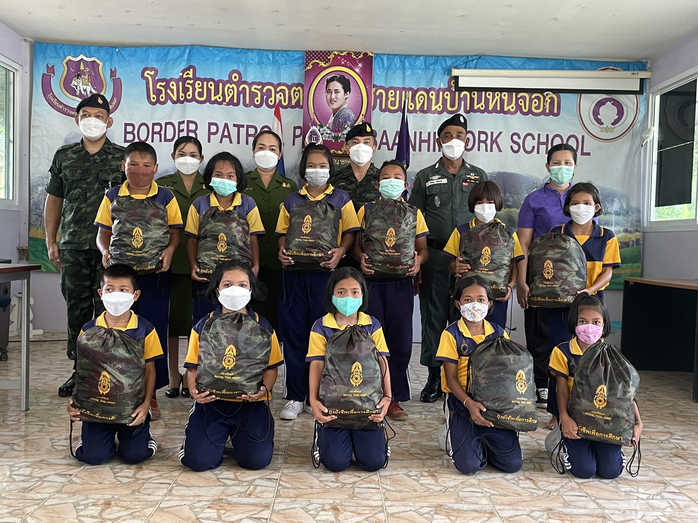 ที่โรงเรียนตำรวจตระเวนชายแดนบ้านหินจอก ม.6 ต.ลิพัง อ.ปะเหลียน จ.ตรัง พ.อ.สรรัศมิ์ นิลสลับ ผู้บังคับกองพันทหารราบที่ 4 กรมทหารราบที่ 15 ค่ายพระยารัษฎานุประดิษฐ์ พร้อมด้วยสมาชิกแม่บ้าน ทบ.สาขา ร.15 พัน.4 มอบถุงยังชีพเพื่อการศึกษา ให้กับนักเรียน โรงเรียนตำรวจตระเวนชายแดนบ้านหินจอก ในพระบรมราชูปถัมภ์ ของสมเด็จพระกนิษฐาธิราชเจ้ากรมสมเด็จพระเทพรัตนราชสุดา สยามบรมราชกุมารี ที่มีความลำบาก ตามโครงการ “ถุงยังชีพเพื่อการศึกษา” ของกองทัพบก