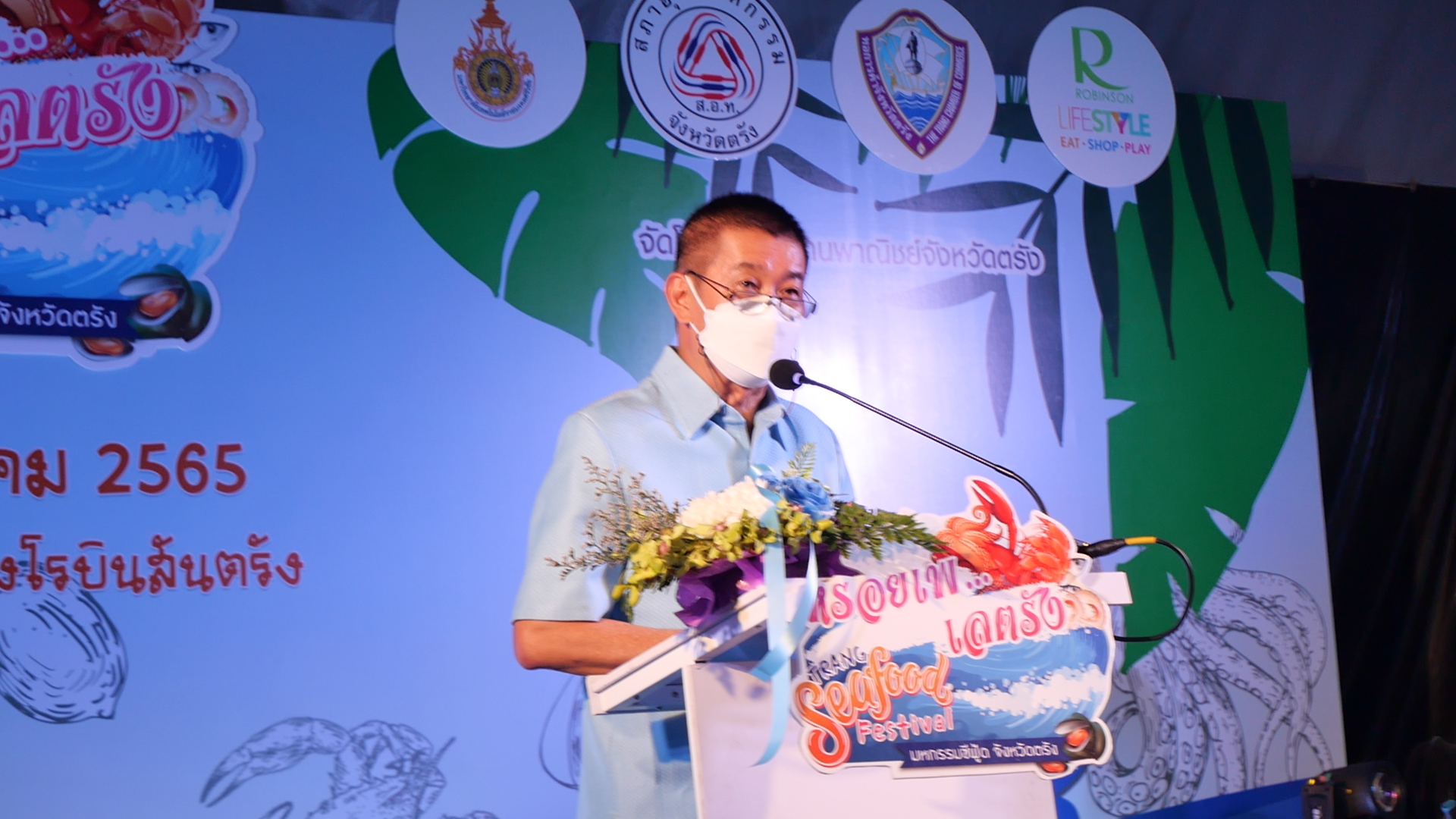 ที่ห้างสรรพสินค้าโรบินสัน ตรัง นายขจรศักดิ์ เจริญโสภา ผู้ว่าราชการจังหวัดตรัง เป็นประธานในพิธีเปิดงาน “หรอยเพเลตรัง มหกรรมซีฟูด จังหวัดตรัง : Trang Seafood Festival” ภายใต้กิจกรรมส่งเสริมอาหารซีฟู้ดภายในจังหวัด โครงการสงเสริมเศรษฐกิจเมืองใต้ เชื่อมโยงการค้าโลก ประจำปีงบประมาณ พ.ศ.2565 นางสาวสุภากิตติ์ เกลี้ยงสงค์ พาณิชย์จังหวัดตรัง กล่าวว่า การจัดกิจกรรมส่งเสริมอาหารซีฟู้ดภายในจังหวัดขึ้น เพื่อเป็นการเผยแพร่ให้คนทั่วไปทราบถึงศักยภาพของผลิตภัณฑ์อาหารทะเลของจังหวัดตรังให้เป็นที่รู้จักอย่างกว้างขวาง ส่งเสริมช่องทางการตลาดให้กับผู้ประกอบการผลิตภัณฑ์อาหารทะเลและชาวประมงพื้นถิ่น ช่วยเหลือผู้ประกอบการให้มีอาชีพและมีรายได้ในช่วงสถานการณ์ Covid – 19 ที่เกิดขึ้นอย่างต่อเนื่องและยาวนาน และกระตุ้นเศรษฐกิจของจังหวัด ฟื้นฟูภาคการท่องเที่ยว รวมทั้งยกระดับเศรษฐกิจของจังหวัดให้มีการขยายตัวและเจริญเติบโตอย่างยั่งยืน