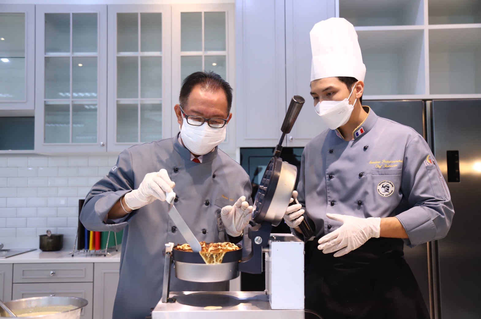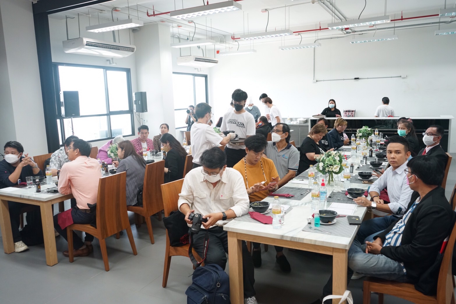 จากนั้นได้พาสื่อมวลชนร่วมรับประทานอาหารกลางวัน โดยฝีมือของนักศึกษาหลักสูตร Chef ที่มหาวิทยาลัยเปิดดำเนินการร่วมกับ สถาบันการครัวดิซิพ เอสโคฟิเอร์ และมหาวิทยาลัย เซอี แซร์จี ปารีส เพื่อเป็นการเปิดตัวหลักสูตรการทำอาหารฝรั่งเศส