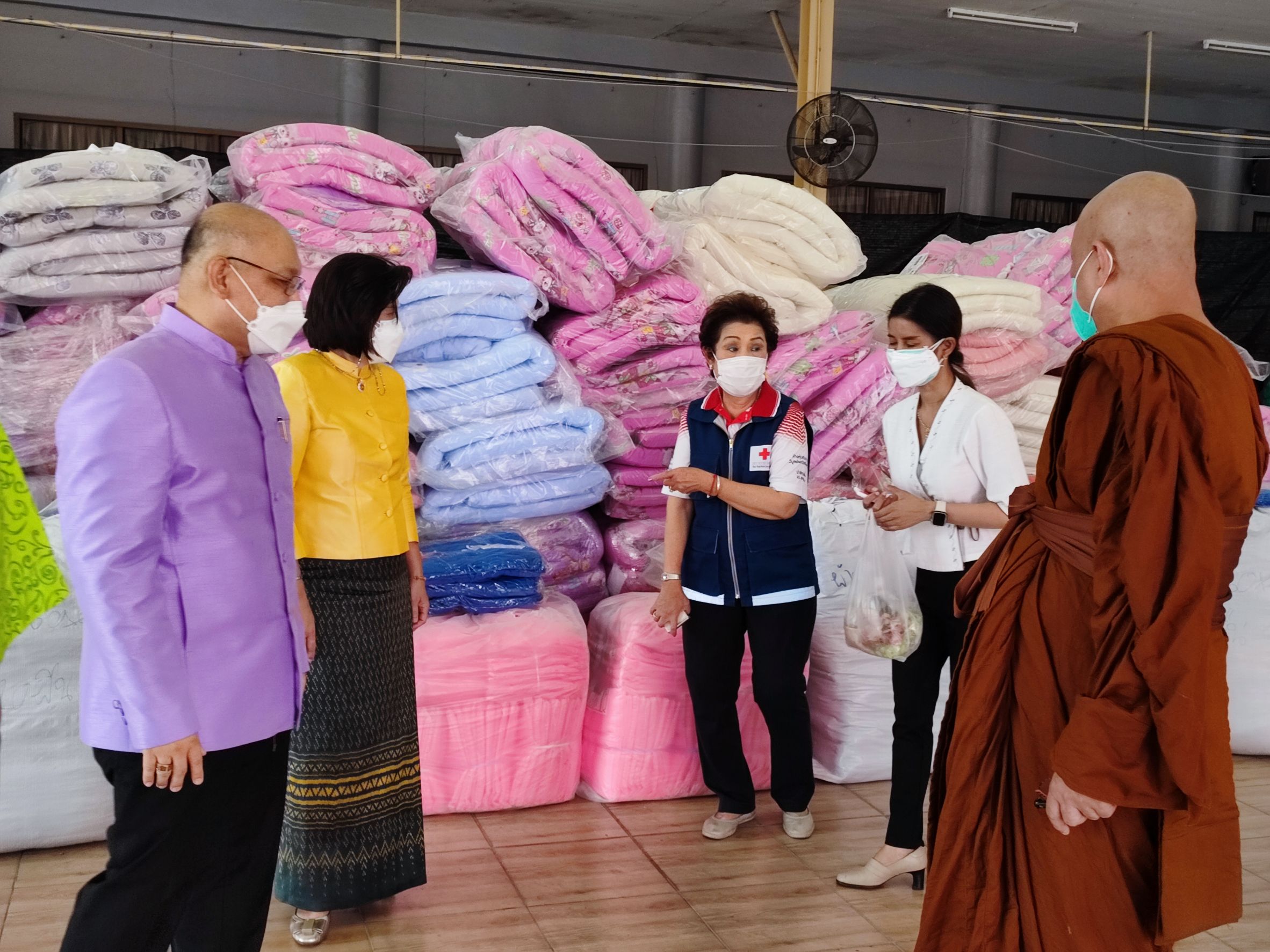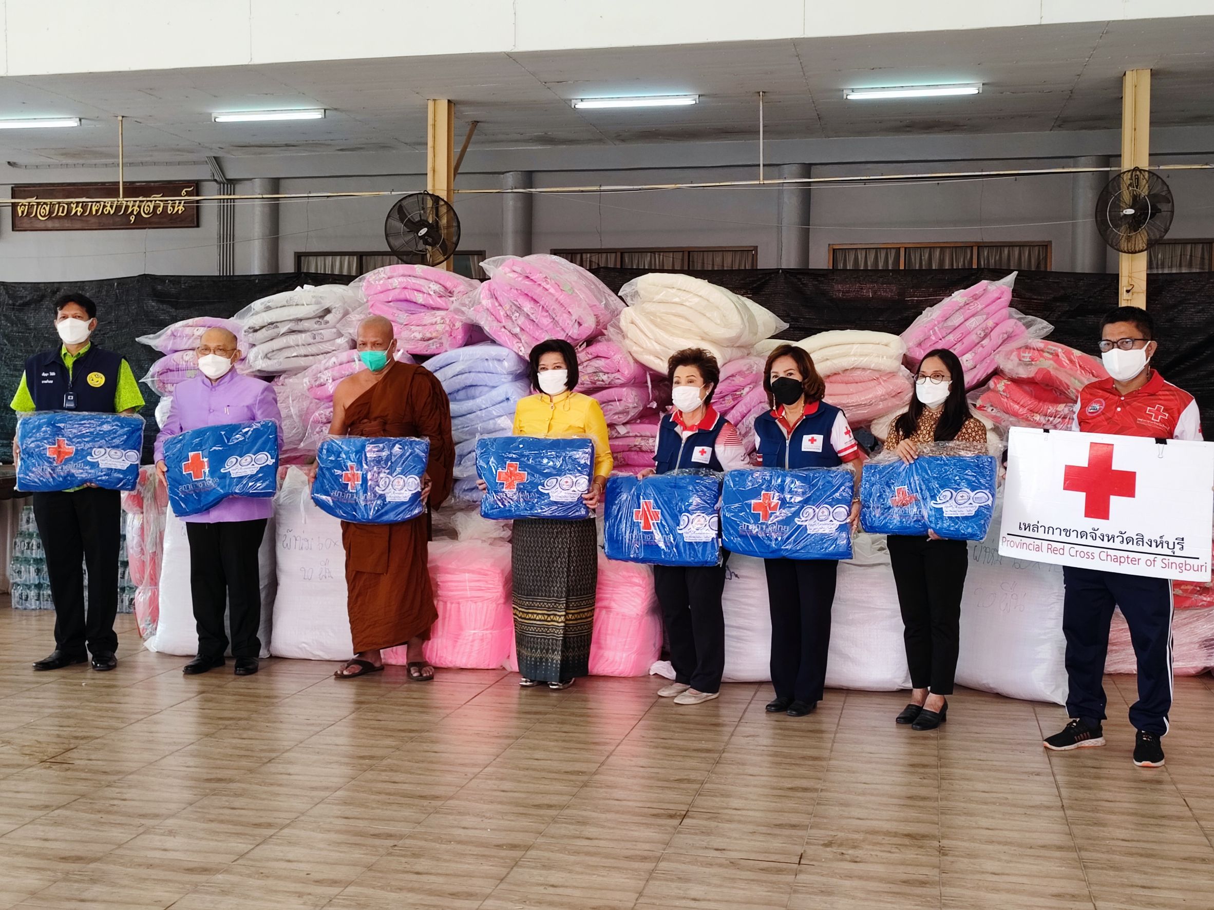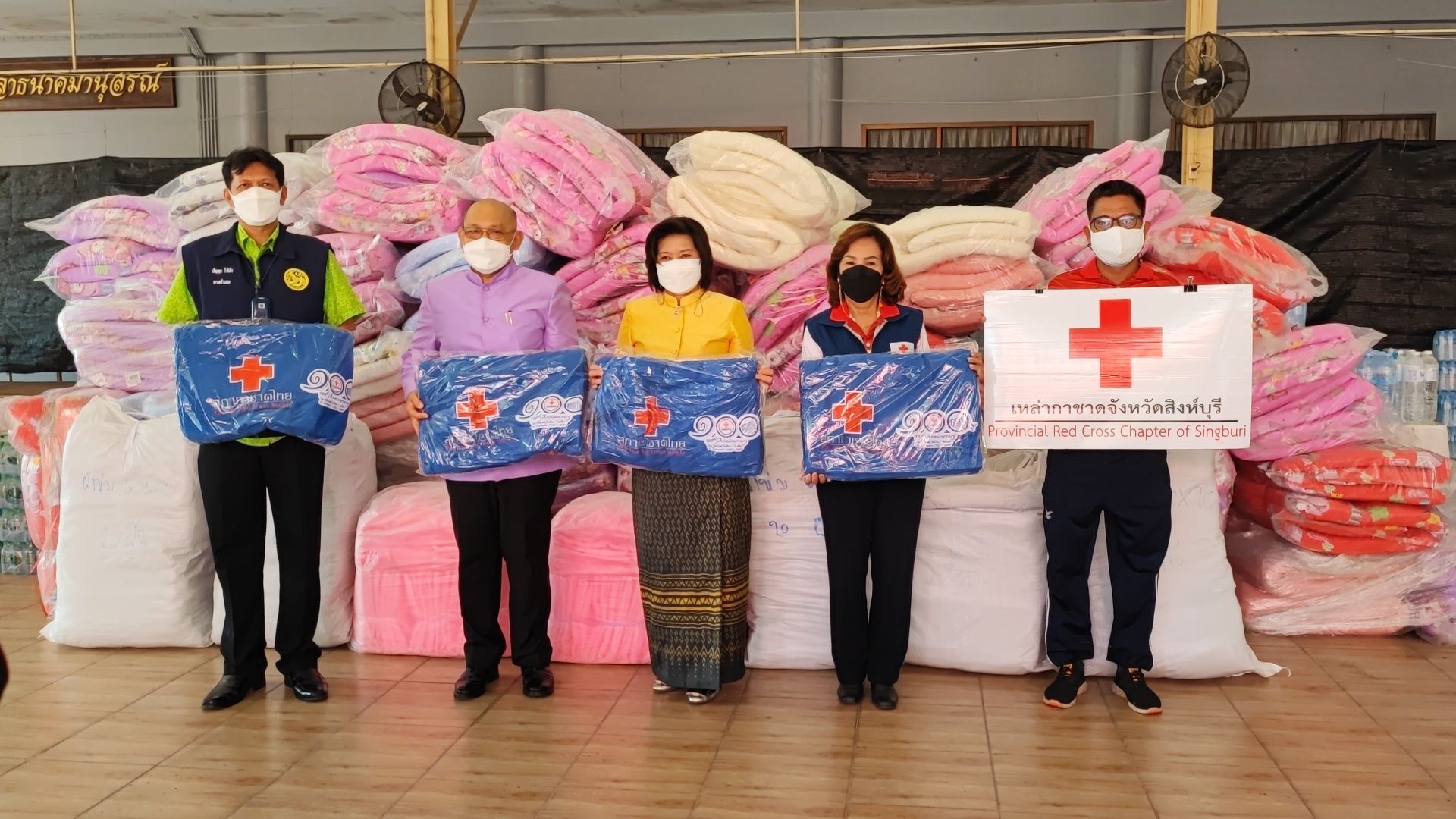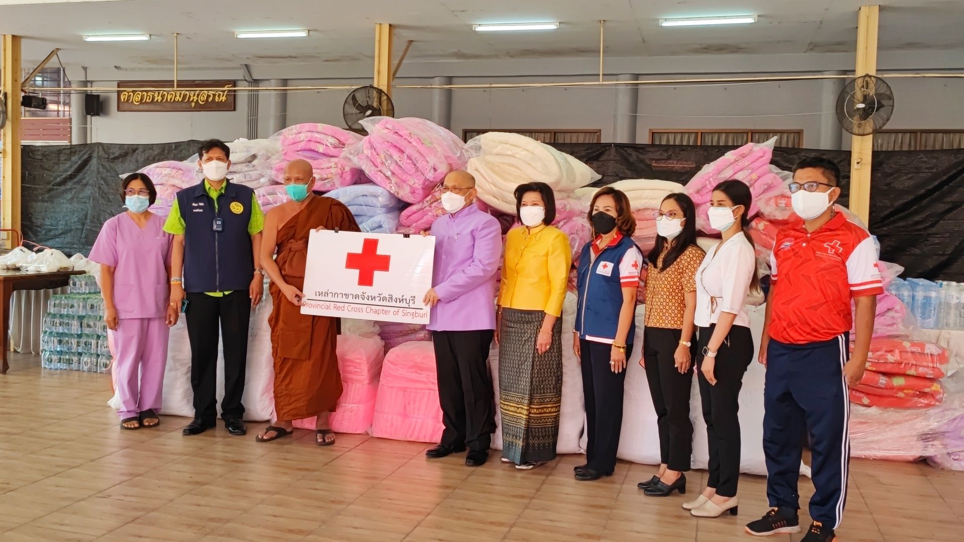 วันที่ 30 มีนาคม 2565 เวลา 11.30 น. นายชัยชาญ สิทธิวิรัชธรรม ผู้ว่าราชการจังหวัดสิงห์บุรี พร้อมด้วยนางจิตติวรรณ สิทธิวิรัชธรรม นายกเหล่ากาชาดจังหวัดสิงห์บุรี นางสาวนัยนา ศรีเร รองนายกเหล่ากาชาดจังหวัดสิงห์บุรี นายอำเภอเมืองสิงห์บุรี กรรมการเหล่ากาชาดจังหวัดสิงห์บุรี ผู้แทนสำนักงานสาธารณสุขจังหวัดสิงห์บุรี และเจ้าหน้าที่เหล่ากาชาดจังหวัดสิงห์บุรี ตรวจเยี่ยม ให้กำลังใจ โดยมอบที่นอน หมอน ผ้าห่ม และมุ้ง ซึ่งได้รับการสนับสนุนจากสำนักบรรเทาทุกข์และประชานามัยพิทักษ์ สภากาชาดไทย จำนวน 100 ชุด ณ โรงพยาบาลสนาม วัดโพธิ์แก้วนพคุณ ต.บางพุทรา อ.เมืองสิงห์บุรี จังหวัดสิงห์บุรี