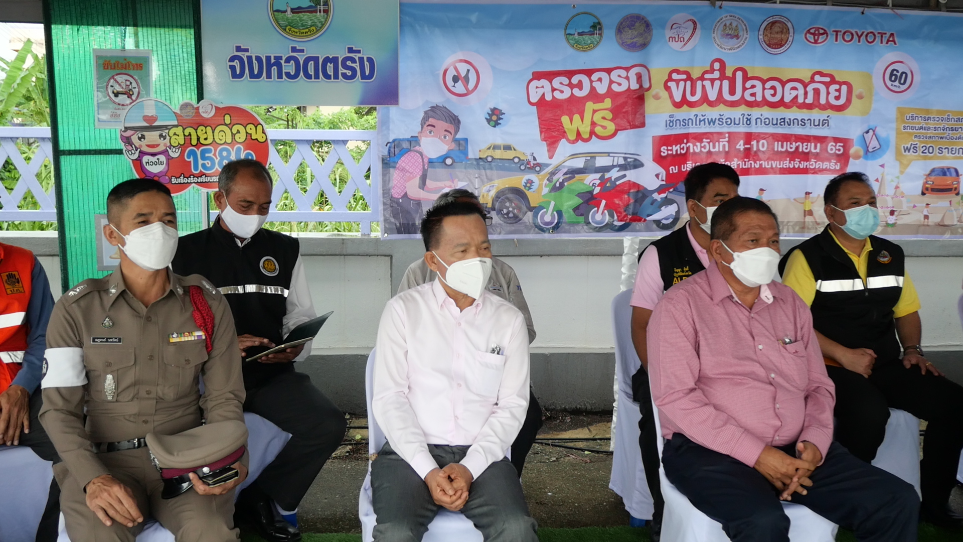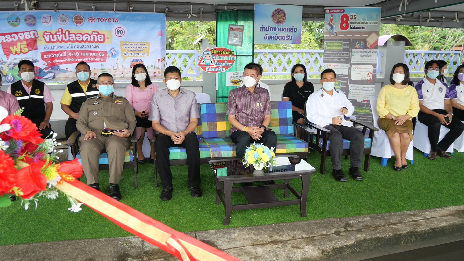นายขจรศักดิ์ เจริญโสภา ผู้ว่าราชการจังหวัดตรัง เป็นประธานในพิธีเปิด กิจกรรม “ตรวจรถฟรี ขับขี่ปลอดภัย” ตามที่สำนักงานขนส่งจังหวัดตรัง ได้ดำเนินโครงการรณรงค์ป้องกันและลดอุบัติเหตุทางถนนในช่วงเทศกาลสำคัญมาอย่างต่อเนื่อง เพื่อป้องกันและลดอุบัติเหตุที่เกิดจากการใช้รถใช้ถนนและเพื่อเสริมสร้างจิตสำนึกด้านความปลอดภัยในการใช้รถใช้ถนนโดยได้รับการสนับสนุนงบประมาณจากกองทุน เพื่อความปลอดภัยในการใช้รถใช้ถนน ในการดำเนินโครงการดังกล่าว สำหรับช่วงเทศกาลสงกรานต์ พ.ศ.2565 สำนักงานขนส่งจังหวัดตรัง ร่วมกับ วิทยาลัยสารพัดช่างตรัง ศูนย์พัฒนาฝีมือแรงงานจังหวัดตรัง และบริษัท โตโยต้าเมืองตรัง ผู้จำหน่ายโตโยต้า จำกัด