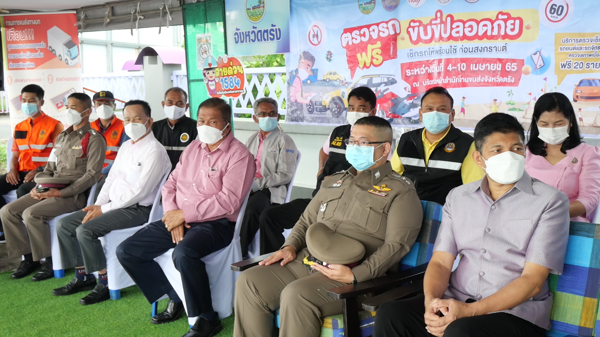 สำหรับการจัดกิจกรรม “ตรวจรถฟรี ขับขี่ปลอดภัย” จะดำเนินการระหว่างวันที่ 4-10 เมษายน 2565 ณ บริเวณหน้าสำนักงานขนส่งจังหวัดตรัง อำเภอเมืองตรัง จังหวัดตรัง เพื่อให้ประชาชนในจังหวัดตรัง และประชาชนที่สัญจรผ่านเข้าออกจังหวัดตรัง ได้เดินทางโดยสวัสดิภาพและปลอดภัย โดยให้บริการตรวจรถฟรีทั้งรถยนต์ และรถจักรยานยนต์ และบริการเปลี่ยนอุปกรณ์และอะไหล่ที่จำเป็นเบื้องต้น เช่น หลอดไฟ เปลี่ยนถ่ายน้ำมันเครื่อง เช็คล้อ ยาง ฯลฯ ซึ่งประชาชนที่มีความประสงค์จะนำรถเข้าตรวจสภาพและความพร้อมก่อนนำไปใช้บนท้องถนนในช่วงเทศกาลสงกรานต์ พ.ศ.2565 ได้รับบริการ และเกิดความมั่นใจก่อนนำรถไปใช้เพื่อเป็นการป้องกันและลดอุบัติเหตุทางถนน และเดินทางท่องเที่ยวด้วยความปลอดภัยต่อไป อย่างไรก็ตามทางจังหวัดตรังคาดหวังจะไม่มีผู้เสียชีวิตจากอุบัติเหตุช่วงเทศกาลสงกรานต์ เนื่องจากในช่วงเทศกาลปีใหม่ที่ผ่านมาจังหวัดตรังไม่มีผู้เสียชีวิตจากอุบัติเหตุช่วงเทศกาลปีใหม่