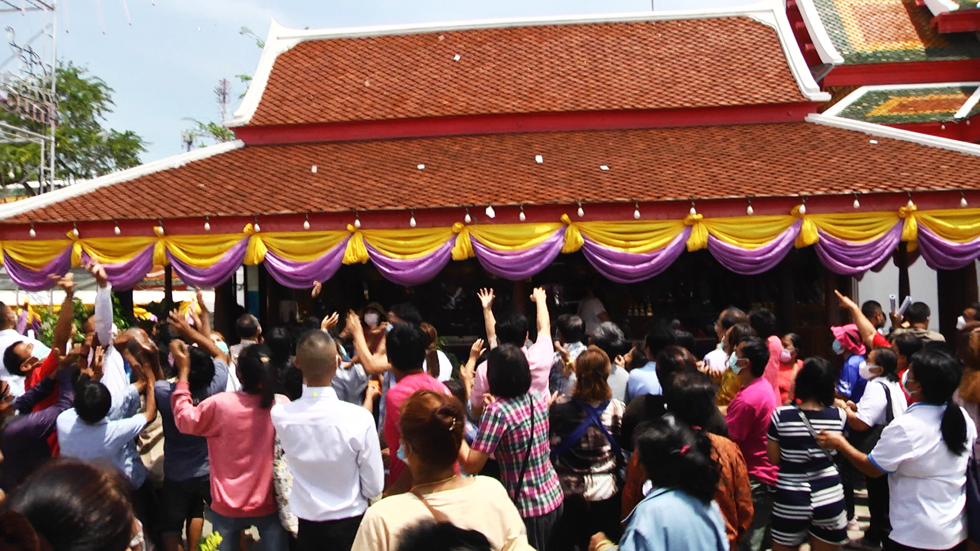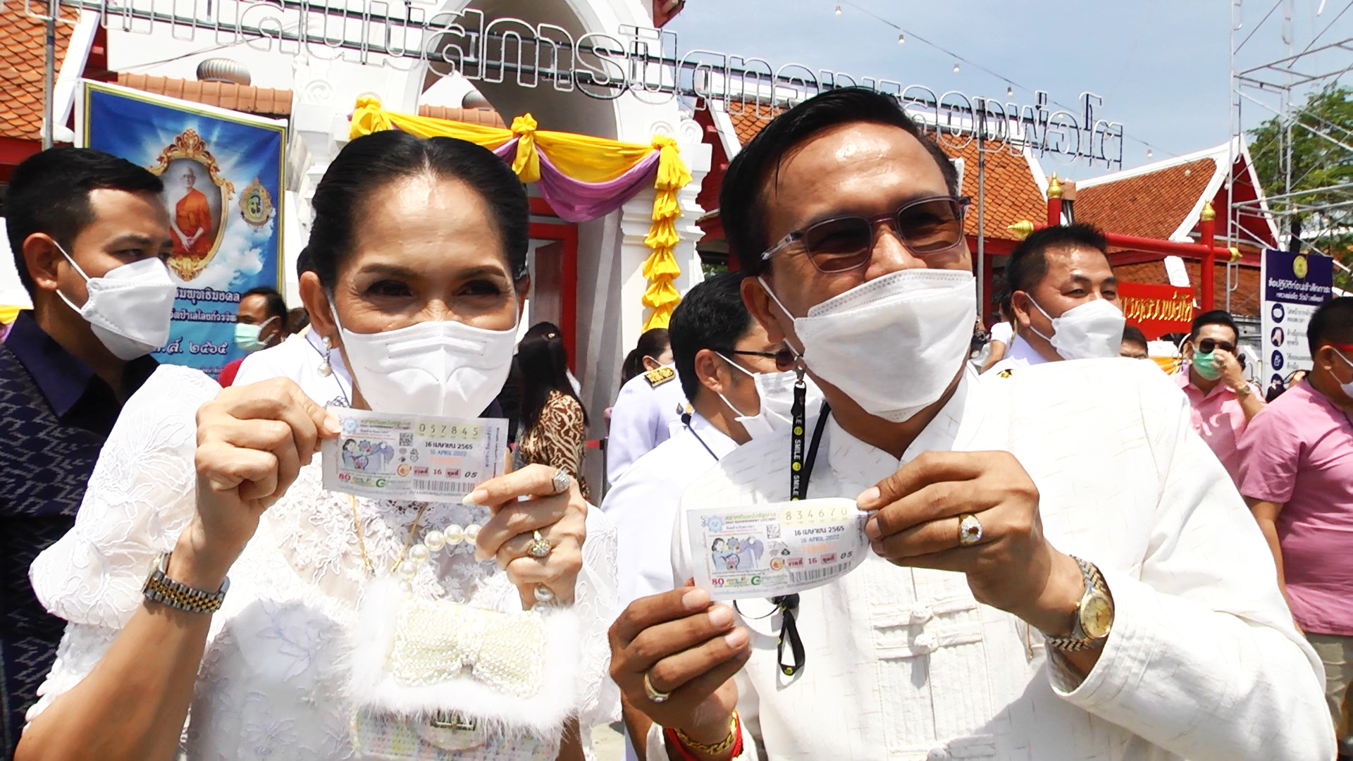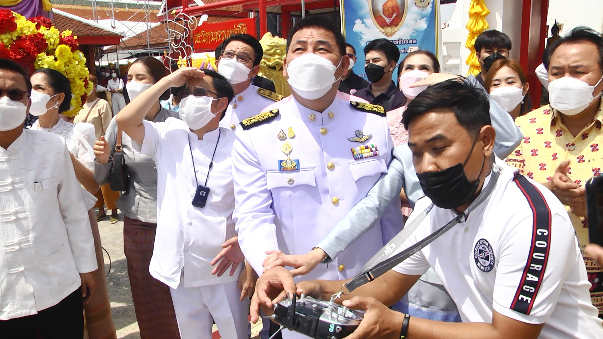 สุพรรณบุรี ฮือฮาที่ปรึกษารมวทส เปิดงานนมัสการหลวงพ่อโต บินโดรนโปรยลอตเตอรี่