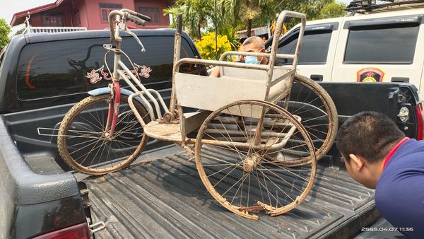 และในวันเดียวกันวันที่ 7 เมษายน 2565 ได้นำรถสามล้อโยกที่ชำรุดไม่สามารถใช้งานได้ของนางจำลอง โคกอ่อน คนพิการที่มีความพิการทางการเคลื่อนไหว ขาทั้ง 2 ข้างโดยใช้ไม้ค้ำยัน ซึ่งเป็นคนพิการอยู่ในพื้นที่ หมู่ที่ 2ต.สีบัวทอง อ.แสวงหา จ.อ่างทองซึ่งนางจำลอง โคกอ่อน มีความเป็นอยู่อย่างลำบากในการเคลื่อนไหวและเป็นผู้เลี้ยงดูมารดาที่ชรา ซึ่งได้ร้องขอกับทีมงานจิตอาสาฯ สืบเนื่องมาจากทีมงานจิตอาสาฯ ได้ลงพื้นที่เยี่ยมและมอบสิ่งของ เครื่องอุปโภค บริโภคเมื่อวันที่ 27 มีนาคม พ.ศ. 2565 ที่ผ่านมา