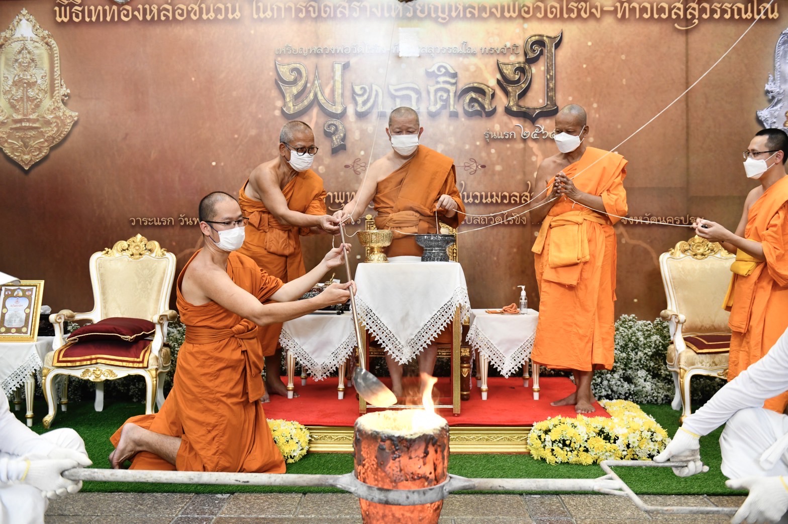 เจ้าประคุณสมเด็จพระมหารัชมงคลมุนี (ธงชัย ธมฺมธโช)กรรมการมหาเถรสมาคม เจ้าคณะใหญ่หนกลาง ผู้ช่วยเจ้าอาวาสวัดไตรมิตรวิทยาราม กรุงเทพฯ เป็นองค์ประธานในพิธีหลอมชนวนแผ่นยันต์ พลีวัตถุมงคลรุ่นเก่าทำฉนวนจัดสร้างเหรียญหลวงพ่อวัดไร่ขิง-ท้าวเวสสุวัณโณ ทรงจำปี สุดยอดพุทธศิลป์แห่งยุค รุ่นแรก ณ พระอุโบสถวัดไร่ขิง อำเภอสามพราน จังหวัดนครปฐม