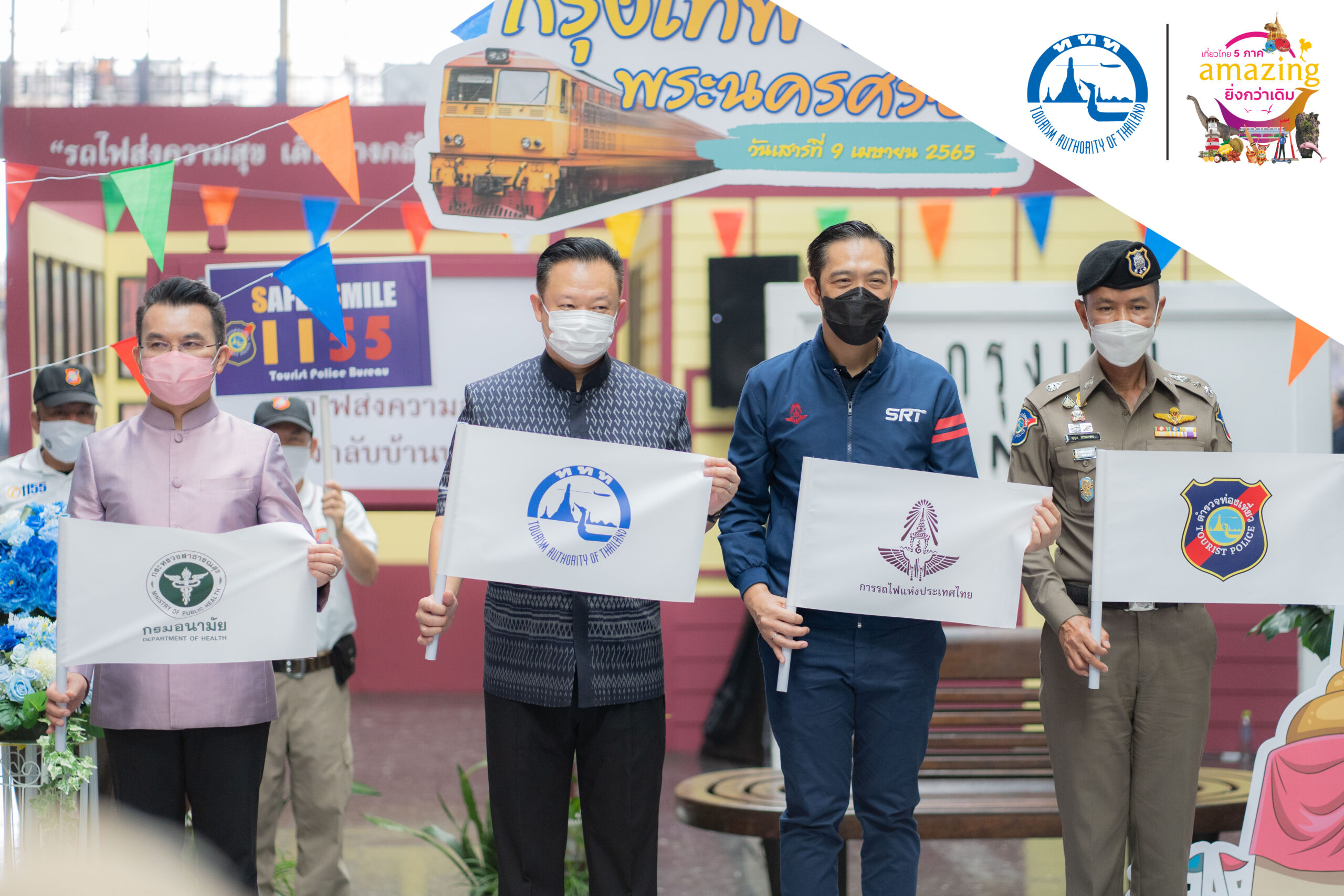 เมื่อวันที่ 9 เมษายน พ.ศ. 2565 ณ บริเวณสถานีรถไฟหัวลำโพง กรุงเทพฯ มีการจัดกิจกรรมเบิกฤกษ์เพื่อสร้างความเชื่อมั่นในการท่องเที่ยวปลอดภัยด้วยรถไฟ กับกิจกรรม “เดินทางด้วยรถไฟ ท่องเที่ยวปลอดภัย ใช้ชีวิตแบบ Next Normal” ประกอบด้วย นายยุทธศักดิ์ สุภสร ผู้ว่าการท่องเที่ยวแห่งประเทศไทย (ททท.) นายนิรุฒ มณีพันธ์ ผู้ว่าการรถไฟแห่งประเทศไทย (รฟท.) นพ.สราวุฒิ บุญสุข รองอธิบดีกรมอนามัย และพล.ต.ท.สุคุณ พรหมายน ผู้บัญชาการตำรวจท่องเที่ยว ทั้ง 4 หน่วยงาน จะมีการประสานการทำงานร่วมกันในการสร้างความปลอดภัยให้กับนักท่องเที่ยว ให้มีความปลอดภัยทั้งด้านสุขอนามัย รวมถึงการใช้ชีวิตและระหว่างการเดินทาง โดยใช้เทศกาลสงกรานต์เป็นกิจกรรมนำร่องของการทำงานร่วมกันในทุกมิติ