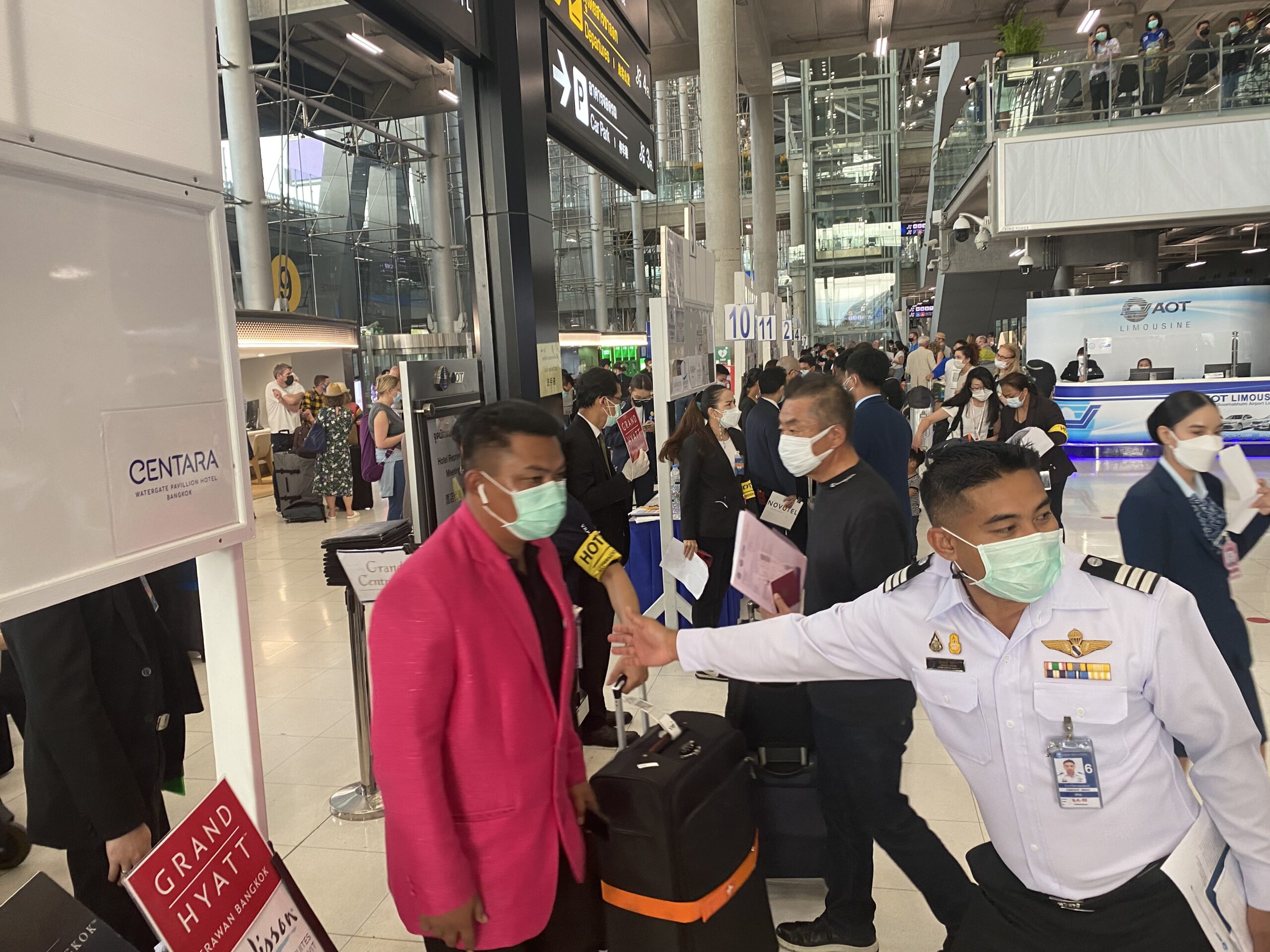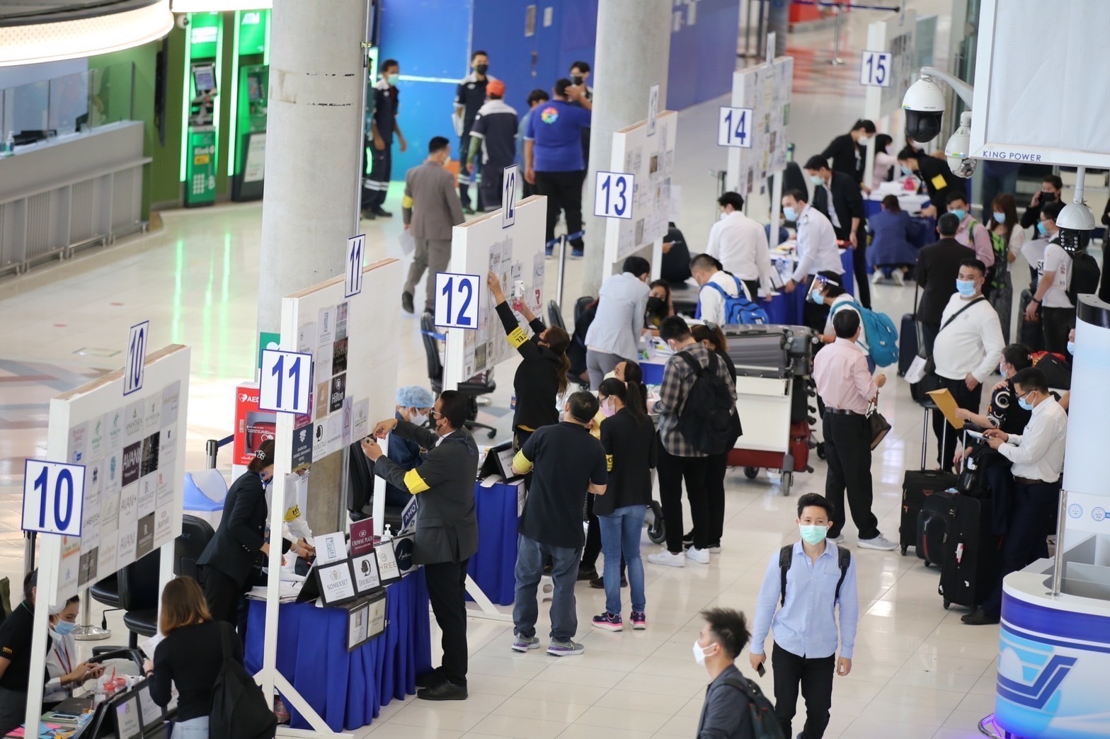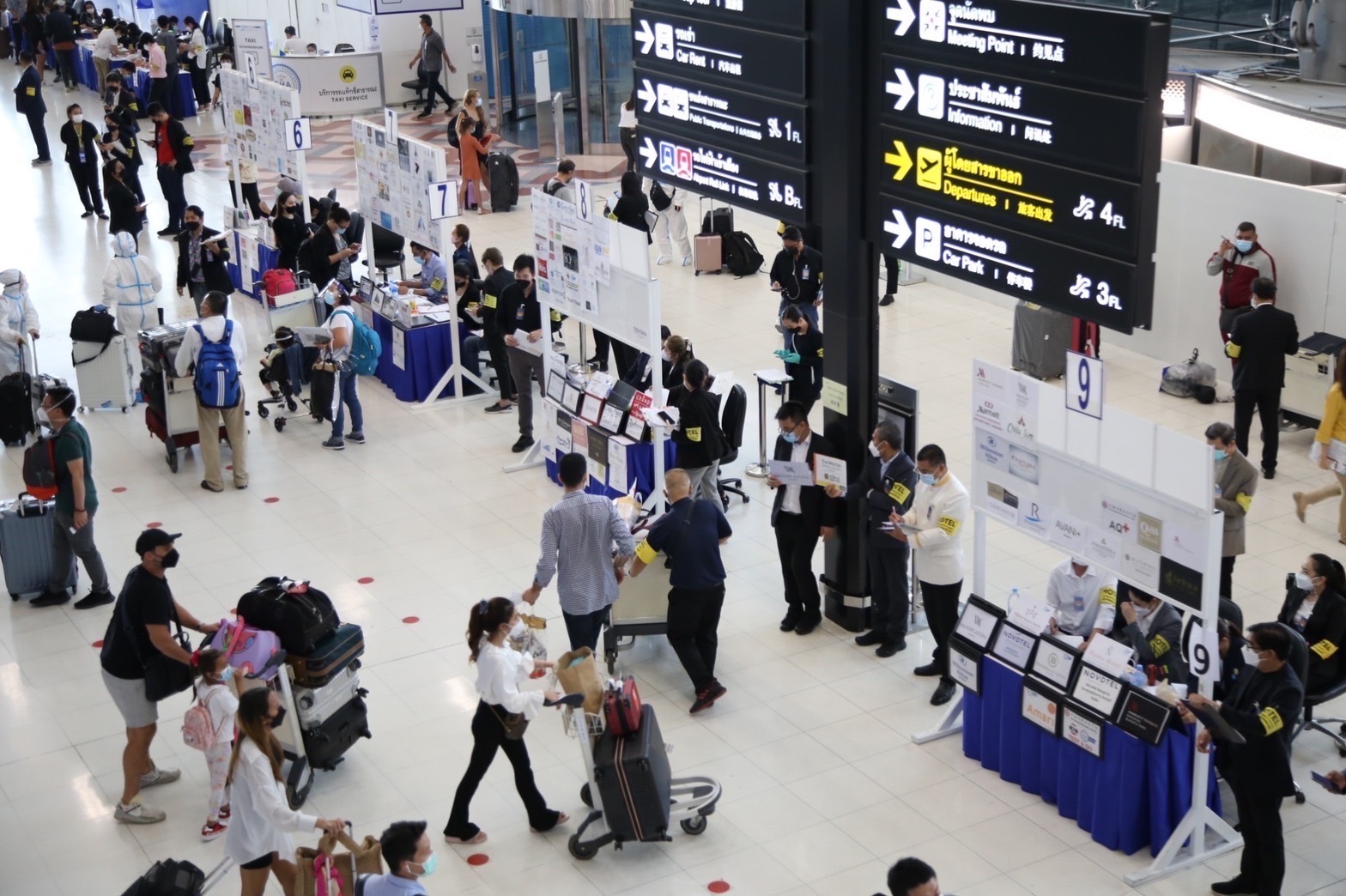 *****เพื่อเป็นการแก้ไขปัญหาดังกล่าว ทสภ.ได้ดำเนินการบูรณาการการให้บริการร่วมกับศูนย์ปฏิบัติการแก้ไขสถานการณ์ฉุกเฉินด้านความมั่นคงประจำท่าอากาศยาน (EOC) และทุกภาคส่วน ให้มีประสิทธิภาพสูงสุด โดยปรับการบริการให้สอดคล้องกับจำนวนผู้โดยสารที่เพิ่มขึ้นในแต่ละวัน ด้วยการขยายพื้นที่จัดตั้งเคาน์เตอร์บริเวณจุดนัดหมายระหว่างผู้โดยสารกับโรงแรมเพิ่มเติม จากเดิม 8 เคาน์เตอร์ เป็น 17 เคาน์เตอร์ พร้อมทั้งกำหนดให้ติดป้ายแสดงชื่อโรงแรมเรียงตามตัวอักษรเพื่อให้เกิดความชัดเจนในการเข้ารับบริการของผู้โดยสาร นอกจากนี้ ทสภ.ได้เพิ่มช่องทางออกจากห้องสายพานรับกระเป๋าขาเข้าจากจุดตรวจศุลกากรจากเดิม 1 ช่องทาง เป็น 2 ช่องทาง รวมถึงขอความร่วมมือโรงแรมเพิ่มจำนวนเจ้าหน้าที่และรถรับส่งผู้โดยสารที่จะต้องนำไปตรวจ RT-PCR และรอผลที่โรงแรม ให้มีจำนวนเพียงพอต่อจำนวนผู้โดยสารที่เพิ่มมากขึ้น พร้อมจัดเจ้าหน้าที่ ทสภ. และการท่องเที่ยวแห่งประเทศไทย เพื่อสนับสนุนและอำนวยควาสะดวกในการให้บริการผู้โดยสารให้เป็นไปอย่างมีประสิทธิภาพมากยิ่งขึ้น