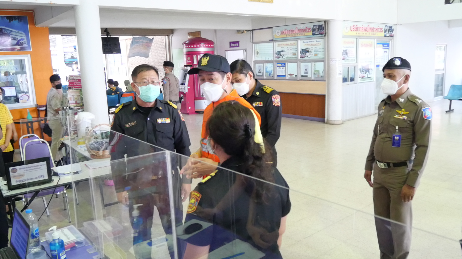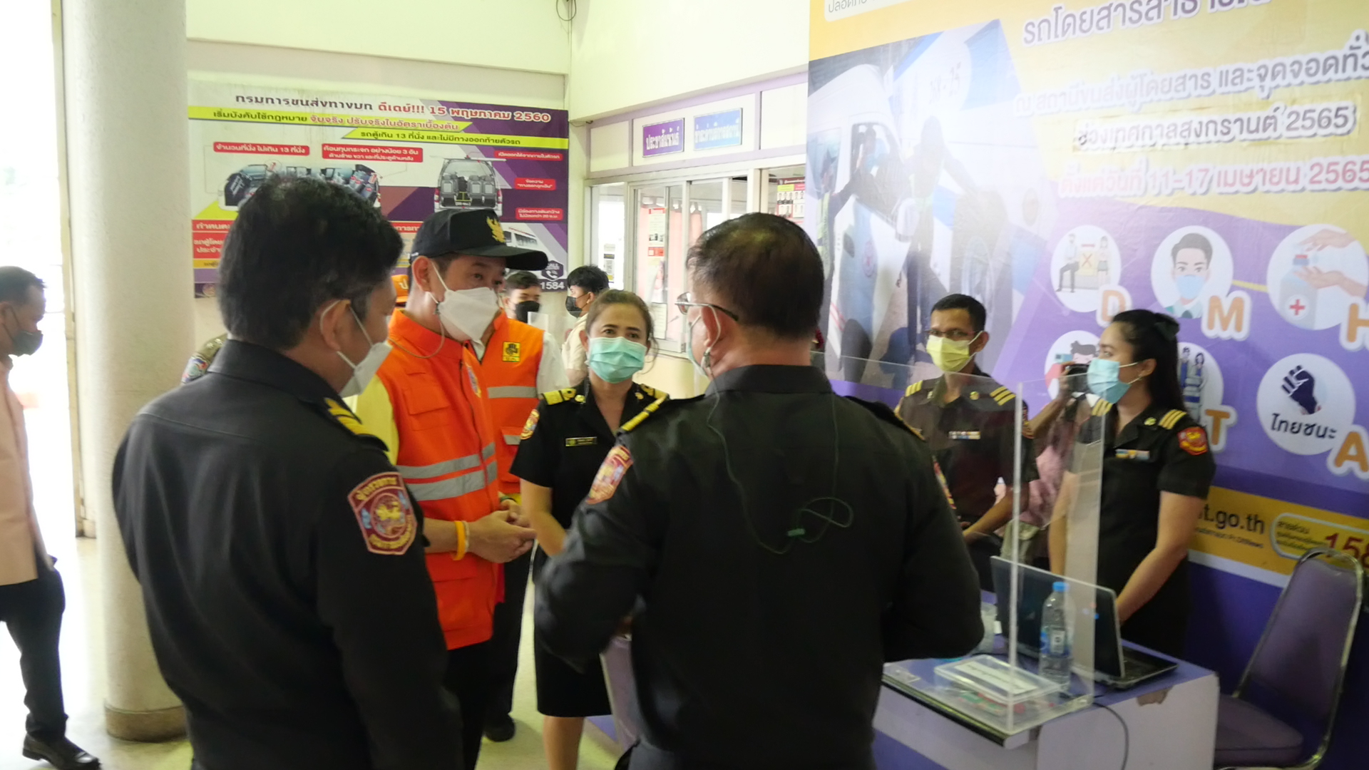 ที่สถานีขนส่งผ็โดยสารจังหวัดตรัง นายขจรศักดิ์ เจริญโสภา ผู้ว่าราชการจังหวัดตรัง พร้อมด้วยนายสัญชัย อ่อนแก้ว ขนส่งจังหวัดตรัง,นายเถลิงศักดิ์ ภูวญาณพงศ์ ห้วหน้าสำนักงานป้องกันและบรรเทาสาธารณภัยจังหวัดตรัง และเจ้าหน้าที่ ร่วมในการลงพื้นที่ตรวจความรพ้อมของสถานีขนส่งผู้โดยสารและความพร้อมของคนขับรถรวมถึงรถโดยสารต้องมีความพร้อมในการรองรับการเดินทาของประชาชน และพบปะประชาชนที่เดินทางกลับบ้านในช่วงเทศกาลสงกรานต์ มอบเจลแอลกอฮอล์ให้ประชาชน พร้อมเปิดสายด่วน 1584 ประชาชนสมารถโทรแจ้งพฤติกรรมของคนขับรถได้