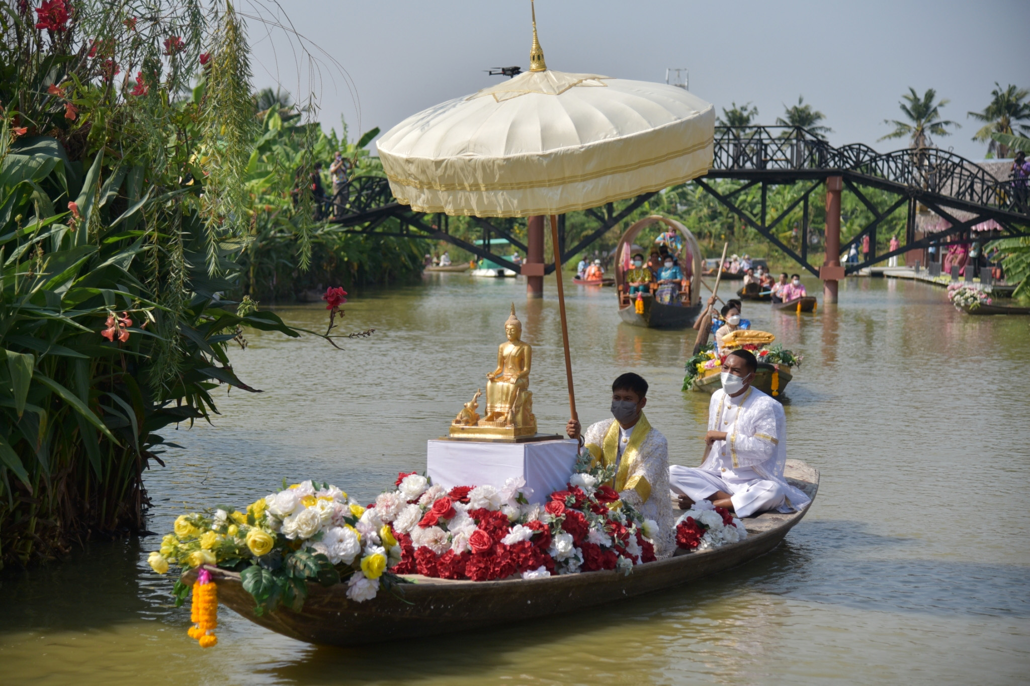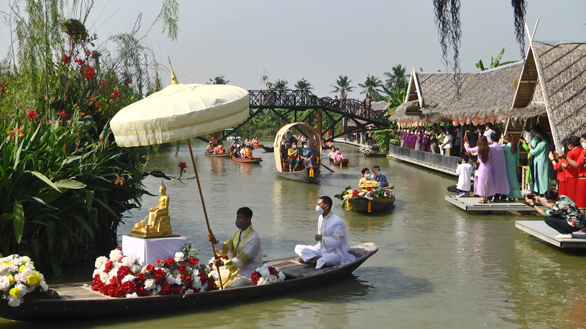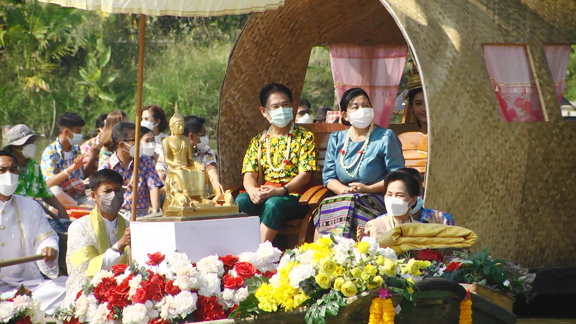 สุพรรณบุรี สืบสานประเพณีสรงน้ำและแห่หลวงพ่อโตทองคำทางเรือโบราณ
