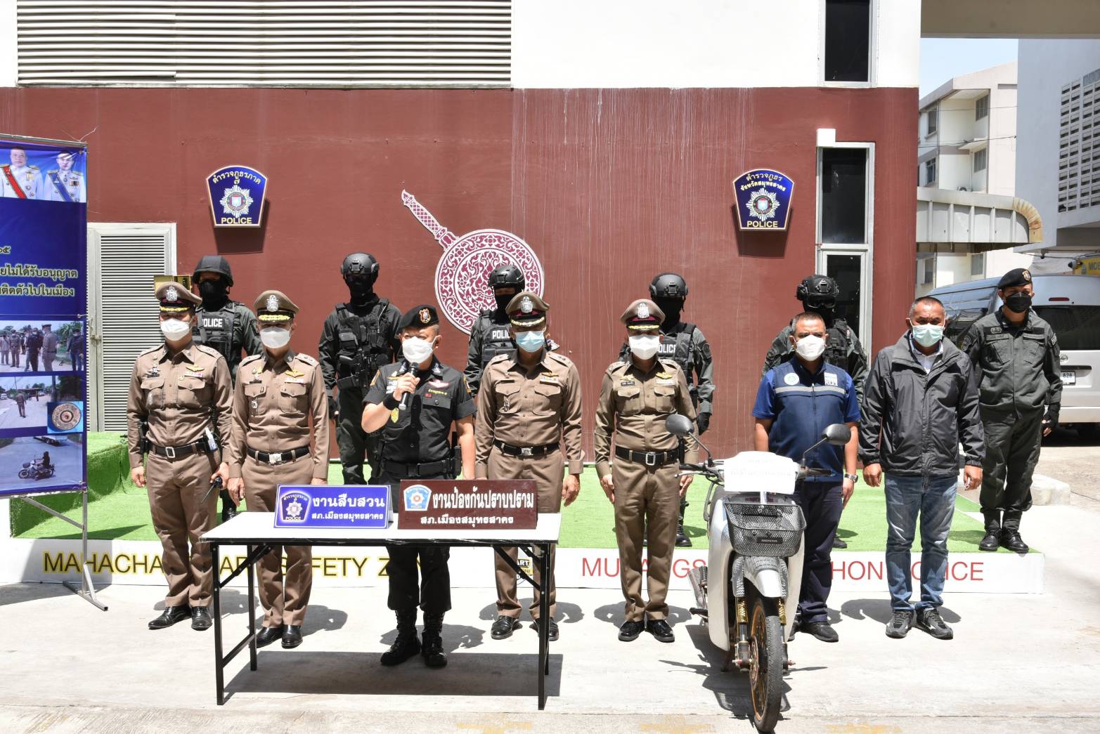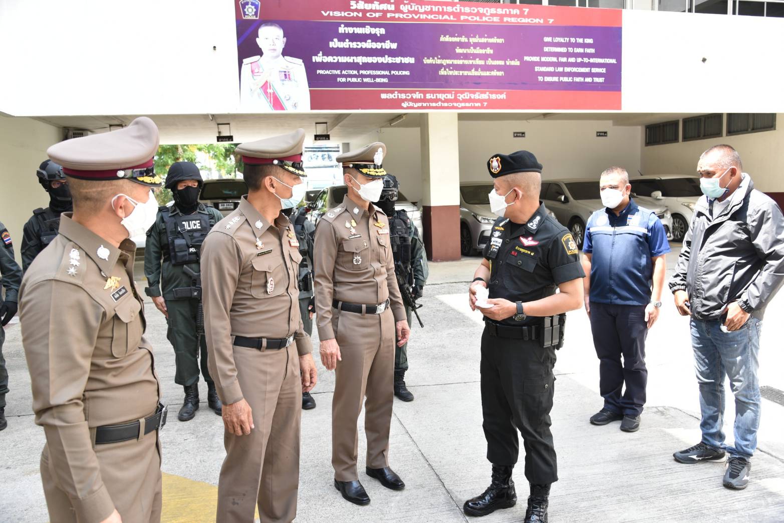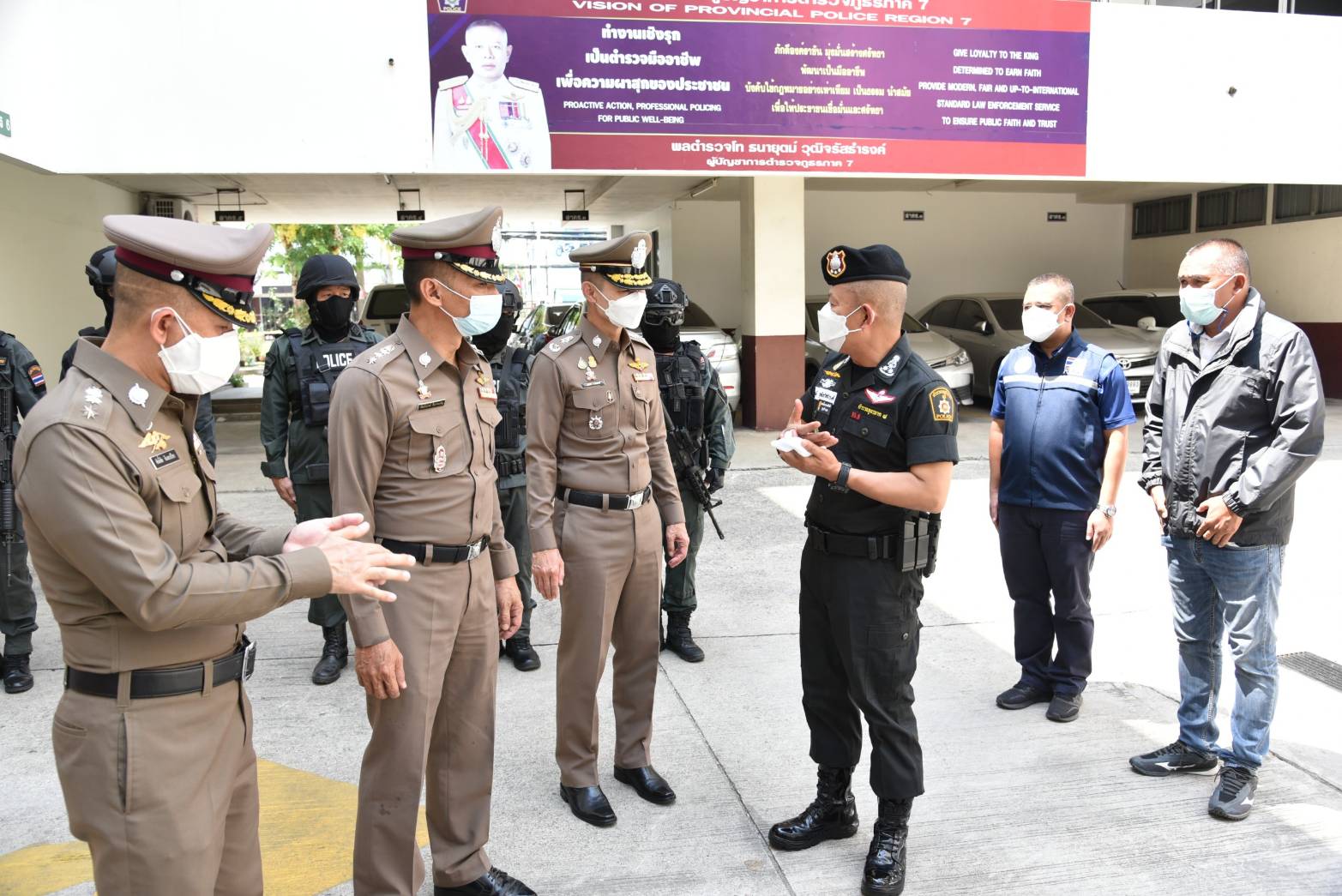 พล.ต.ท.ธนายุตม์ วุฒิจรัสธำรงค์ ผบช.ภ.7พร้อมด้วยพล.ต.ต.อภิชาติ วรรณภักดิ์ ผบก.ภ.จว.สมุทรสาคร พ.ต.อ.พัฒน์ปกรณ์ ชั้นประเสริฐ รอง ผบก.ภ.จว.สมุทรสาคร พ.ต.อ.ศักดิ์ชัย อินทรปรีชารอง ผบก.ภ.จว.สมุทรสาคร พ.ต.อ.ธนากร วงศ์สิริลักษณ์ ผกก.สภ.เมืองสมุทรสาคร