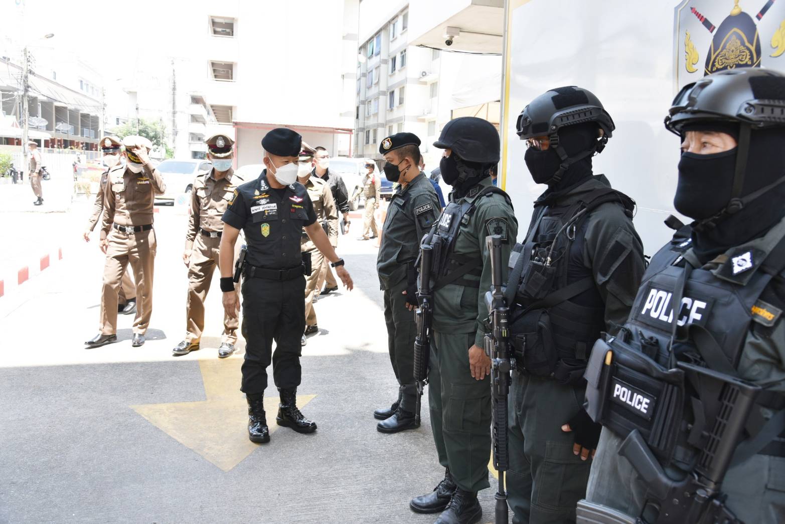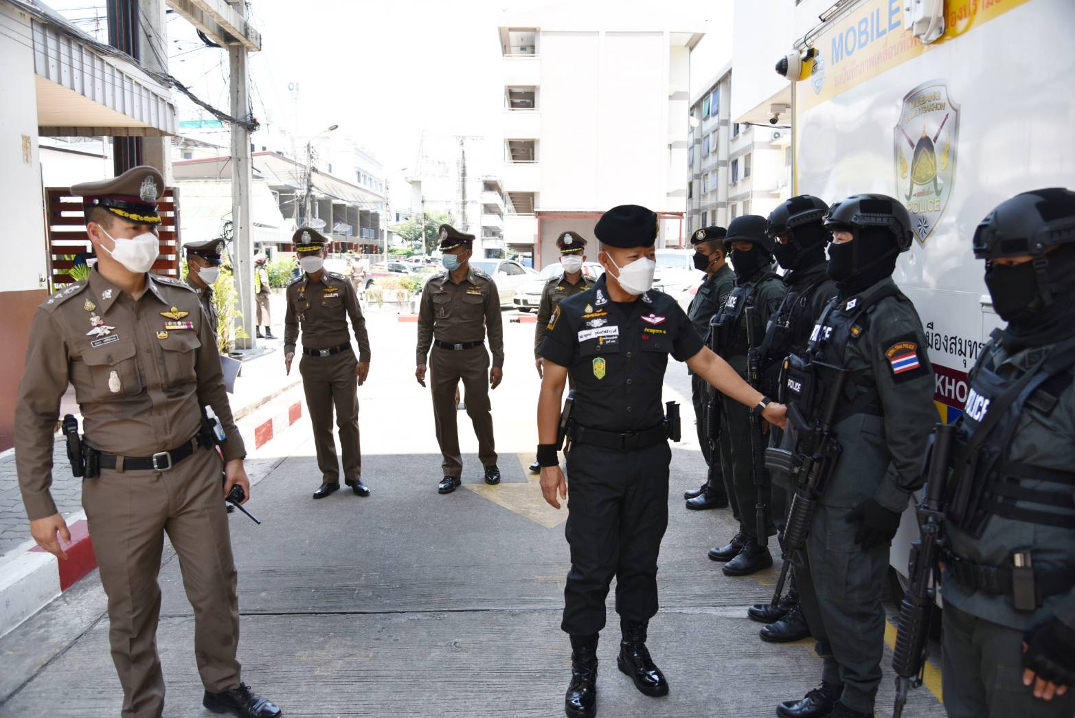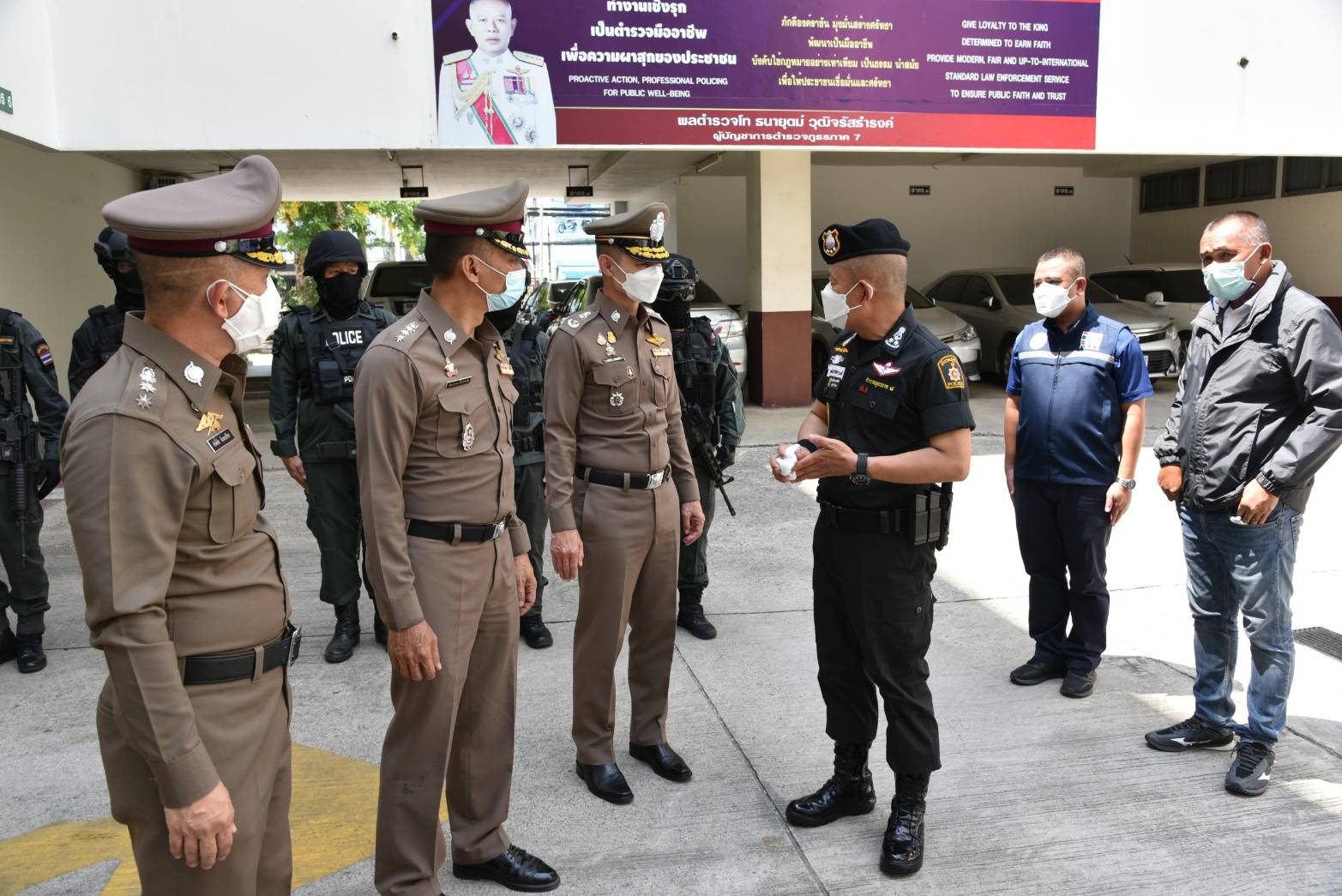 พล.ต.ท.ธนายุตม์ วุฒิจรัสธำรงค์ ผบช.ภ.7พร้อมด้วยพล.ต.ต.อภิชาติ วรรณภักดิ์ ผบก.ภ.จว.สมุทรสาคร พ.ต.อ.พัฒน์ปกรณ์ ชั้นประเสริฐ รอง ผบก.ภ.จว.สมุทรสาคร พ.ต.อ.ศักดิ์ชัย อินทรปรีชารอง ผบก.ภ.จว.สมุทรสาคร พ.ต.อ.ธนากร วงศ์สิริลักษณ์ ผกก.สภ.เมืองสมุทรสาคร