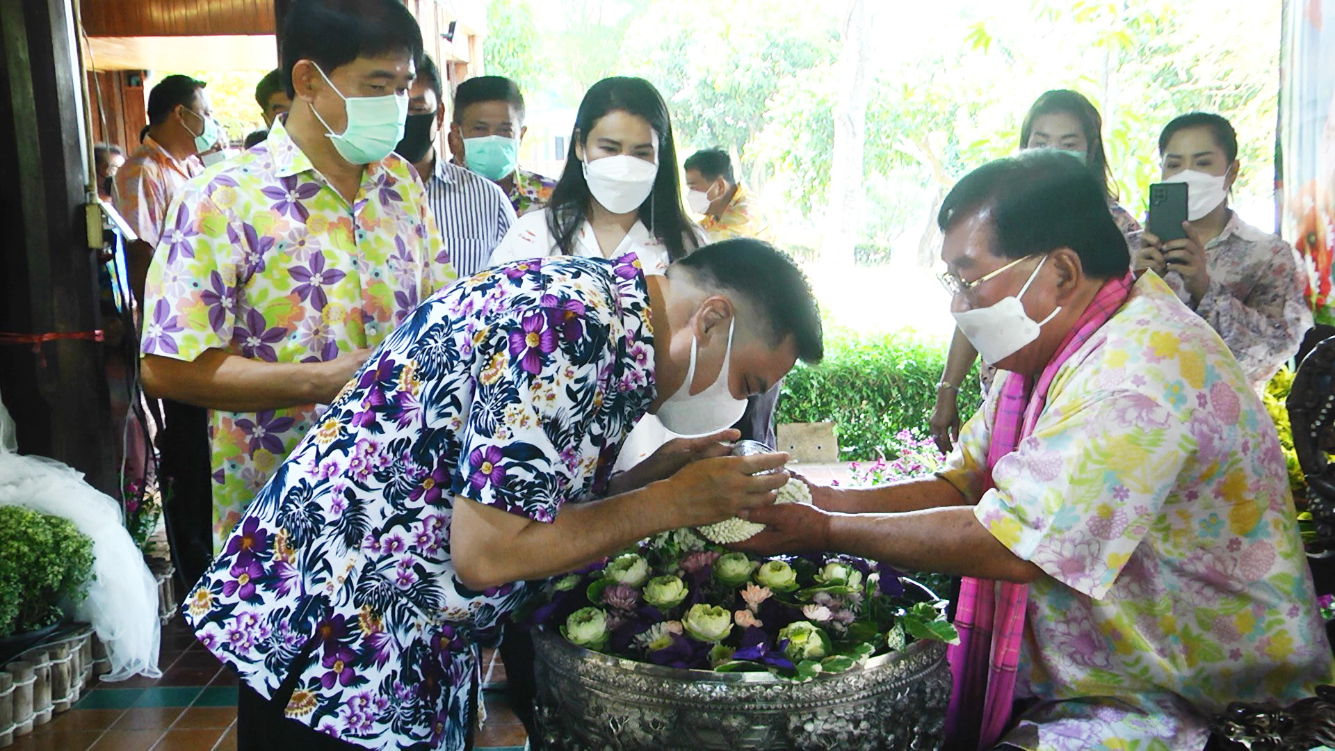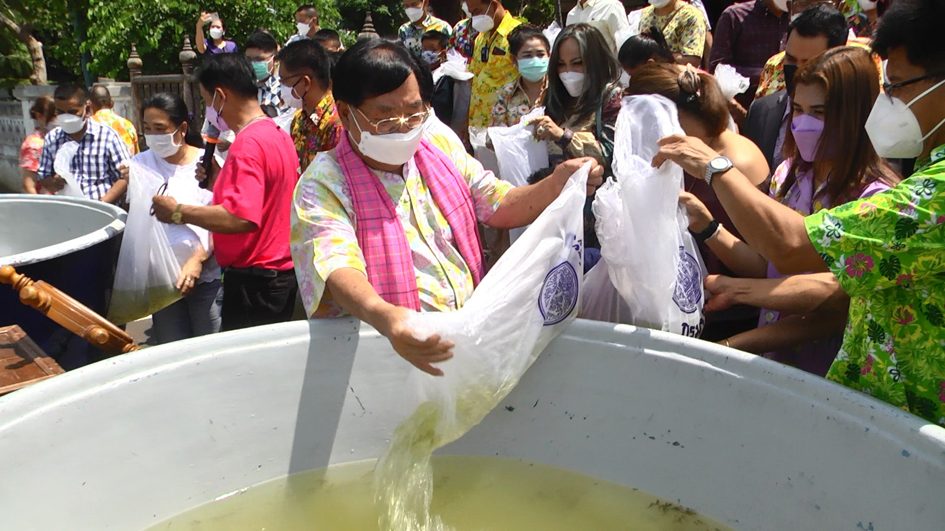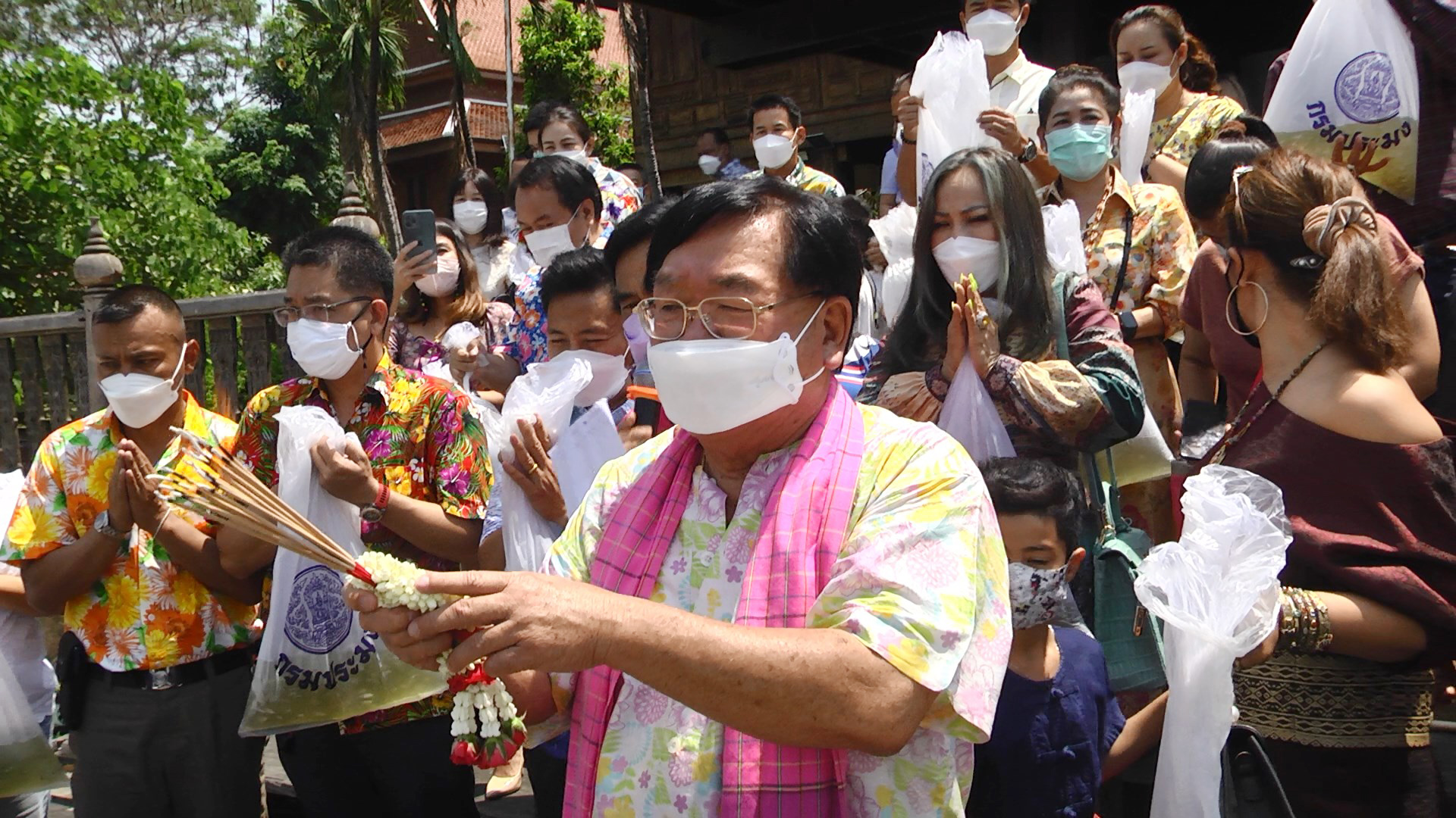 ที่บ้านเรือนไทย อ.ศรีประจันต์ นายวราวุธ ศิลปอาชา รมว.ทรัพยากรธรรมชาติและสิ่งแวดล้อม นายสรชัด สุจิตต์ สส.พรรคชาติไทยพัฒนา นายณัฐภัทร สุวรรณประทีป ผู้ว่าราชการจังหวัดสุพรรณบุรี นายนพฤทธิ์ ศิริโกศล นายชูชีพ พงษ์ไชย รองผู้ว่าราชการจังหวัดสุพรรณบุรี หัวหน้าส่วนราชการ นักการเมืองท้องถิ่น และประชาชนเข้ารดน้ำขอพร นายประภัตร โพธสุธน รมช.เกษตรและสหกรณ์ บรรยากาศเป็นไปอย่างคึกคักภายใต้มาตรการป้องกันการแพร่ระบาดของเชื้อไวรัสโควิด 19 โดยมีเจ้าหน้าที่สาธารณสุข และ อสม.ตั้งจุดคัดกรองวัดอุณหภูมิ ล้างมือด้วยเจลแอลกอฮอล์ฆ่าเชื้อก่อนเข้าไปงาน