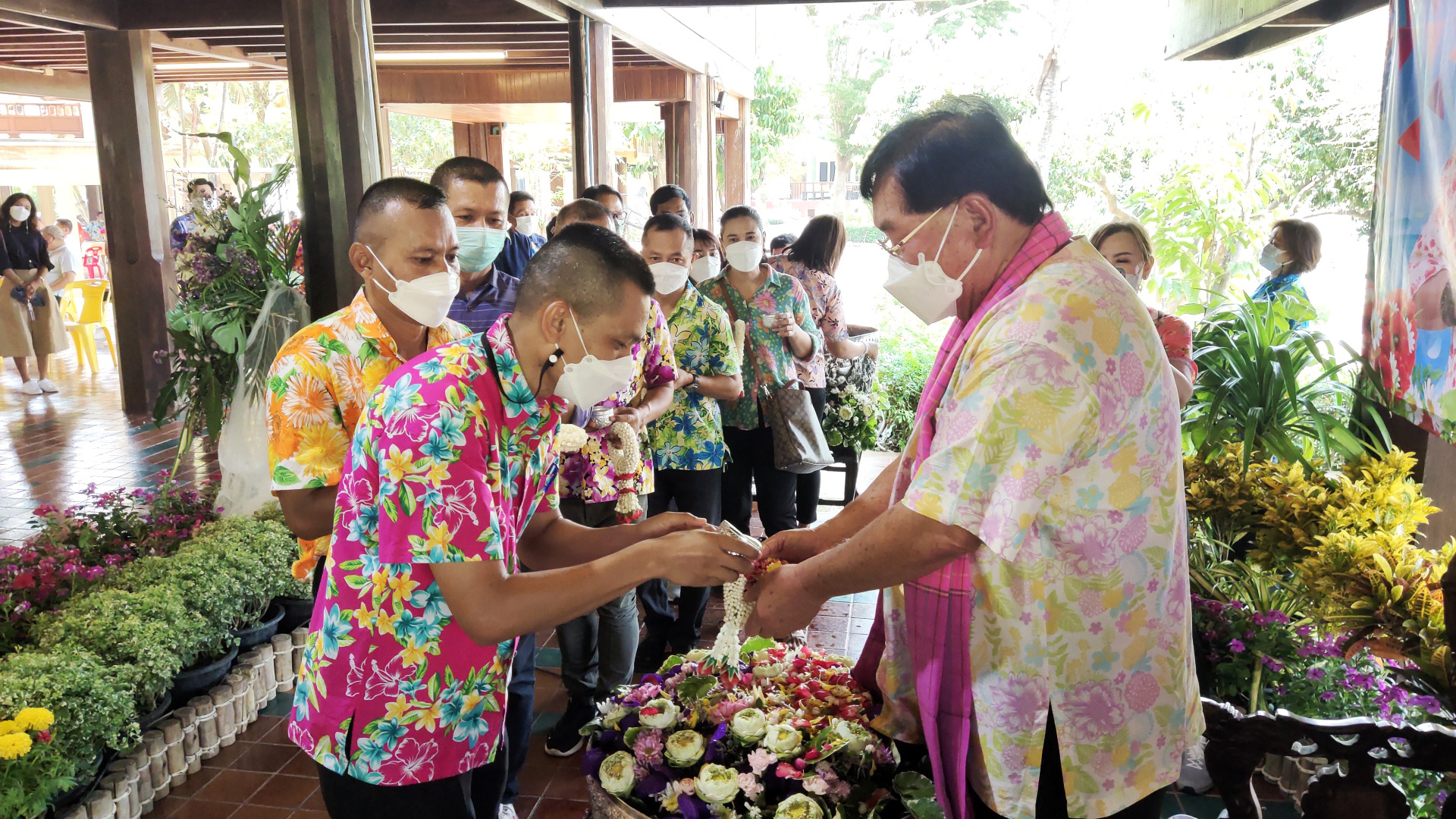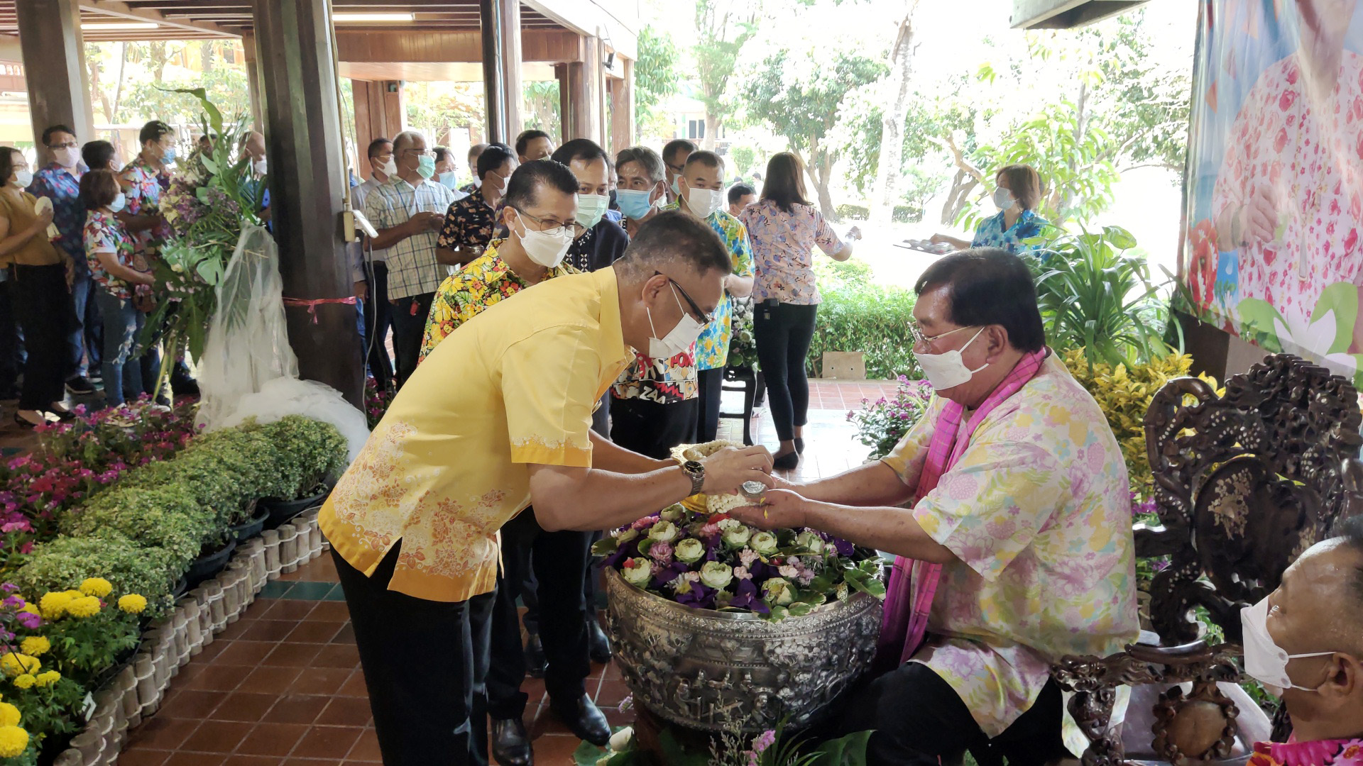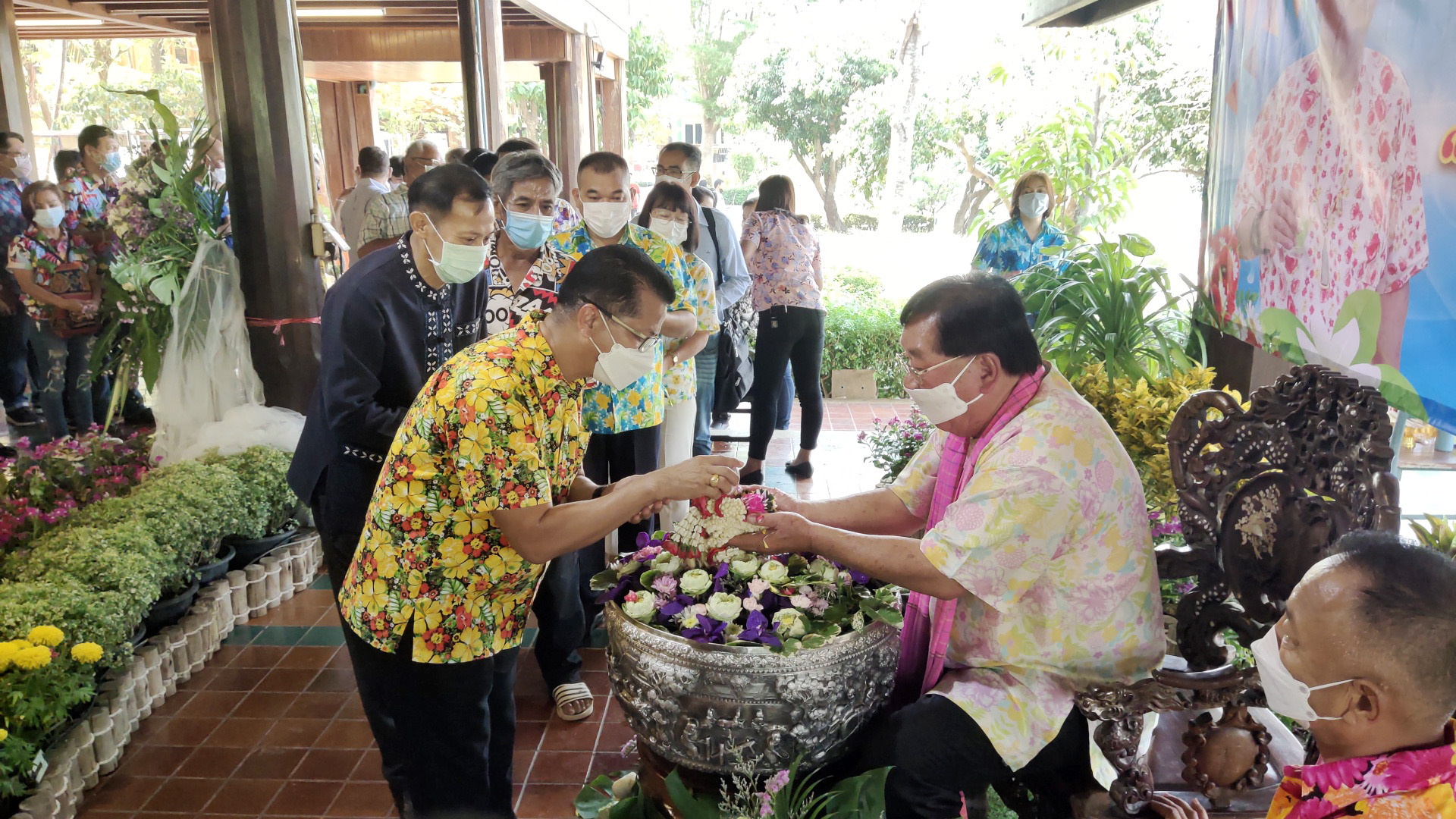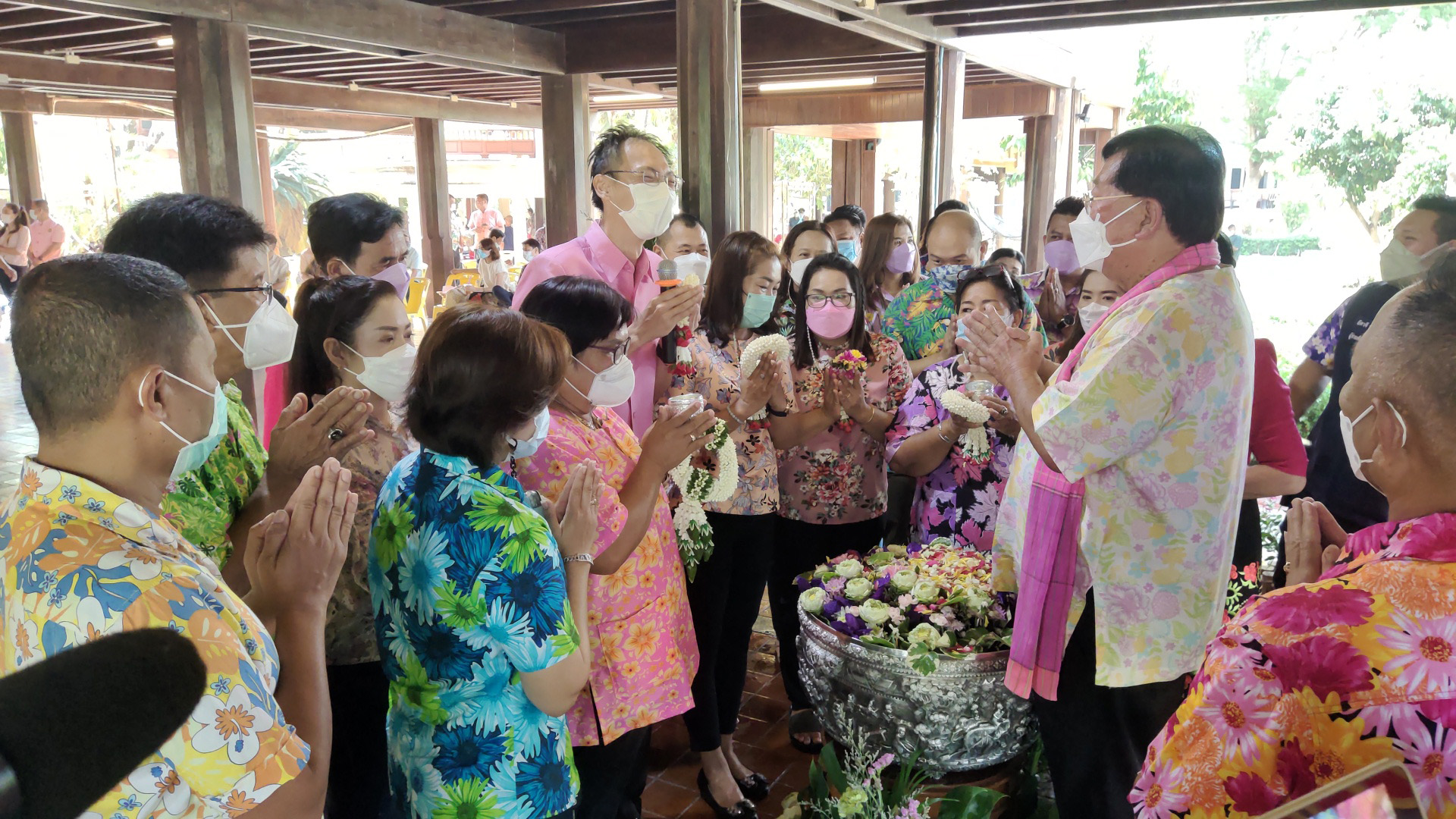 ที่บ้านเรือนไทย อ.ศรีประจันต์ นายวราวุธ ศิลปอาชา รมว.ทรัพยากรธรรมชาติและสิ่งแวดล้อม นายสรชัด สุจิตต์ สส.พรรคชาติไทยพัฒนา นายณัฐภัทร สุวรรณประทีป ผู้ว่าราชการจังหวัดสุพรรณบุรี นายนพฤทธิ์ ศิริโกศล นายชูชีพ พงษ์ไชย รองผู้ว่าราชการจังหวัดสุพรรณบุรี หัวหน้าส่วนราชการ นักการเมืองท้องถิ่น และประชาชนเข้ารดน้ำขอพร นายประภัตร โพธสุธน รมช.เกษตรและสหกรณ์ บรรยากาศเป็นไปอย่างคึกคักภายใต้มาตรการป้องกันการแพร่ระบาดของเชื้อไวรัสโควิด 19 โดยมีเจ้าหน้าที่สาธารณสุข และ อสม.ตั้งจุดคัดกรองวัดอุณหภูมิ ล้างมือด้วยเจลแอลกอฮอล์ฆ่าเชื้อก่อนเข้าไปงาน