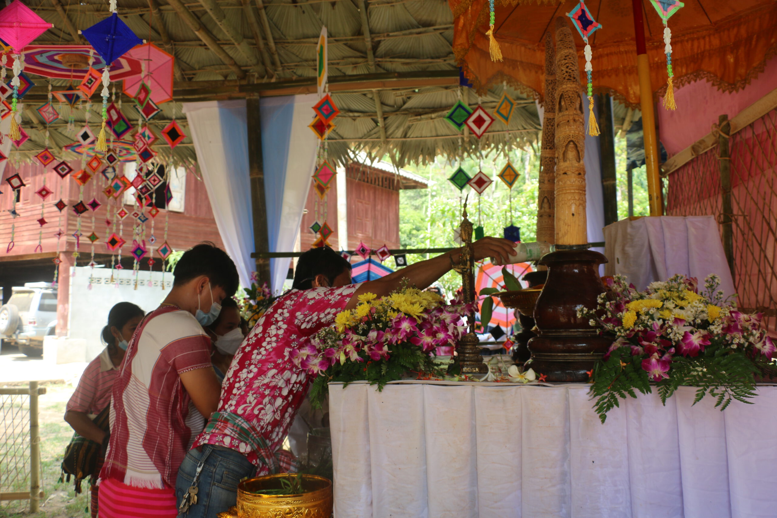 กาญจนบุรี กะเหรี่ยงบ้านสะเนพ่องสรงน้ำพระแก้วขาว พระพุทธรัตนสังขละบุรีงานประเพณีสงกรานต์ชาวไทยเชื้อสายกะเหรี่ยงบ้านสะเนพ่อง