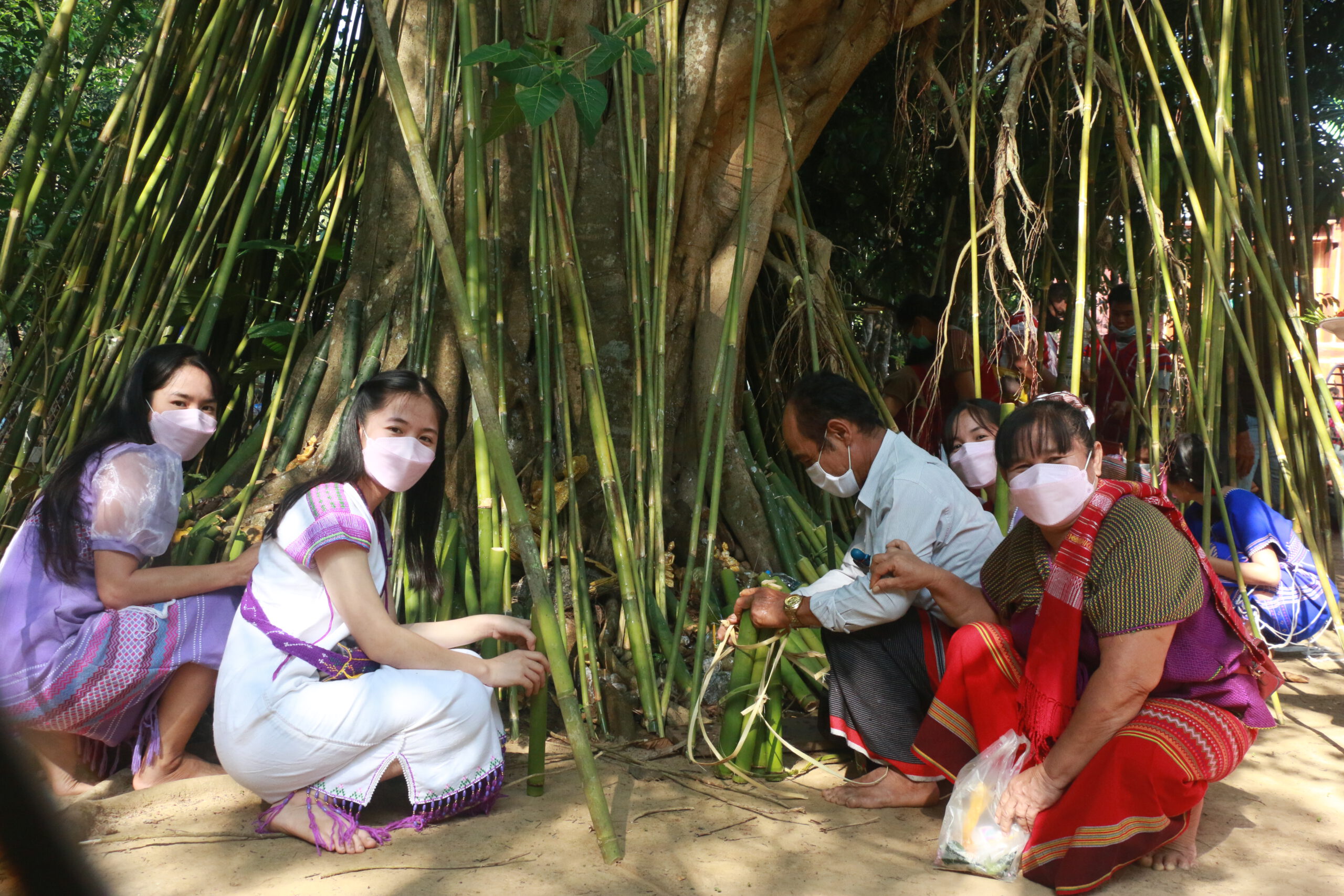 โดยพิธีการในวันนี้จะเริ่มตั้งแต่ช่วงเช้า ด้วยการรับศีล ฟังธรรมจากพระภิกษุสงฆ์ ก่อนจะรวมกันตักบาตรข้าวสุกใต้ต้นโพธิ์ พร้อมทั้งทำพิธีขอขมาต้นโพธิ์และนำไม้ไผ่ที่เตรียมมาทำพิธีค้ำต้นโพธิ์ ซึ่งถือเป็นตัวแทนของพระพุทธเจ้า หลังจากนั้นไปรวมตัวกันที่บริเวณสะพานที่สร้างขึ้น เพื่อร่วมกันทำพิธีทำความสะอาดสะพานและขอขมาสะพาน ด้วยนำขมิ้นส้มป่อย และร่วมกันปล่อยปลาในแม่น้ำ ซึ่งทั้ง 3 กิจกรรมเป็นสิ่งสำคัญ ที่ต้องกระทำในเทศกาลสงกานต์ของที่นี่