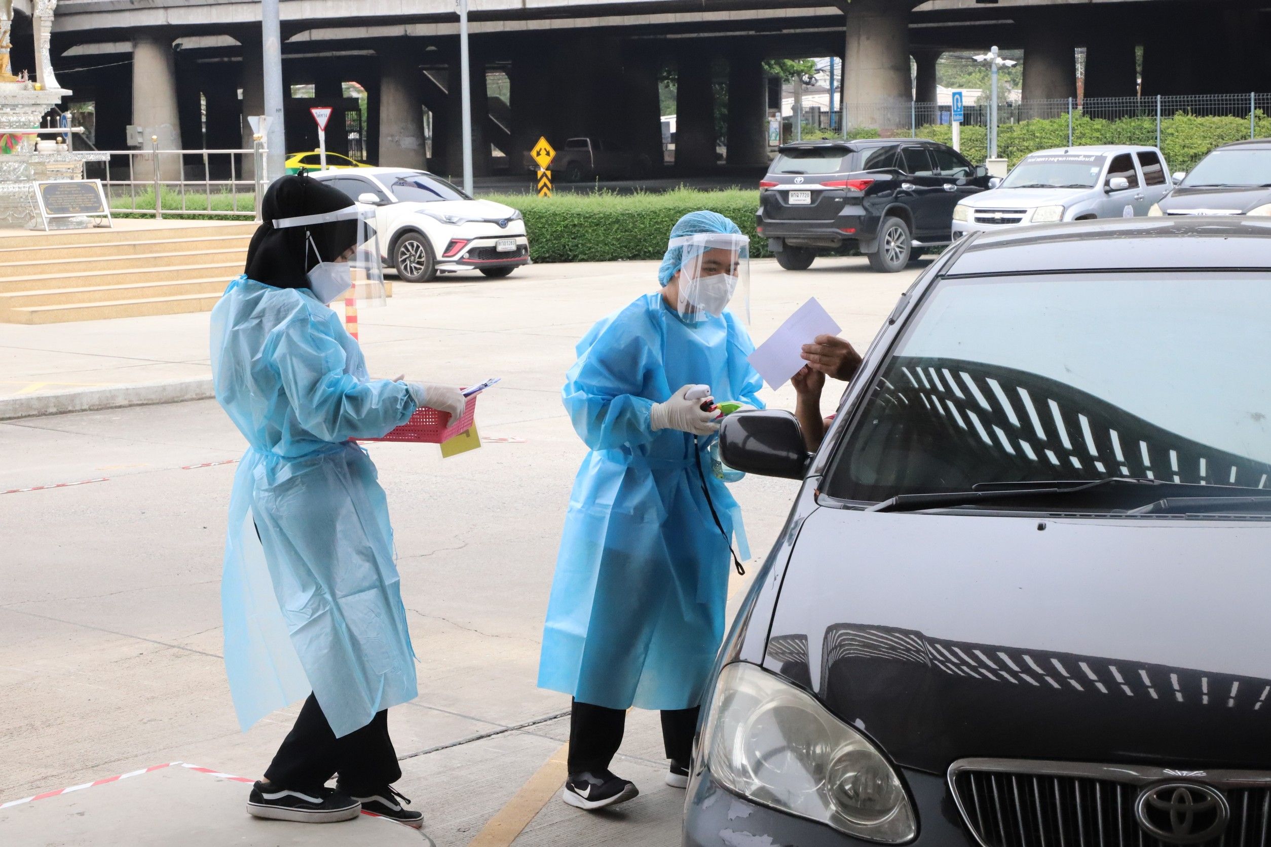 นายณรงค์ศักดิ์โอสถธนากร ผู้ว่าราชการจังหวัดปทุมธานี จึงได้วางแผนจัดตั้ง”โครงการ Drive Thru. เจอ แจก จบ เพื่อชาวประชุม” ณ สถานีรถตู้โดยสาร Rangsit Hub. อ.ธัญบุรี จ.ปทุมธานี ขึ้น ซึ่งในโครงการนี้ที่ผู้ป่วยต้องขับรถเข้ามารับบริการด้วยตนเองโดยการนำผลตรวจATK. ที่ผลเป็นบวก(สองขีด) และบัตรประจำตัวประชาชนฉบับจริงมาแสดงเพื่อให้เจ้าหน้าที่ได้ประเมินสุขภาพ และตรวจเพิ่มเติม(ในบางกรณี)เมื่อเจ้าหน้าที่แพทย์/พยาบาลตรวจวิเคราะห์และประเมินแล้วจะจ่ายยาให้ตามอาการของผู้ป่วยรวมทั้งออกใบรับรองแพทย์และให้คำแนะนำในการปฎิบัติตัวเมื่ออยู่ในสถานที่กักตัวเองที่บ้านว่าต้องทำอย่างไรบ้างโดยโครงการนี้ได้เริ่มทดลองเพื่อตรวจสอบระบบและปรับปรุง ตั้งแต่วันที่ 7 ถึง 12 เมษายน ที่ผ่านมา และได้รับความสนใจมีผู้มาใช้บริการประมาณโดยเฉลี่ยวันละ 100-180 คน รวมจำนวนช่วงทดสอบ ระบบมีผู้มารับบริการประมาณ 821 คน. สำหรับโครงการ Drive Thru. จะเปิดอย่างเป็นทางการตั้งแต่วันที่ 18 เมษายน2565 เป็นต้นไปเปิดให้บริการทุกวันในเวลา 10:00 น. -18.00 น. จำนวน 6 ช่องบริการ ทุกวัน
