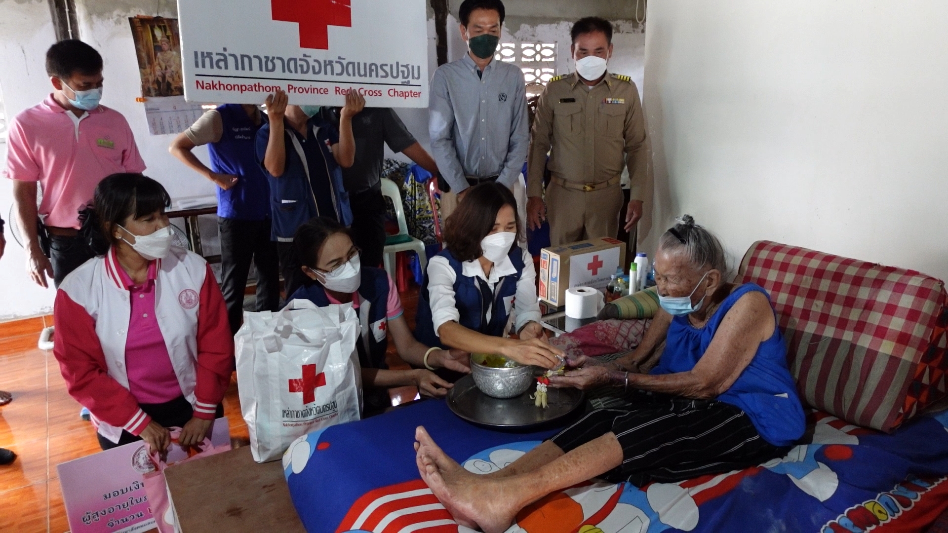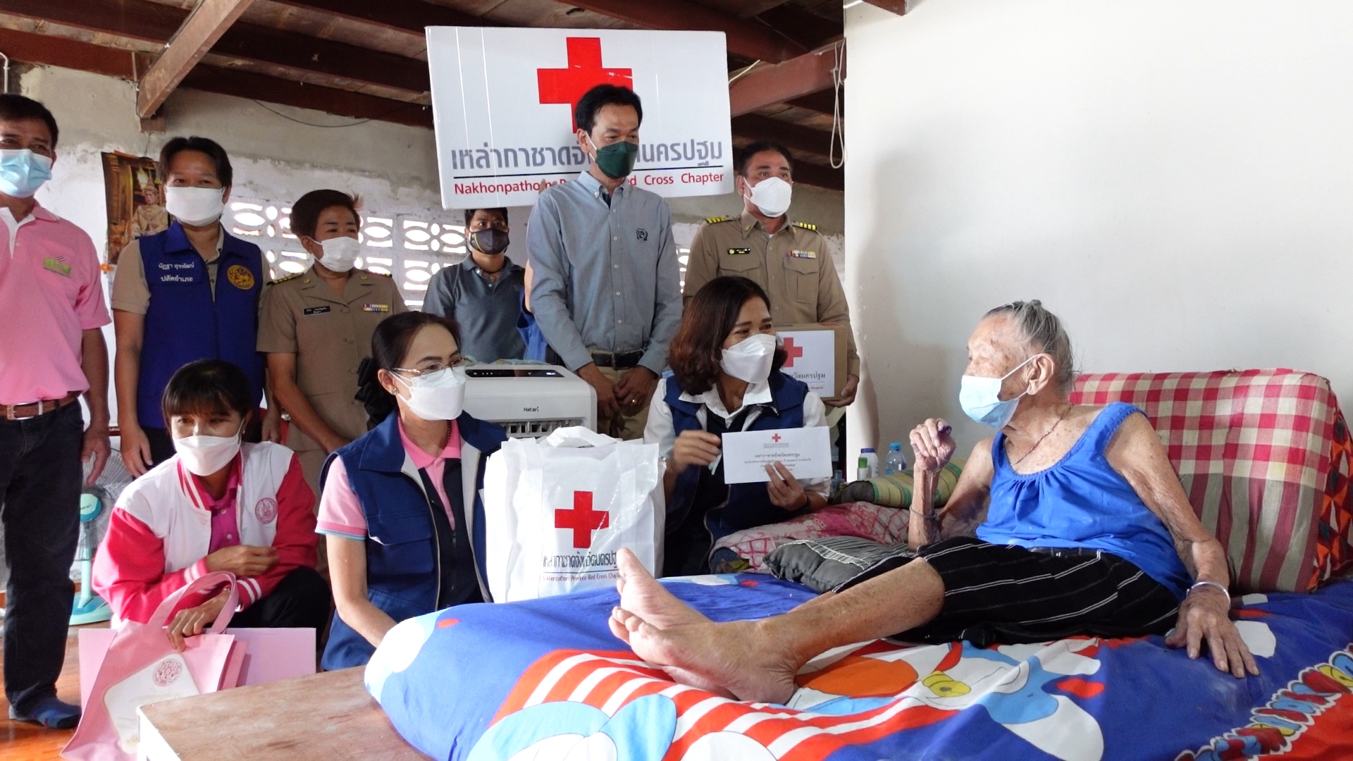 ในการลงพื้นที่ครั้งนี้ สำนักงานเหล่ากาชาดจังหวัดนครปฐม ร่วมกับ สำนักงานพัฒนาสังคมและความมั่นคงของมนุษย์ ออกเยี่ยมผู้สูงอายุที่มีอายุ 100 ปี ขึ้นไป ตามโครงการ ผู้สูงอายุ 100 ปี ประจำปีงบประมาณ 2565 ในพื้นที่ อำเภอดอนตูม และอำเภอนครชัยศรี เพื่อเป็นขวัญกำลังใจกับผู้สูงอายุ โดยคณะเหล่ากาชาดได้มอบข้าวสารอาหารแห้ง เครื่องอุปโภคบริโภค พร้อมเงินสนับสนุนเพื่อใช้ในการดำรงชีพ