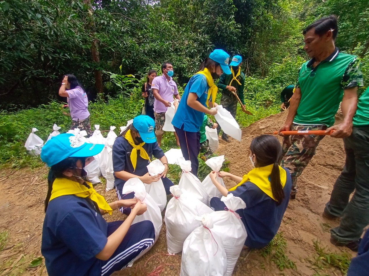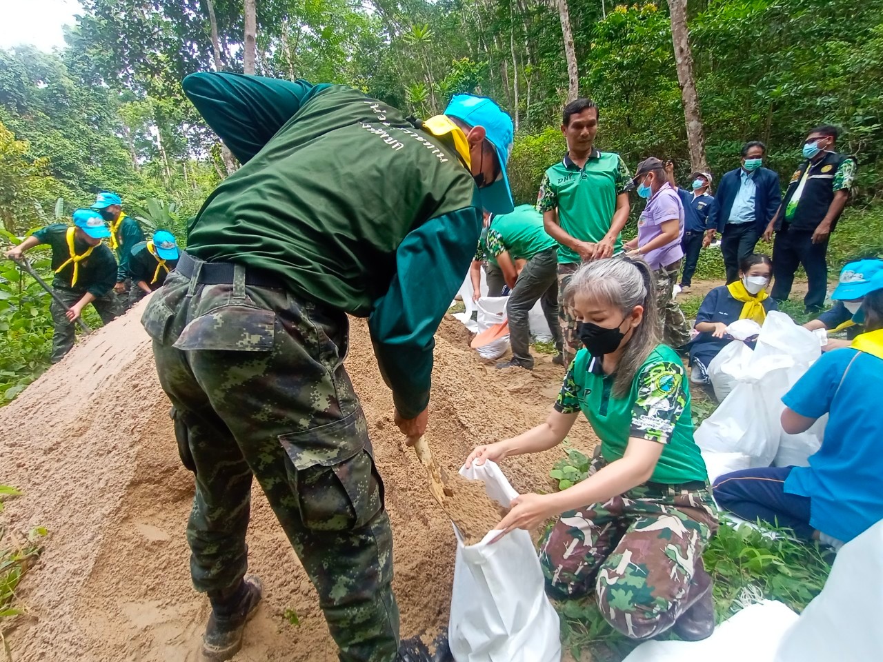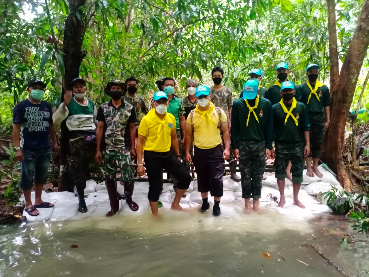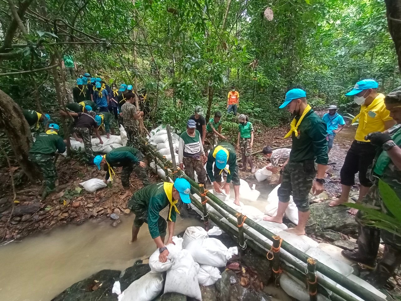 จิตอาสาพระราชทานกองพันทหารราบที่ 4 กรมทหารราบที่ 15 ค่ายพระยารัษฎานุประดิษฐ์ อำเภอห้วยยอด จังหวัดตรัง ร่วมกับ เจ้าหน้าที่ ผู้นำท้องถิ่น นักเรียน พร้อมใจกันสร้างฝายกักเก็บน้ำเฉลิมพระเกียรติสมเด็จพระนางเจ้าสิริกิติ์ พระบรมราชินีนาถ พระบรมราชชนนีพันปีหลวง