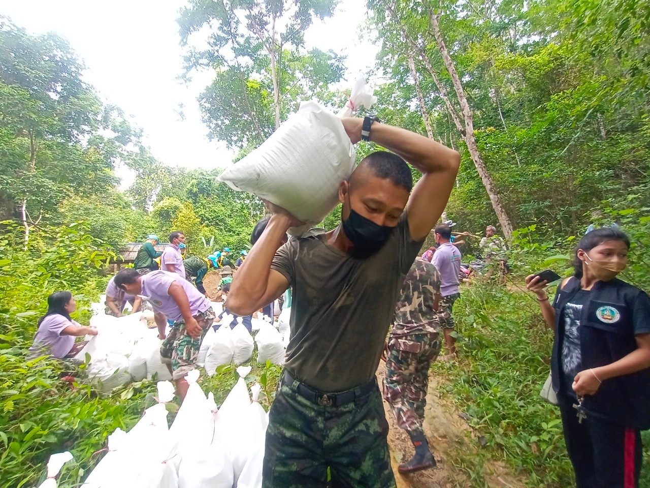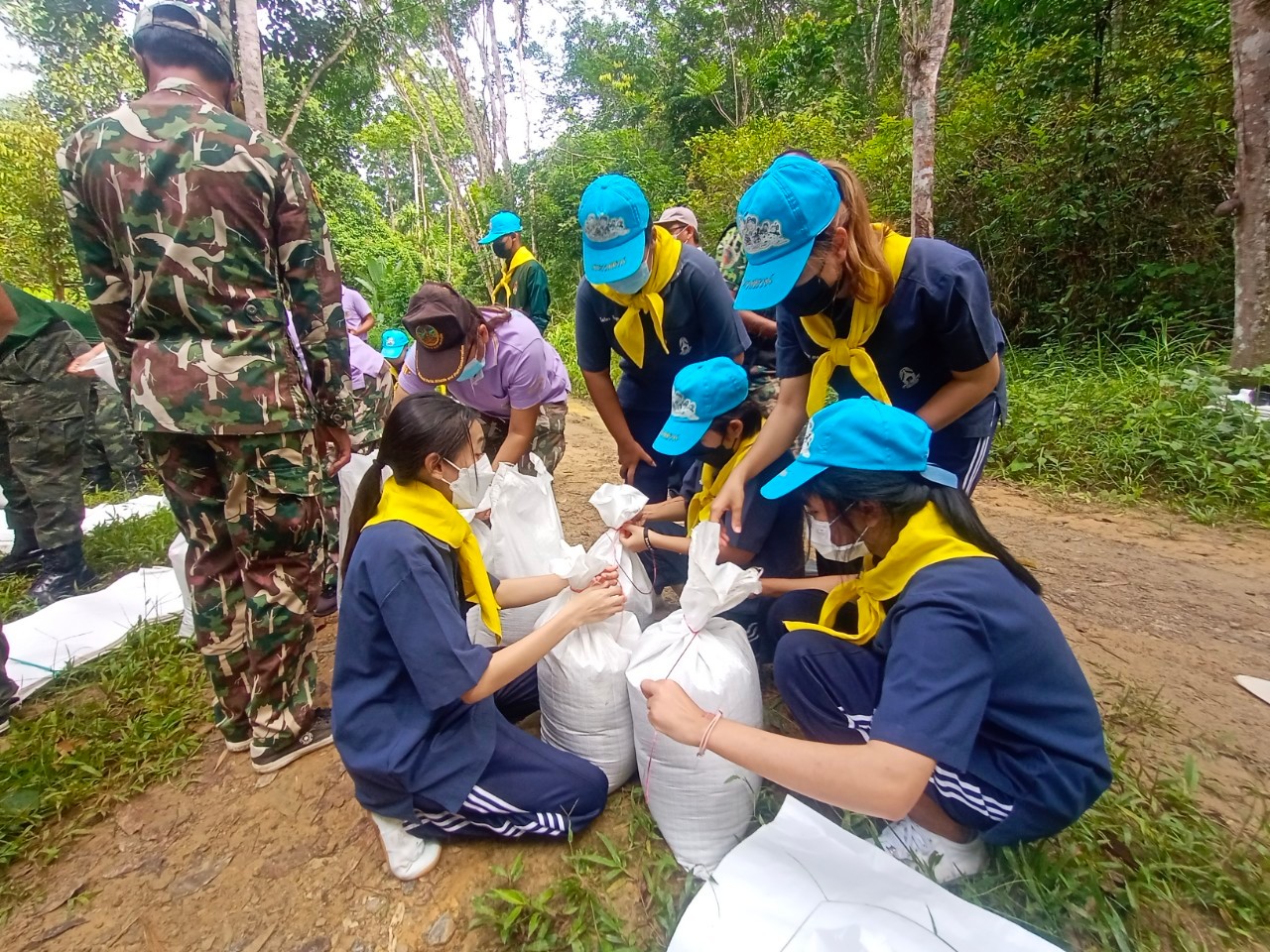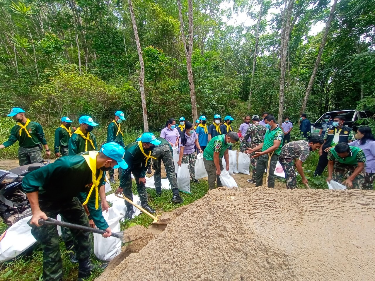 จิตอาสาพระราชทานกองพันทหารราบที่ 4 กรมทหารราบที่ 15 ค่ายพระยารัษฎานุประดิษฐ์ อำเภอห้วยยอด จังหวัดตรัง ร่วมกับ เจ้าหน้าที่ ผู้นำท้องถิ่น นักเรียน พร้อมใจกันสร้างฝายกักเก็บน้ำเฉลิมพระเกียรติสมเด็จพระนางเจ้าสิริกิติ์ พระบรมราชินีนาถ พระบรมราชชนนีพันปีหลวง