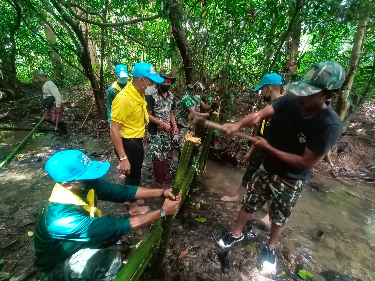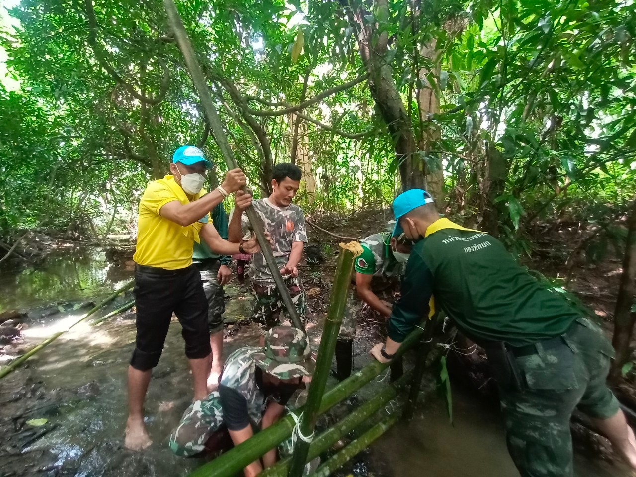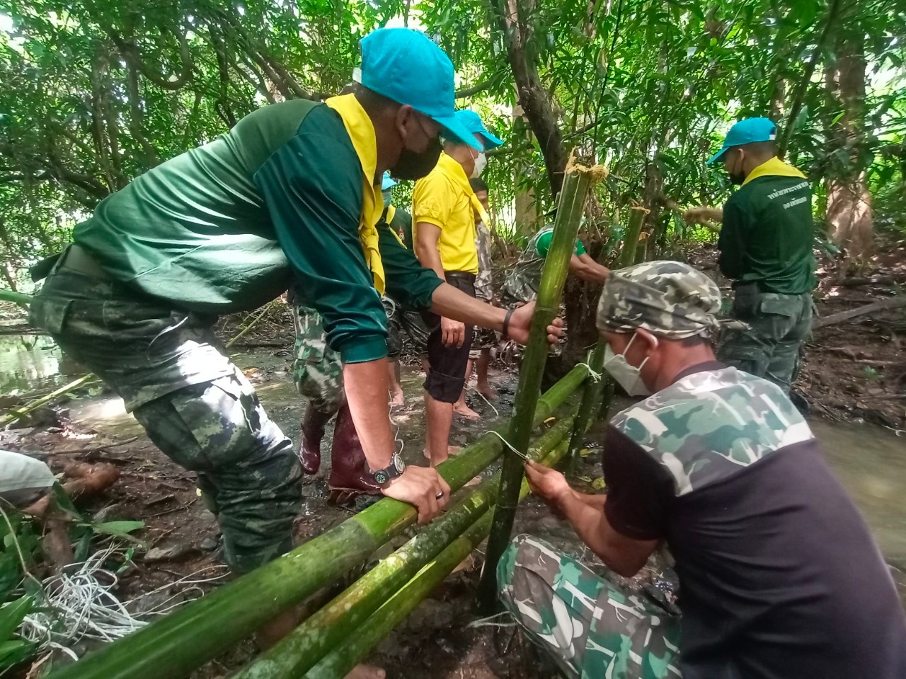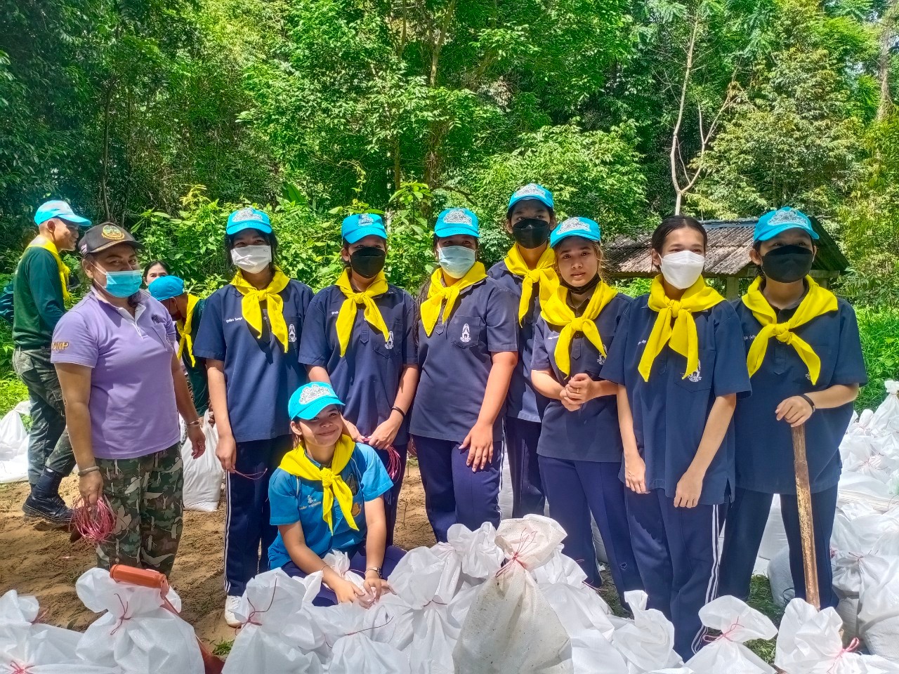 จิตอาสาพระราชทานกองพันทหารราบที่ 4 กรมทหารราบที่ 15 ค่ายพระยารัษฎานุประดิษฐ์ อำเภอห้วยยอด จังหวัดตรัง ร่วมกับ เจ้าหน้าที่ ผู้นำท้องถิ่น นักเรียน พร้อมใจกันสร้างฝายกักเก็บน้ำเฉลิมพระเกียรติสมเด็จพระนางเจ้าสิริกิติ์ พระบรมราชินีนาถ พระบรมราชชนนีพันปีหลวง