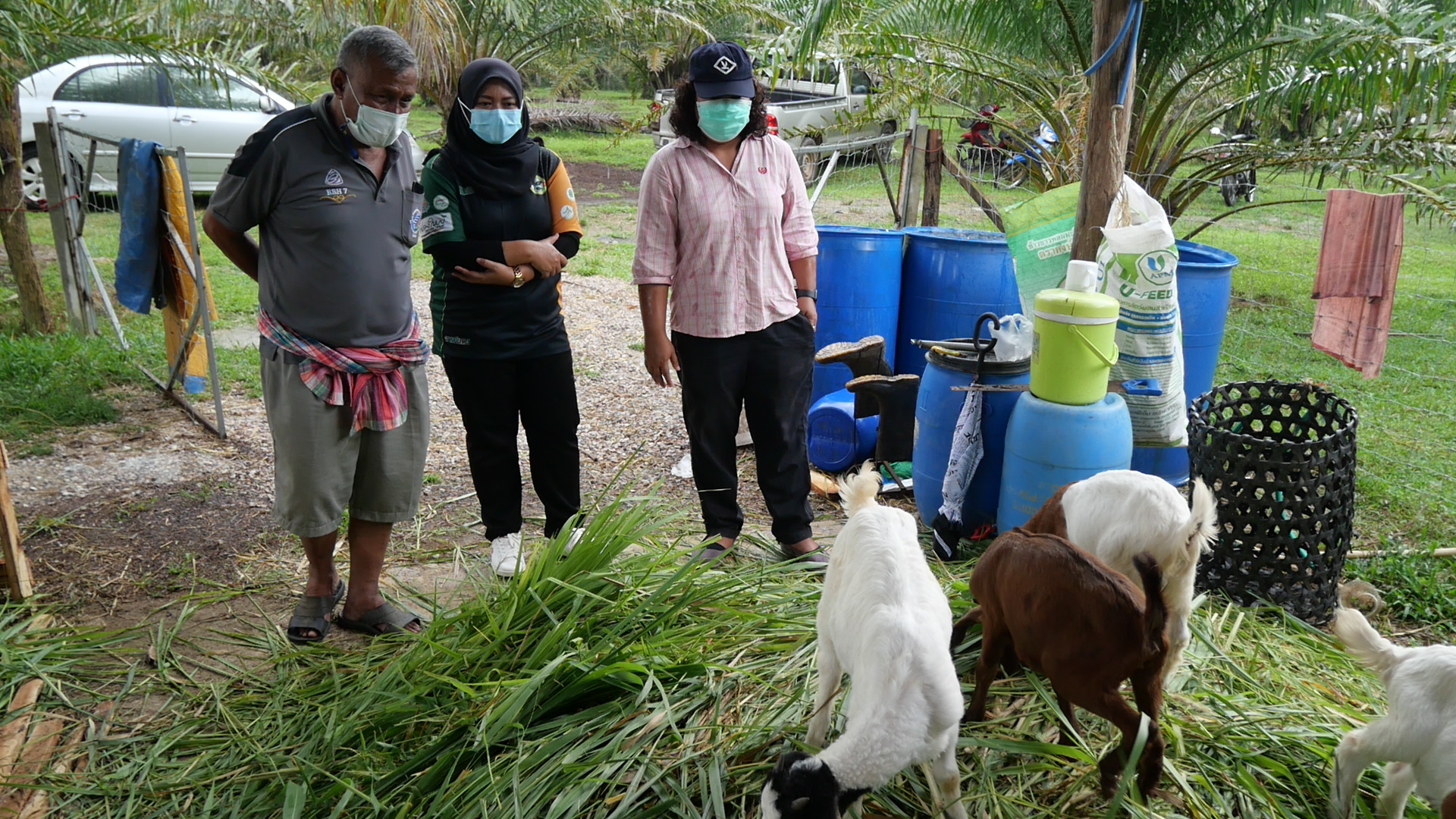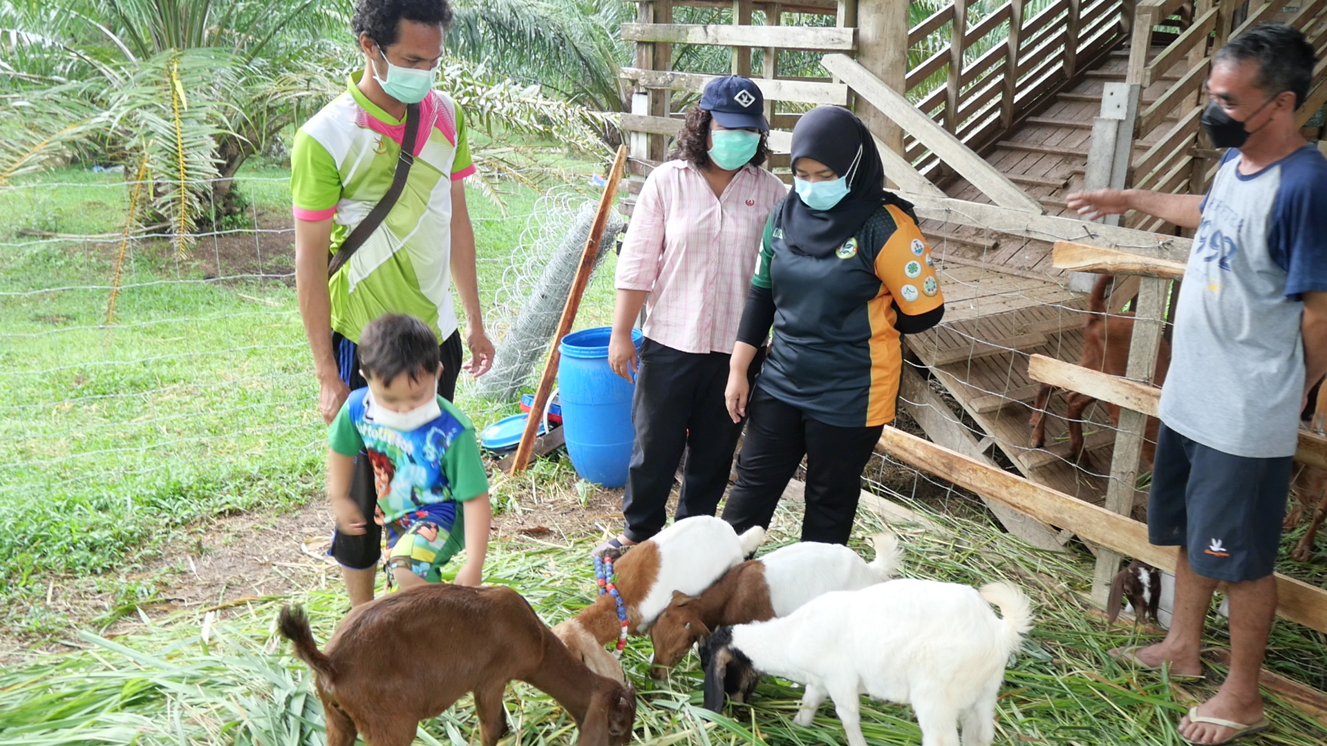 ที่สวนปาล์มน้ำมันหมู่ที่ 3 ตำบลแหลมสอม อำเภอปะเหลียน จังหวัดตรัง นายสมัย ชื่นแก้ว อยู่บ้านเลขที่ 73 หมู่ที่ 3 ตำบลแหลมสอม อำเภอปะเหลียน จังหวัดตรัง เกษตรกรปลูกปาล์มน้ำมันและเลี้ยงวัวในสวนปาล์มน้ำมันเป็นอาชีพเสริม แต่จากการแพร่ระบาดของวิด -19 นั้นส่งผลกระทบต่ออาชีพเกษตรกรเป็นอย่างมาก ถึงแม้ว่าช่วงนี้ปาล์มน้ำมันจะมีราคาดีก็ตาม ต้นทุนการใส่ปุ๋ยก็เพิ่มตามมาด้วย แต่เพื่อความไม่ประมาทได้เลี้ยงวัวเนื้อภายในสวนปาล์มน้ำมัน และในขณะนี้ได้เลี้ยงแพะเพิ่มอีกในการสร้างรายได้ให้กับครอบครัว