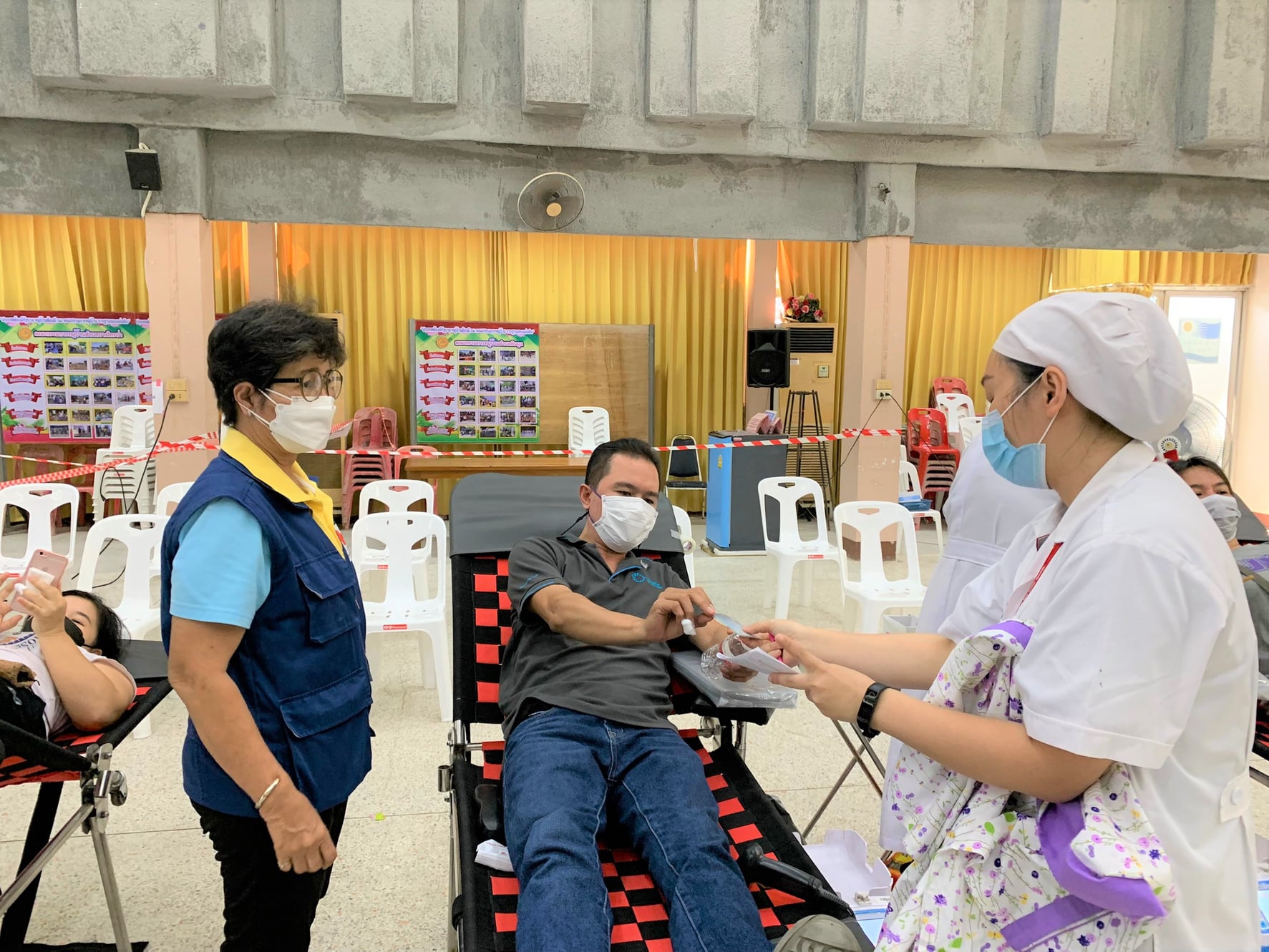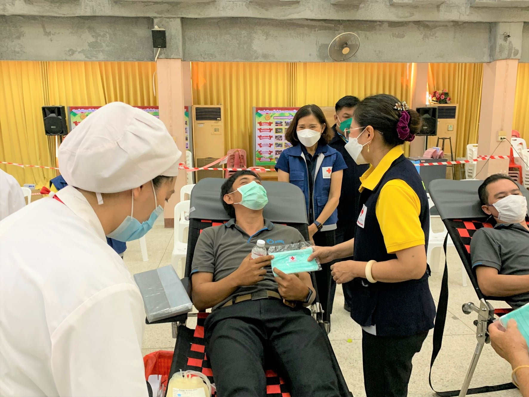 เพื่อช่วยเหลือเพื่อนมนุษย์ พร้อมทั้งมอบหน้ากากอนามัยให้กับผู้ที่มาบริจาคโลหิต ทั้งนี้ ขอขอบคุณ นางศศิพิมล แก้วทวีทรัพย์ สมาชิกกิ่งกาชาดอำเภอบางเลน ที่นำเค้กกล้วยหอม มามอบให้แก่ผู้ที่มาบริจาคโลหิต ณ หอประชุมที่ว่าการอำเภอบางเลน จังหวัดนครปฐม ซึ่งมีผู้ร่วมบริจาคโลหิต จำนวน 70 ยูนิต