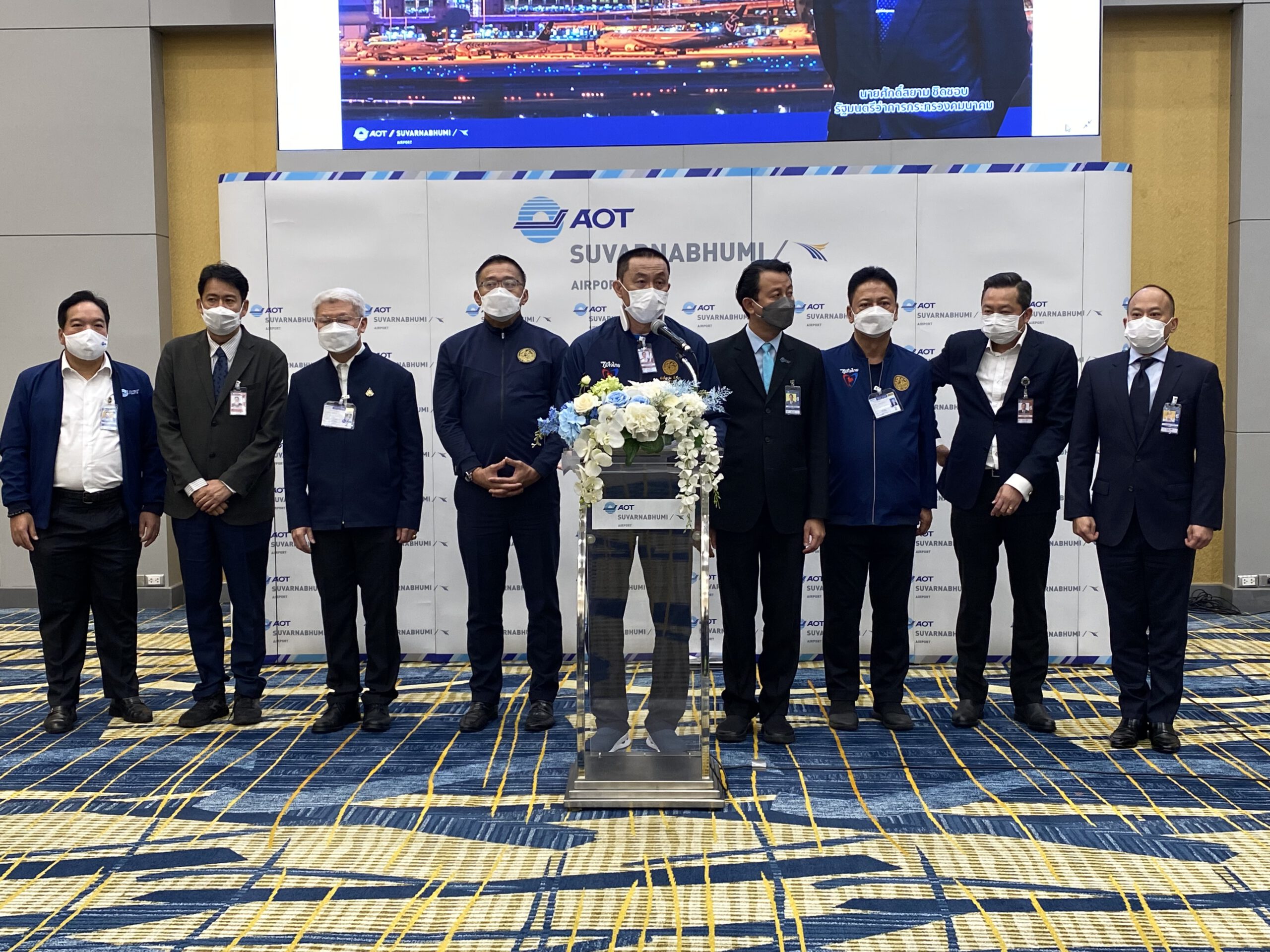 *****นอกจากนี้ รวค. ได้เป็นประธานในที่ประชุมออนไลน์ (Video Conference) เพื่อรับฟังการบรรยาย สรุปความพร้อมในการดำเนินงานของแต่ละท่าอากาศยานภายใต้การกำกับดูแลของ ทอท. อีก 5 แห่ง ประกอบด้วย ท่าอากาศยานดอนเมือง ท่าอากาศยานเชียงใหม่ ท่าอากาศยานแม่ฟ้าหลวง เชียงราย ท่าอากาศยานภูเก็ต และท่าอากาศยานหาดใหญ่ จากนั้น ได้มีการแถลงข่าวผลการตรวจเยี่ยมการเตรียมความพร้อมของ ทสภ.และ ท่าอากาศยานภายใต้การกำกับดูแลของ ทอท. ณ บริเวณ ห้องจัดเลี้ยง 1 อาคารสำนักงานท่าอากาศยานสุวรรณภูมิ เพื่อเป็นการตอบรับนโยบายการเปิดประเทศ ทสภ. ได้บูรณาการร่วมกับทุกหน่วยงานที่ปฏิบัติงาน ณ ทสภ. ในการซักซ้อมความเข้าใจเกี่ยวกับขั้นตอนการคัดกรองผู้โดยสารตามข้อกำหนดใหม่ เพื่อให้การบริการแต่ละขั้นตอนตั้งแต่วันที่ 1 พฤษภาคม 2565 เป็นต้นไป เป็นไปอย่างราบรื่นและมีประสิทธิภาพ โดยแบ่งผู้โดยสารที่เดินทางเข้าประเทศไทยเป็น 2 กลุ่ม คือ ผู้โดยสารที่ได้รับวัคซีนครบตามเกณฑ์และผู้โดยสารที่ไม่ได้รับวัคซีนแต่มีผลตรวจ RT-PCR ไม่เกิน 72 ชั่วโมง สามารถเข้าประเทศได้ตามกระบวนการผู้โดยสารขาเข้าระหว่างประเทศตามขั้นตอนปกติ และผู้โดยสารที่ไม่ได้รับวัคซีน / รับวัคซีนไม่ครบ และไม่มีผลตรวจ RT-PCR เมื่อลงจากอากาศยานเรียบร้อยแล้ว ต้องเข้าสู่ ขั้นตอนการเข้าประเทศตามระบบ Seal Route ซึ่ง ทสภ.กำหนดให้ผ่านพิธีการศุลกากรที่ช่องทางออก C (Exit C) เท่านั้น เพื่อมาพบกับตัวแทนโรงแรม AQ ที่บริเวณประตูทางออกหมายเลข 10 และขึ้นรถโดยสารที่ทางโรงแรมจัดเตรียมไว้เพื่อเข้าสู่กระบวนการกักตัวต่อไป