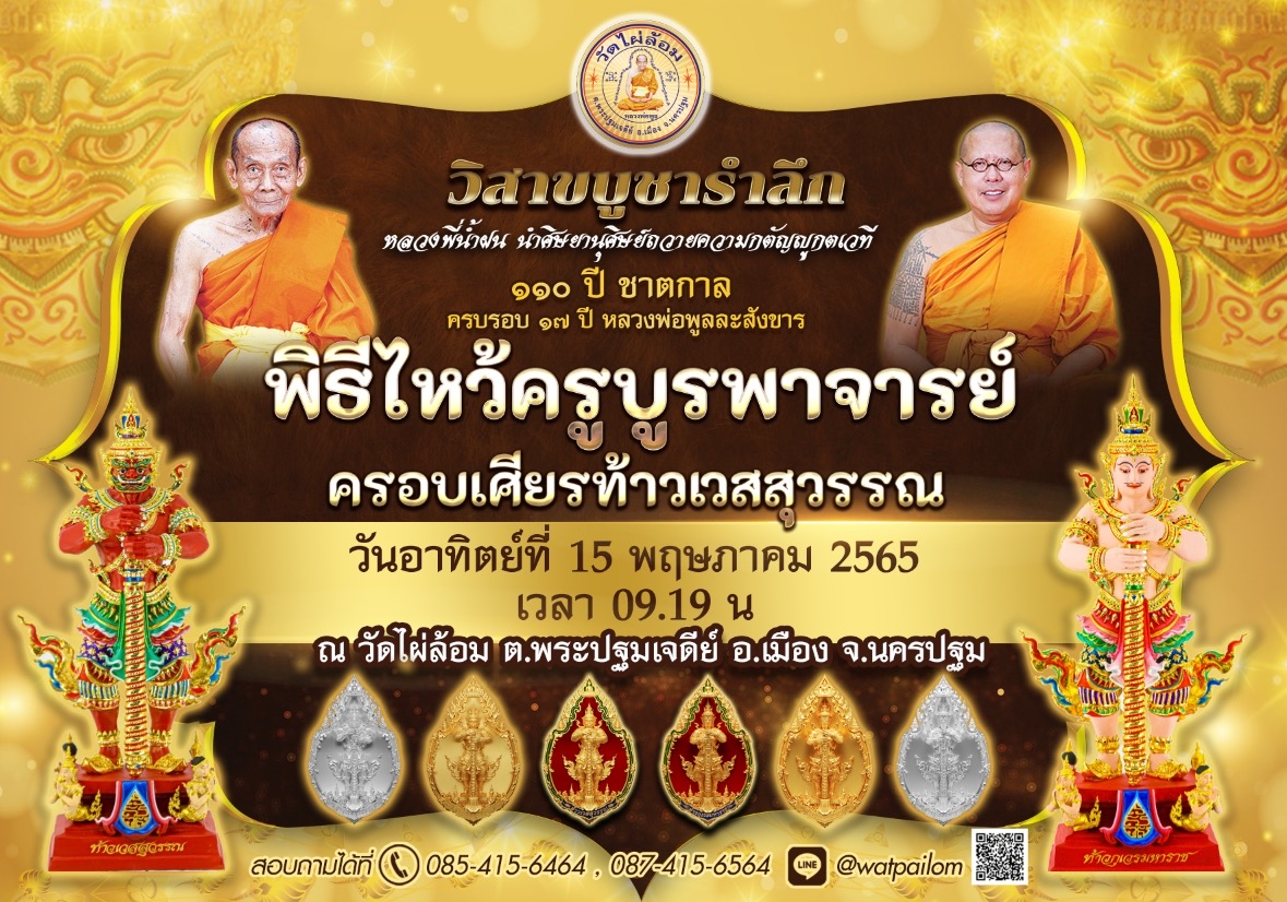 ไหว้ครูบูรพาจารย์ 2565 วิสาขบูชารำลึก 110 ปี ชาตกาลหลวงพ่อพูล ครอบเศียรท้าวเวสสุวรรณ