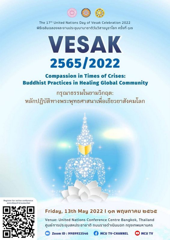 คณะกรรมการจัดงานวิสาขบูชาโลก ครั้งที่ 17 นำโดย ศ.ดร.พระพรหมบัณฑิต (ประยูร ธมฺมจิตฺโต) ประธานกรรมการบริหารสภาสากลวันวิสาขบูชาโลก ประธานบริหารสมาคมมหาวิทยาลัยพระพุทธศาสนานานาชาติ และกรรมการมหาเถรสมาคม(มส.) พร้อมด้วยกรรมการนานาชาติ มีมติร่วมกันในการจัดพิธีเฉลิมฉลองวันวิสาขบูชาโลก และจัดประชุมวิชาการระดับนานาชาติ ภายใต้หัวข้อ “กรุณาธรรมในยามวิกฤต: หลักปฏิบัติทางพระพุทธศาสนาเพื่อเยียวยาสังคมโลก” ในวันศุกร์ที่ 13 พฤษภาคม 2565 ณ ศูนย์ประชุมสหประชาชาติ ราชดำเนิน กรุงเทพมหานคร