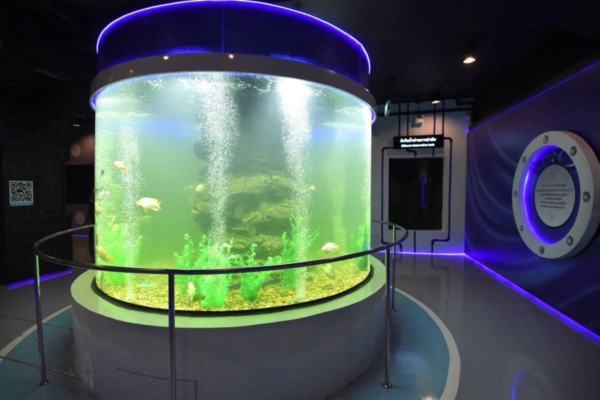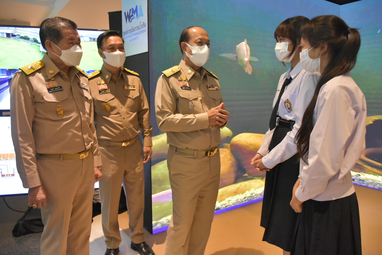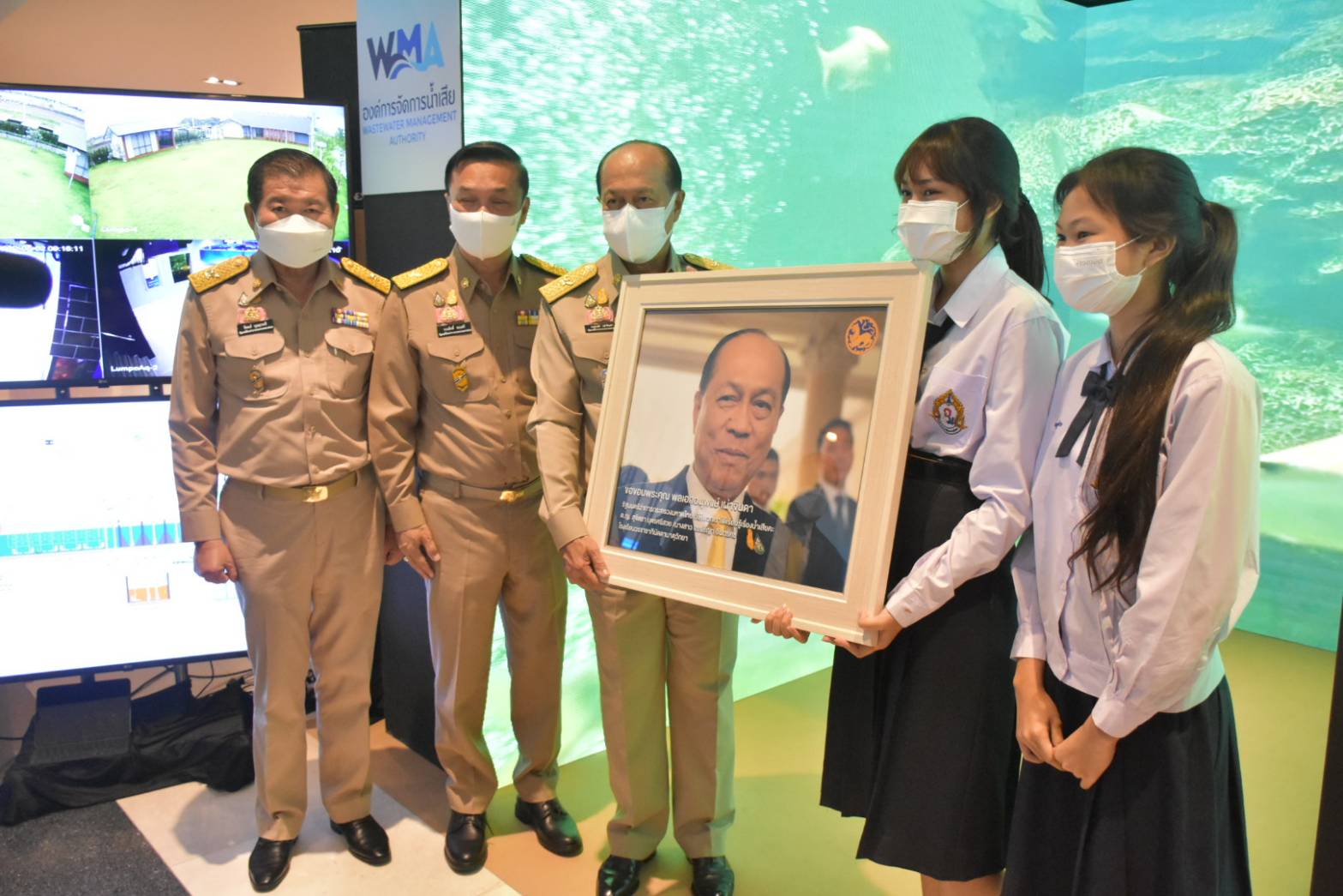 นายนิพนธ์ บุญญามณี รัฐมนตรีช่วยว่าการกระทรวงมหาดไทย นายสุทธิพงษ์ จุลเจริญ ปลัดกระทรวงมหาดไทย นายพรพจน์ เพ็ญพาส ประธานคณะกรรมการองค์การจัดการน้ำเสีย อธิบดีกรมโยธาธิการและผังเมือง พร้อมคณะผู้บริหารกระทรวงมหาดไทย โดยงานนี้นายชีระ วงศบูรณะ ผู้อำนวยการองค์การจัดการน้ำเสีย ได้นำเสนอการนำน้ำเสียที่ผ่านการบำบัดจากการบำบัดน้ำเสีย ของศูนย์บริหารจัดการคุณภาพน้ำ องค์การบริหารส่วนตำบลลำโพ จังหวัดนนทบุรี เพื่อเป็นแหล่งเรียนรู้ ในการเพาะเลี้ยงตัวอย่างพันธุ์ปลาน้ำจืดของประเทศไทย ในรูปแบบอควาเรียม(Aquarium)