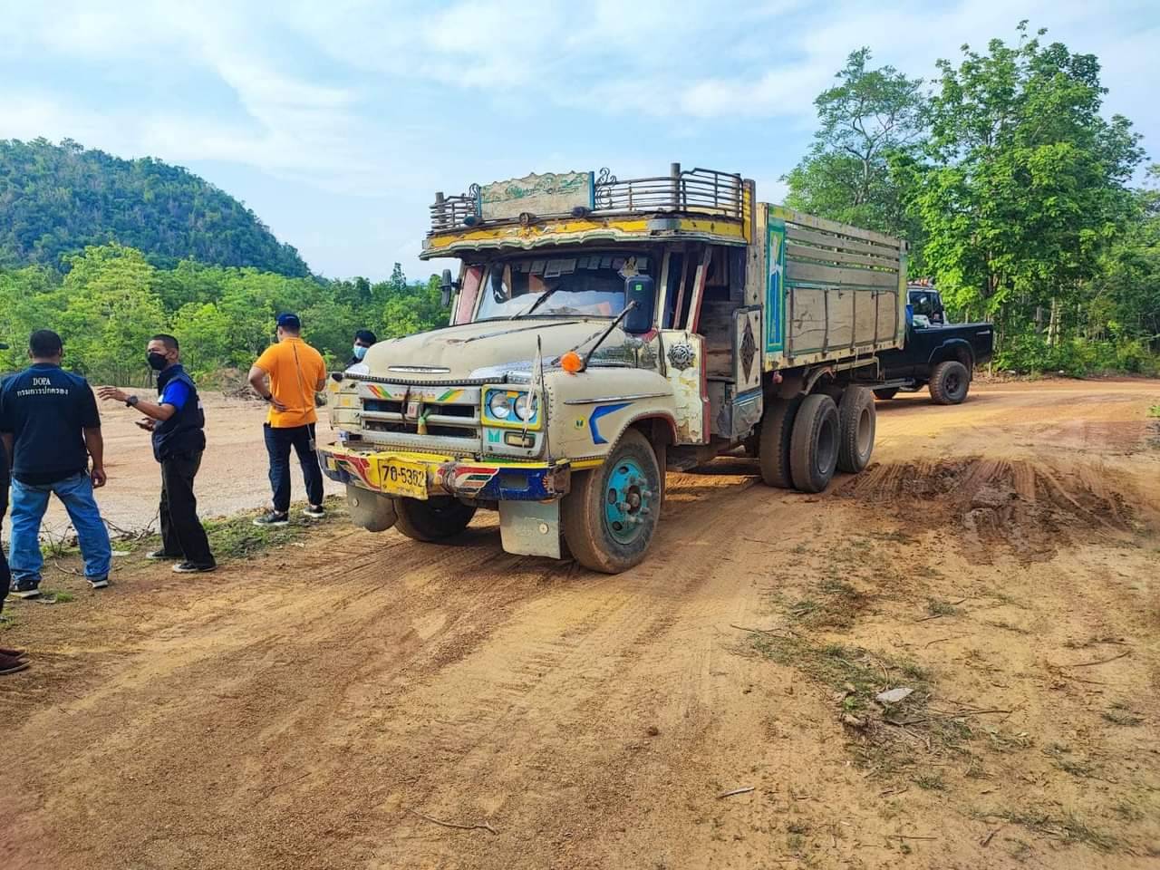 ุกาญจนบุรี เจ้าหน้าที่ป่าไม้ จับนายทุนลักลอบตักลูกรังในเขตป่าสงวนแห่งชาติป่าวังใหญ่-แม่น้ำน้อย ยึดรถที่กระทำผิด 5 คัน
