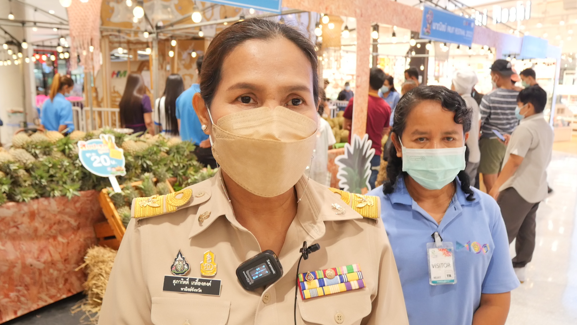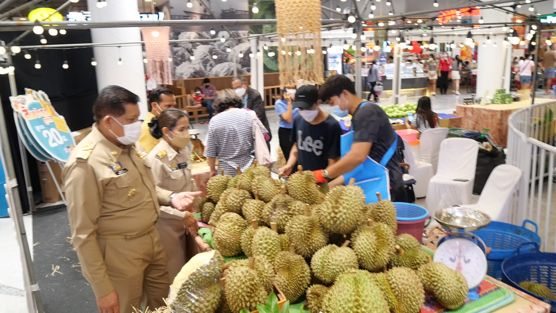 ทางด้านนางสาวสุภากิตติ์ เกลี้ยงสงค์ หัวหน้าสำนักงานพาณิชย์จังหวัดตรัง กล่าวว่า กระทรวงพาณิชย์ โดยรองนายกรัฐมนตรีและรัฐมนตรีว่าการกระทรวงพาณิชย์ ได้ให้เปิดจุดจำหน่ายผลไม้ เพื่อเป็นการช่วยเหลือเกษตรกรชาวสวนผลไม้ ซึ่งมีการคาดการณ์ว่าในปีนี้ผลไม้จะมีจำนวนมาก และจะทำให้ผลไม้มีราคาตกต่ำ ทั้งนี้ผลกระทบที่เห็นชัดคือการแพร่ระบาดของโควิด-19 ทำให้ผลไม้ส่วนใหญ่ที่จะส่งไปประเทศจีน ส่งออกไปยากลำบากมากยิ่งขึ้น เนื่องจากมีการเข้มงวดในการตรวจหาเชื้อโควิด-19 ที่อาจจะปะปนไปกับผลไม้ และการส่งออกไปประเทศจีนที่ค่อนข้างลำบากนั้น ก็ทำให้ผลไม้ในประเทศมีจำนวนมาก จึงมีการช่วยเหลือเกษตรกรชาวสวนผลไม้ โดยให้สำนักงานพาณิชย์จังหวัดทุกจังหวัด เปิดจุดจำหน่ายผลไม้ให้กับประชาชน ทั้งนี้สำนักงานพาณิชย์จังหวัดตรัง ได้เปิดจุดจำหน่ายผลไม้ที่ลานโปรโมชั่น ชั้น1 ห้างโรบินสัน สาขาตรัง จะจำหน่ายตั้งแต่วันที่ 2-8 พฤษภาคม 2565 โดยนำทุเรียนมาจำหน่าย 150 บาทต่อกิโลกรัม สับปะรด ลูกละ 20 บาท มะม่วงน้ำดอกไม้ 25 บาทต่อกิโลกรัม ฝรั่ง 45 บาทต่อกิโลกรัม รวมถึงพริกไทยพันธุ์ปะเหลียน นอกจากจะช่วยเหลือเกษตรกรในจังหวัดต่างๆแล้วยังช่วยเหลือเกษตรกรในจังหวัดตรังอีกด้วย